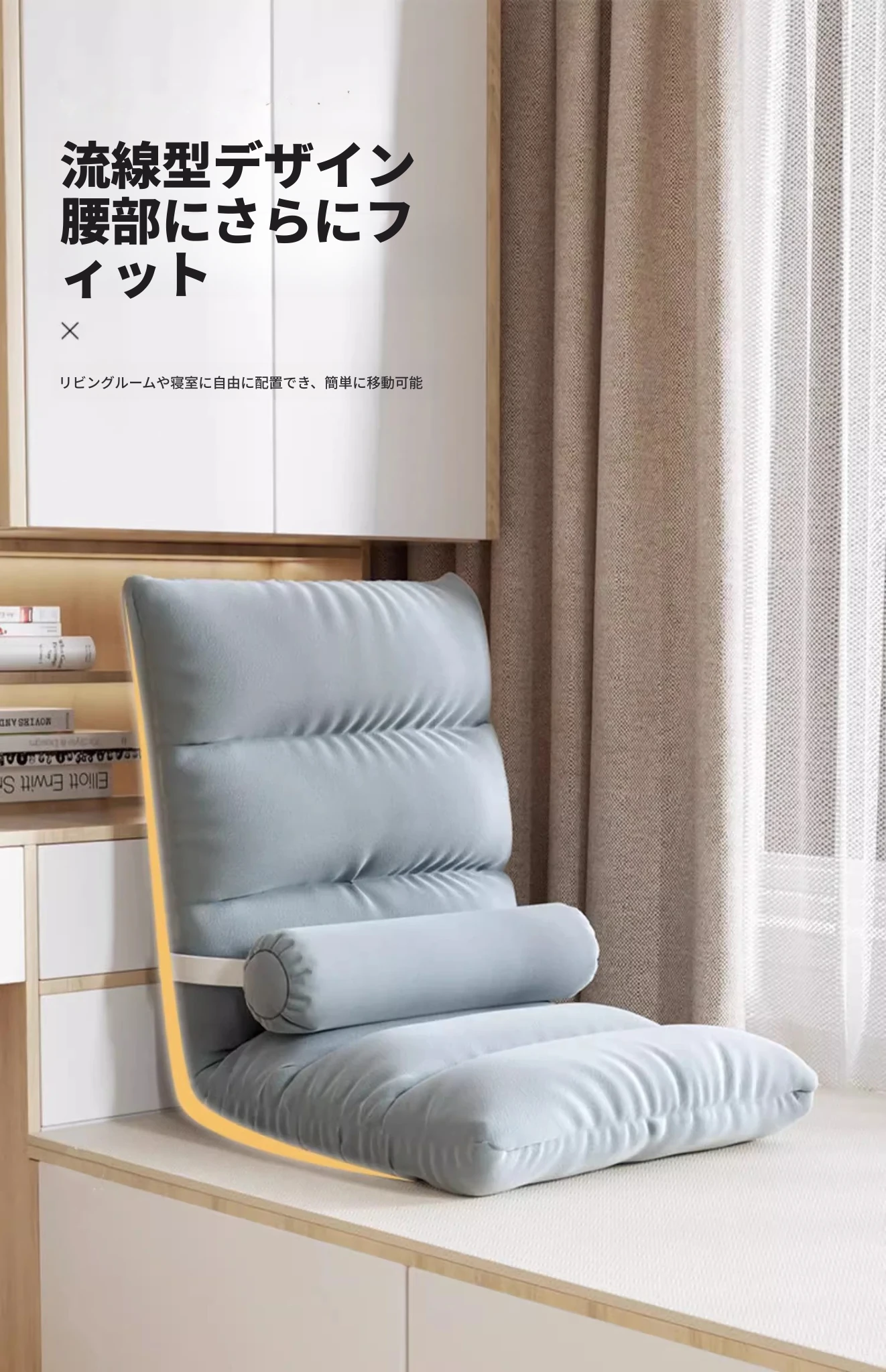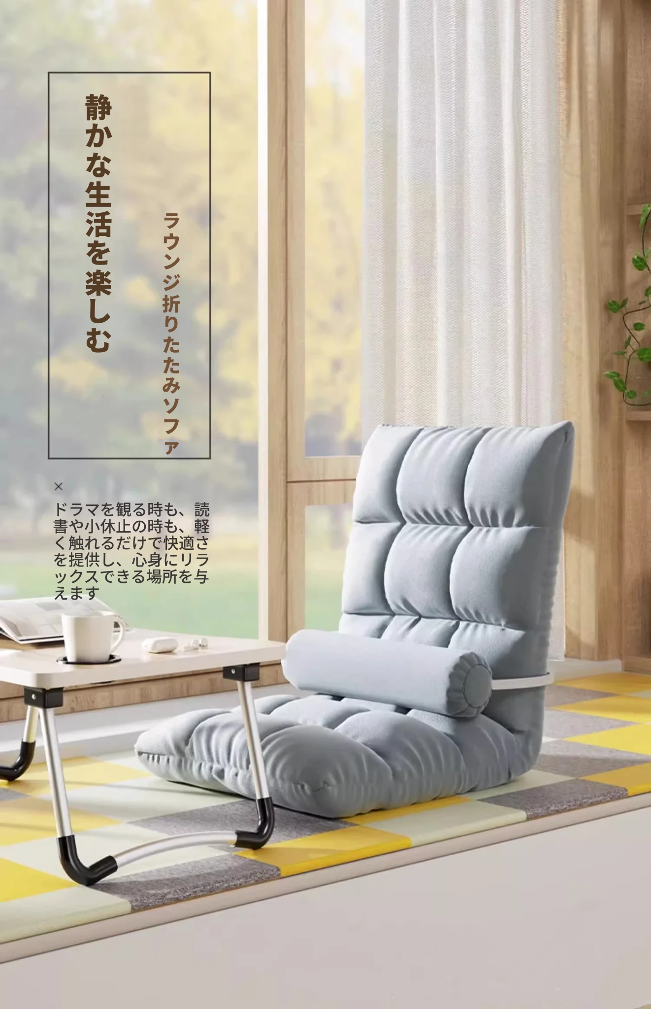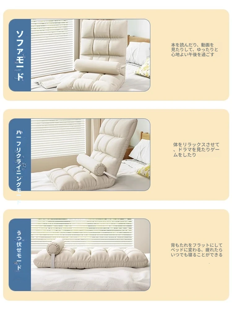 リラックスできる一人用折りたたみソファー!和風座布団付き、学生寮や窓際にぴったりな快適な座椅子。省スペースで使いやすく、おしゃれなデザインであなたの生活空間をアップグレード!