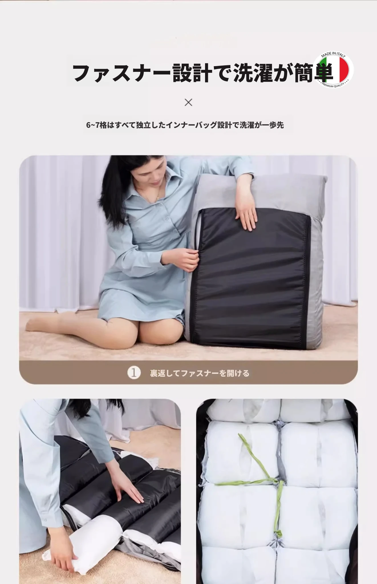 厚手クッション/6格アイボリー【5段階調節+腰枕付き】