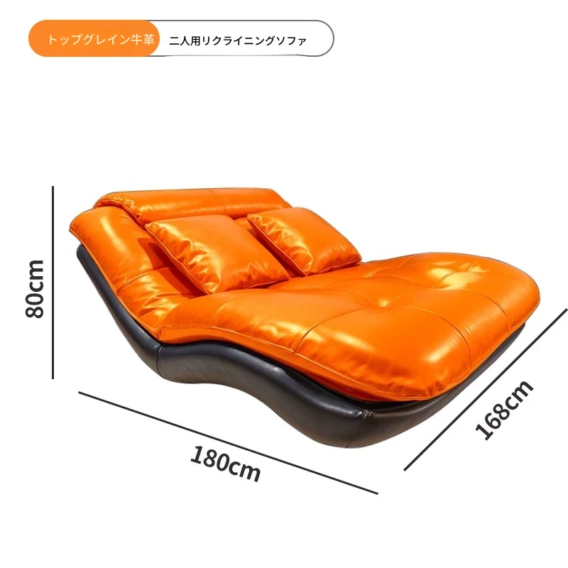 ラグジュアリーオレンジのダブルイタリアンリクライナー S級の軽量ショルダーレザーのイエローカウハイド