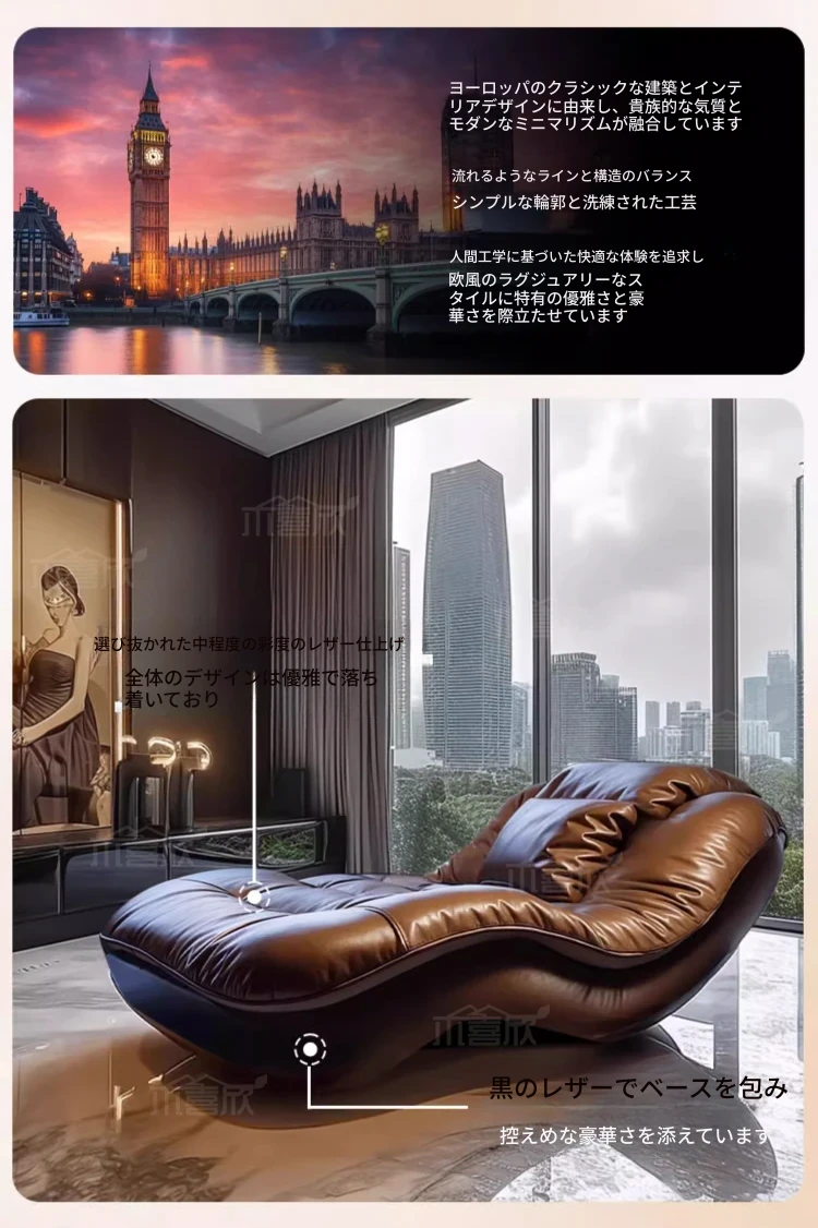 高級感溢れる貴妃椅子 - リラクゼーションに最適なイタリアンデザインの真皮ソファ。主寝室やリビングにぴったりの一人用リクライニングチェア。くつろぎのひとときをお楽しみください!