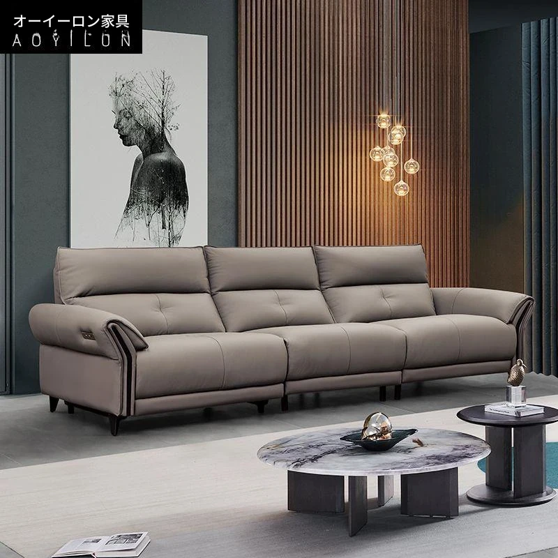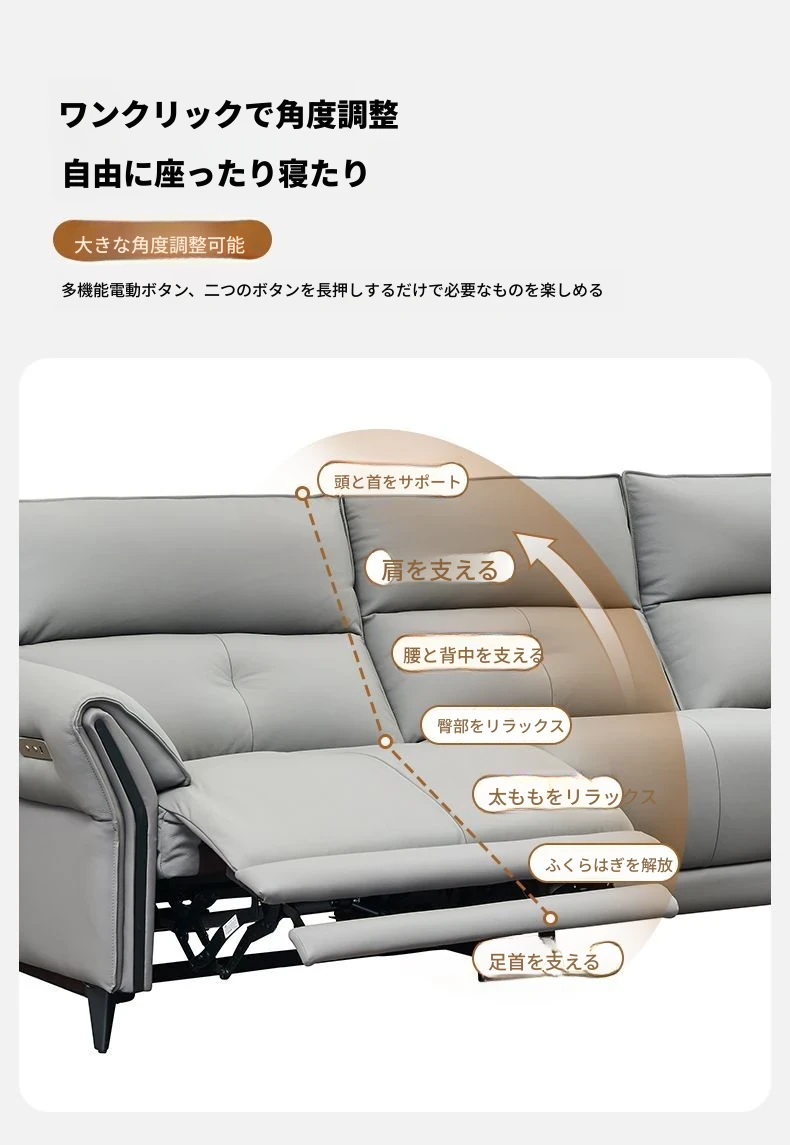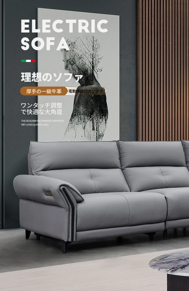 壁に寄りかからない電動本革ソファ、ハイバックデザインのリビングルーム用3人掛け、機能調整可能なイタリアンラグジュアリー。心地よい空間を演出し、贅沢なひとときをお届けします!