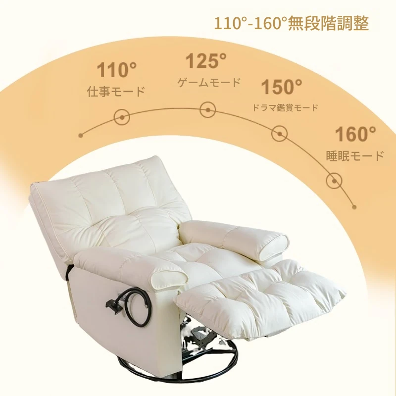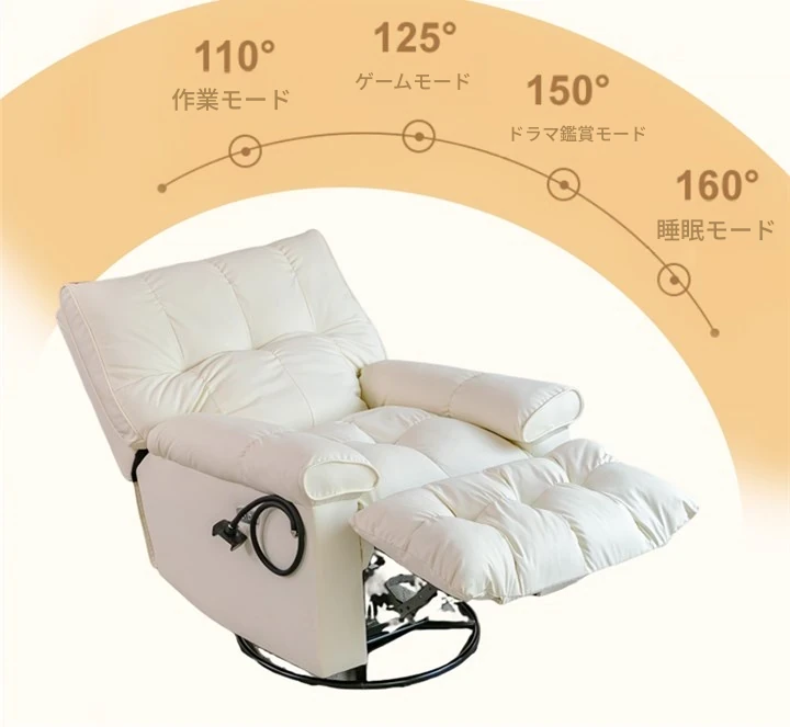 電動タイプ【座る・寝る + 回転 + バッテリー + スマホスタンド】