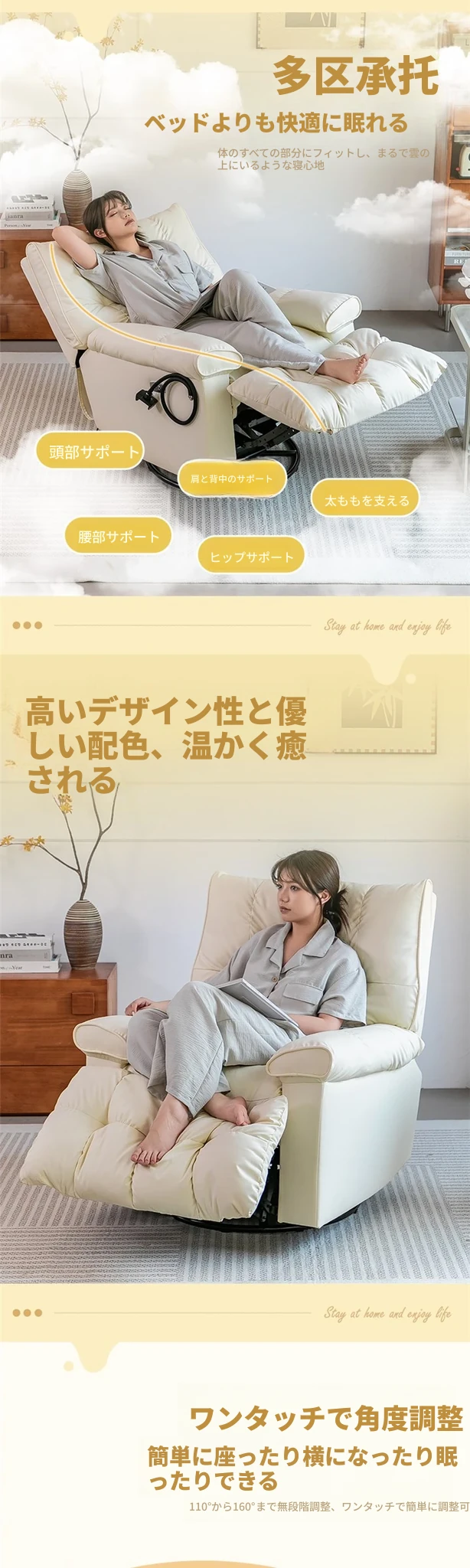 大人気の高級電動リクライニングソファ!雲のような心地よさで、寝ても座っても楽しめる多機能なラグジュアリーリラックスチェア。マッサージ機能付きで、至福のひとときをお届けします。