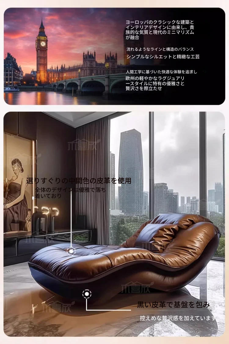 高級感溢れるイタリアンデザインの貴妃椅子ソファ!リクライニング機能付きで、寝転んだりくつろいだりできる真皮製のラグジュアリーな一人掛け椅子。主寝室やリビングにぴったりの贅沢なリラックス空間を演出します。