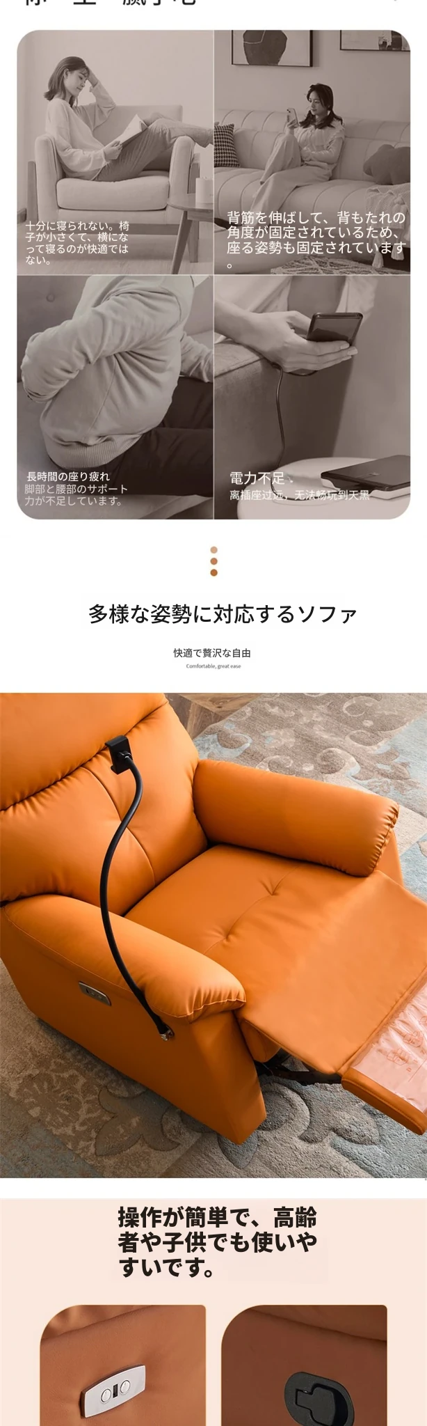 究極のリラックス体験!高級宇宙型シングルソファキャビン - 電動リクライニング機能付き、マッサージ&ネイルケア機能搭載の本革製。あなたのリビングに最適な贅沢な癒しの空間を提供します!