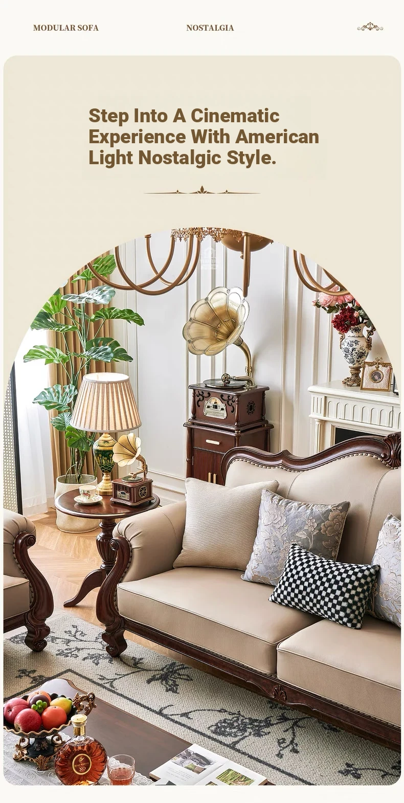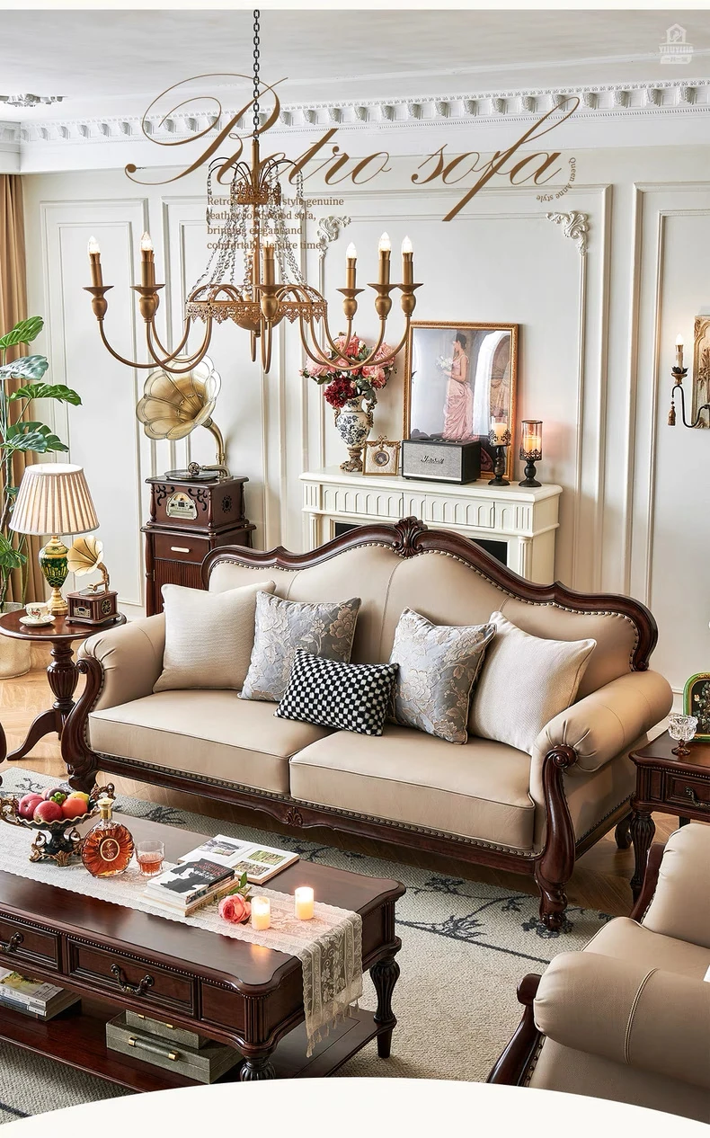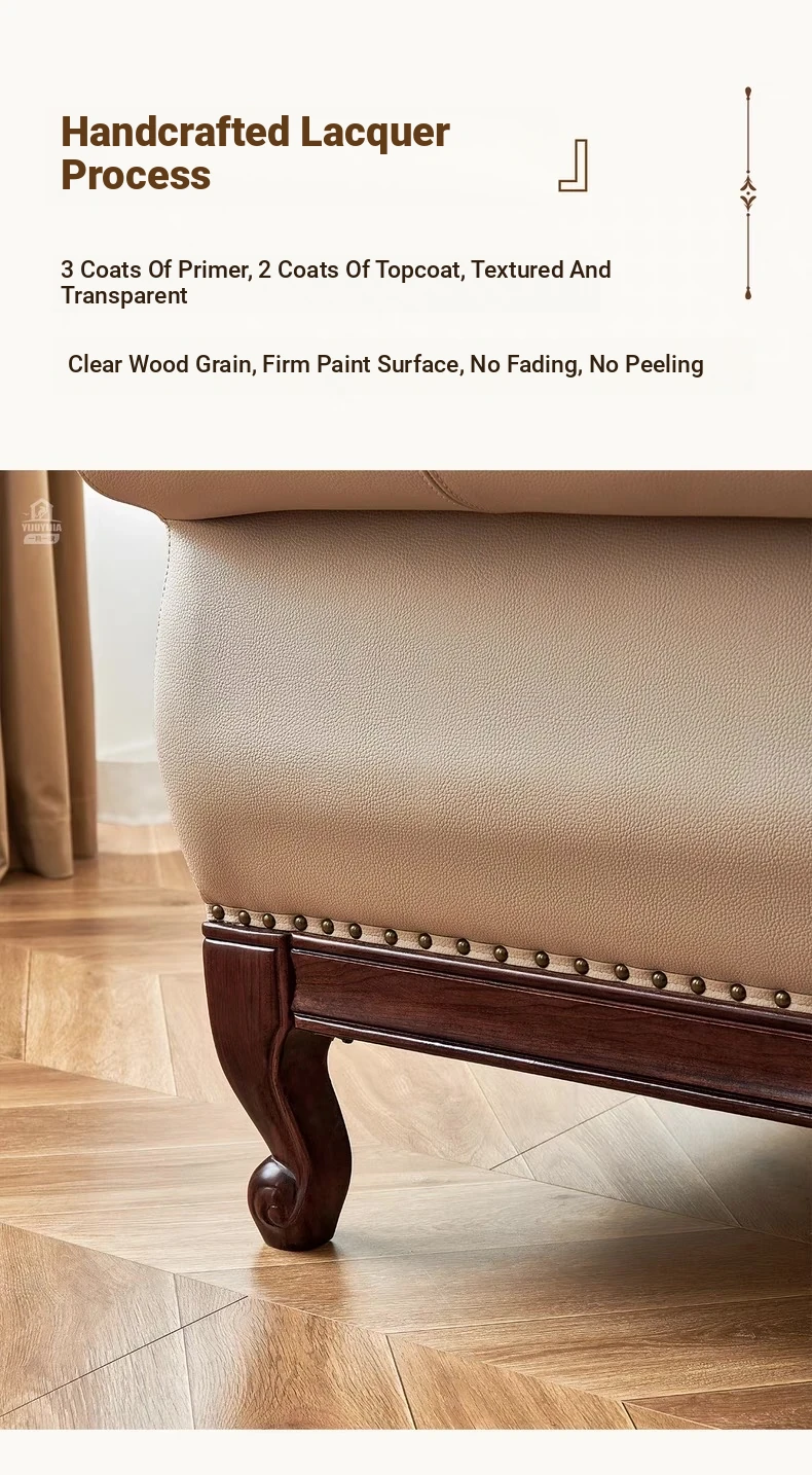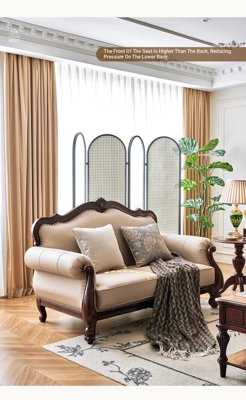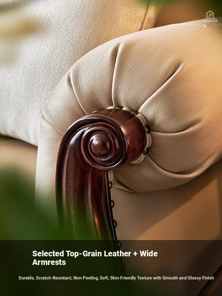 Modern American Genuine Leather Sofa Set - Classic Cherry Solid Wood Living Room Furniture for Large Villas - Versatile 1/2/3 Seater Combinations for Elegant Spaces