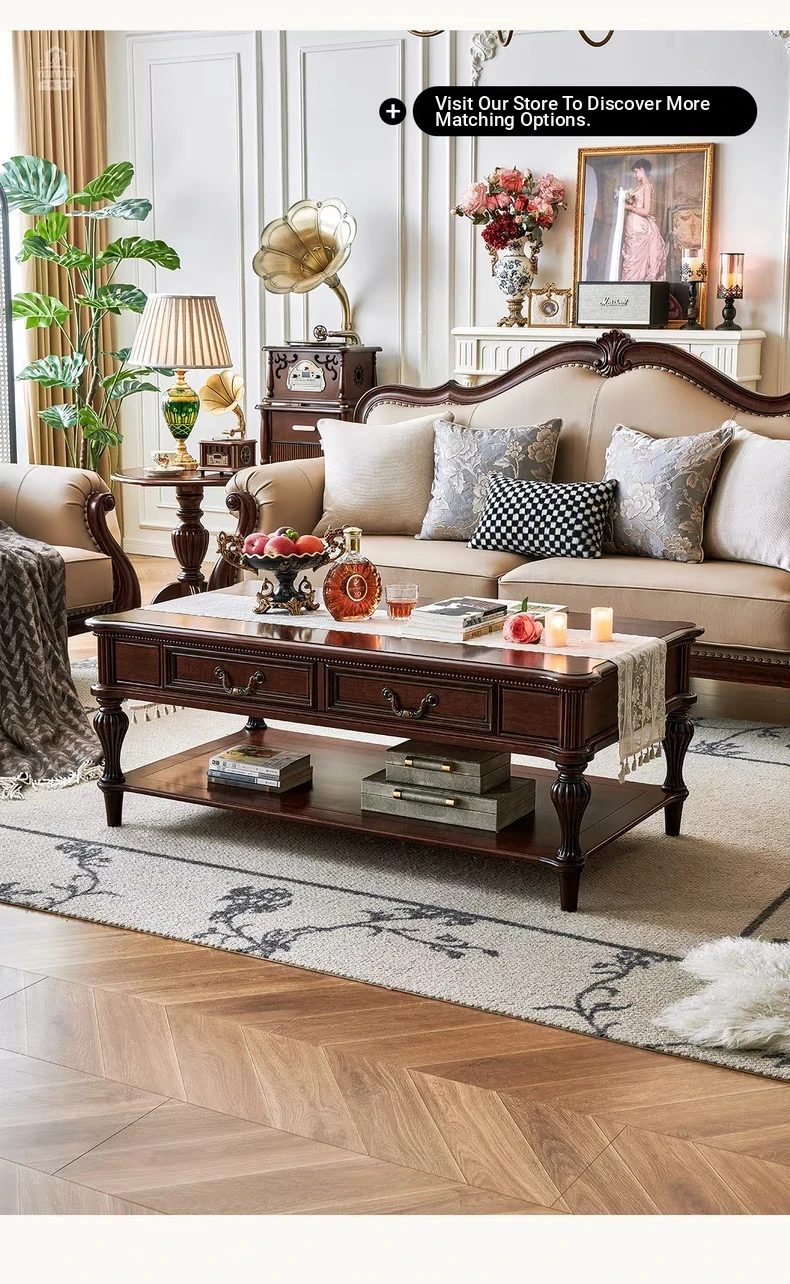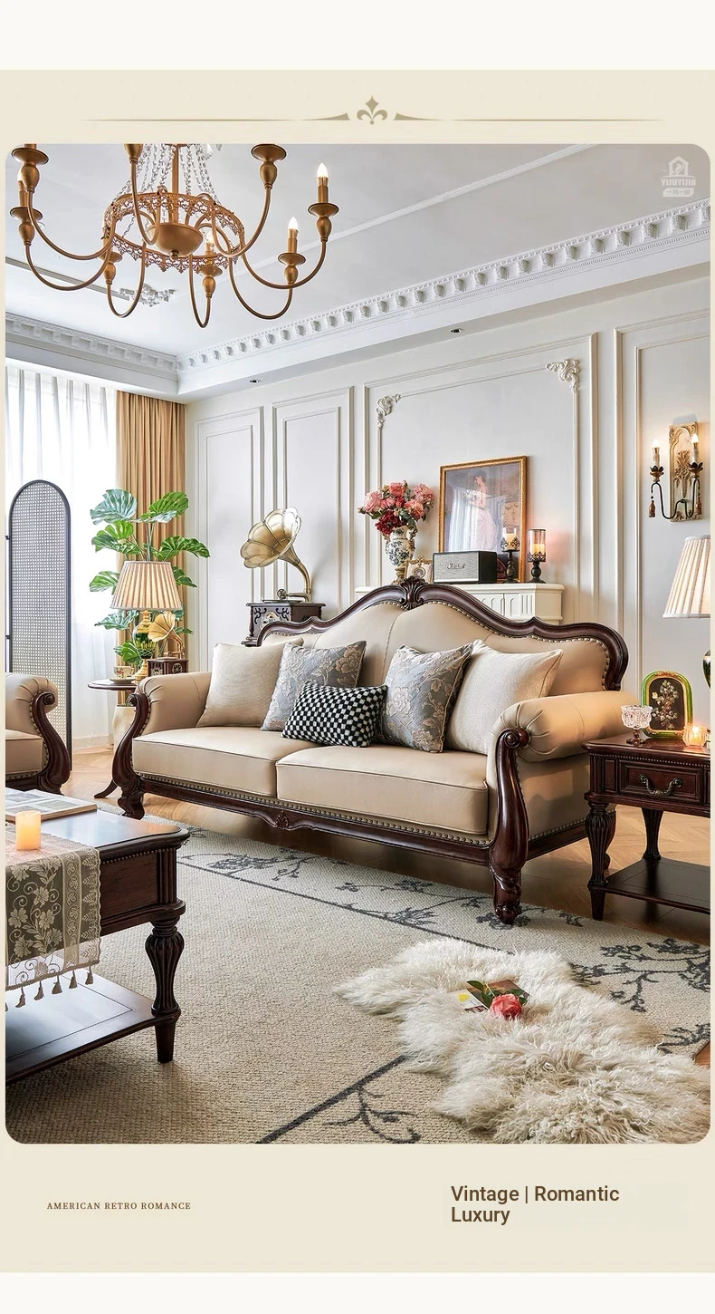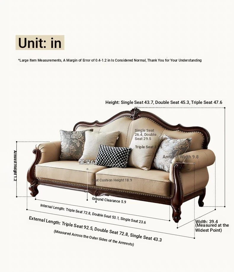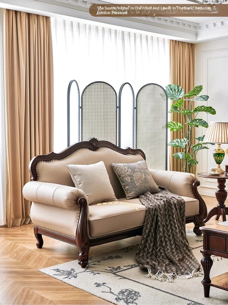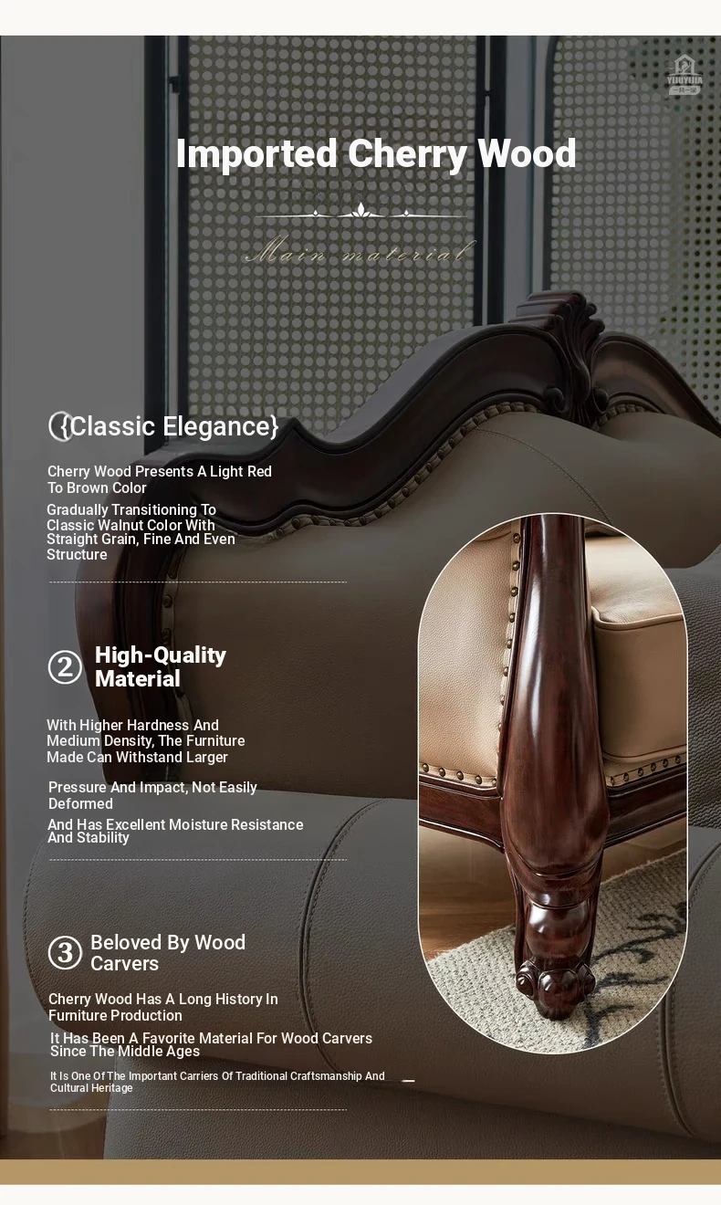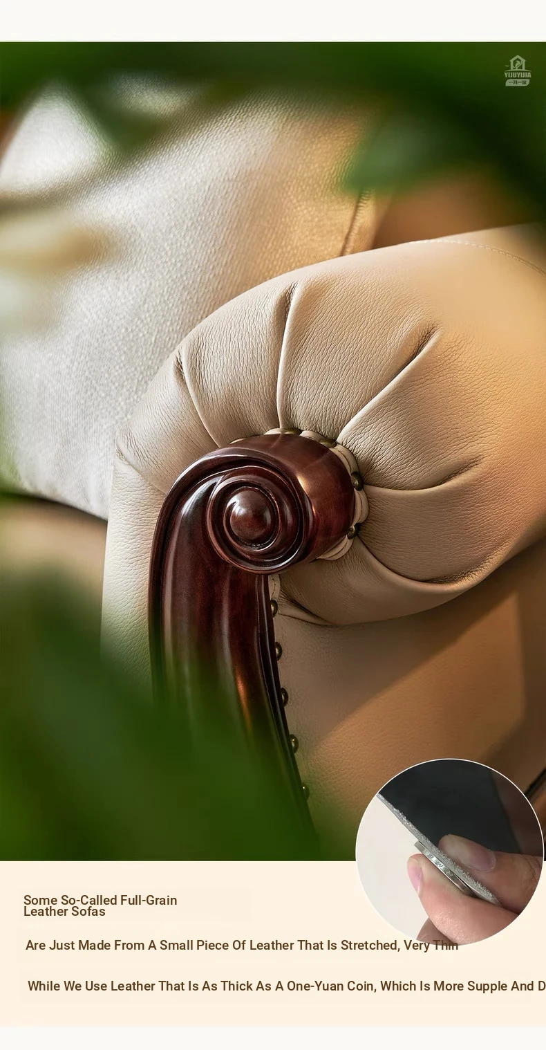 Modern American Genuine Leather Sofa Set - Classic Cherry Solid Wood Living Room Furniture for Large Villas - Versatile 1/2/3 Seater Combinations for Elegant Spaces