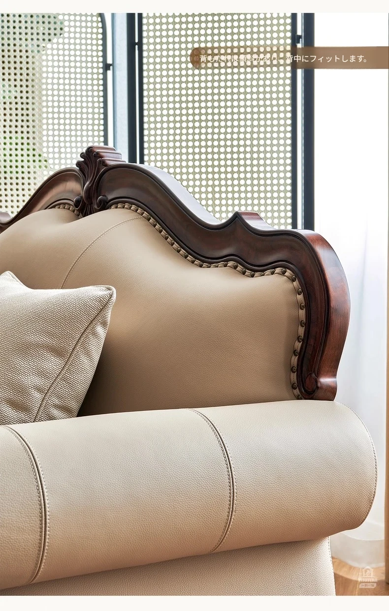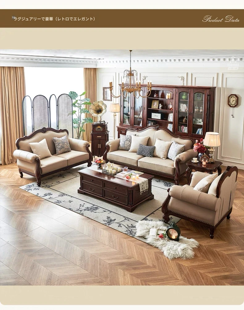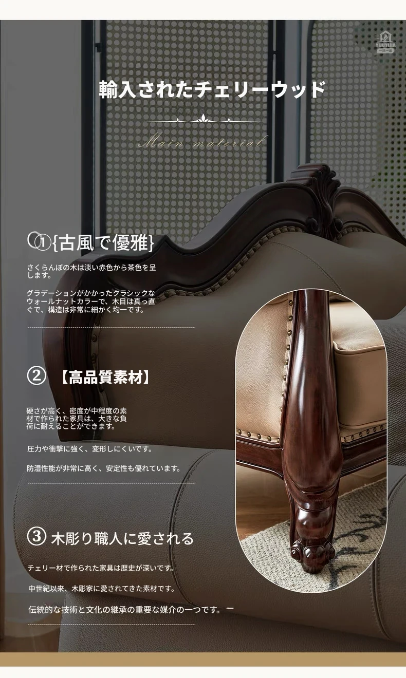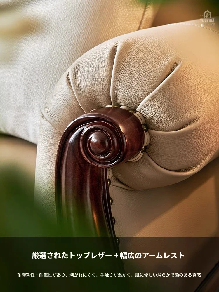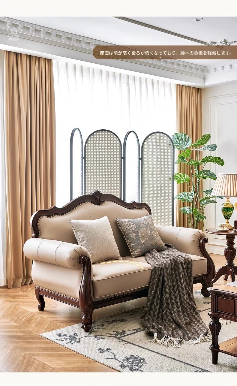アメリカンスタイル本革ソファ|モダンなリビングに最適!シングル・ダブル・トリプルの組み合わせが可能なチェリーウッド製、ヴィラ向けの広々としたデザイン。クラシックな123コンビネーションで、洗練された空間を演出!