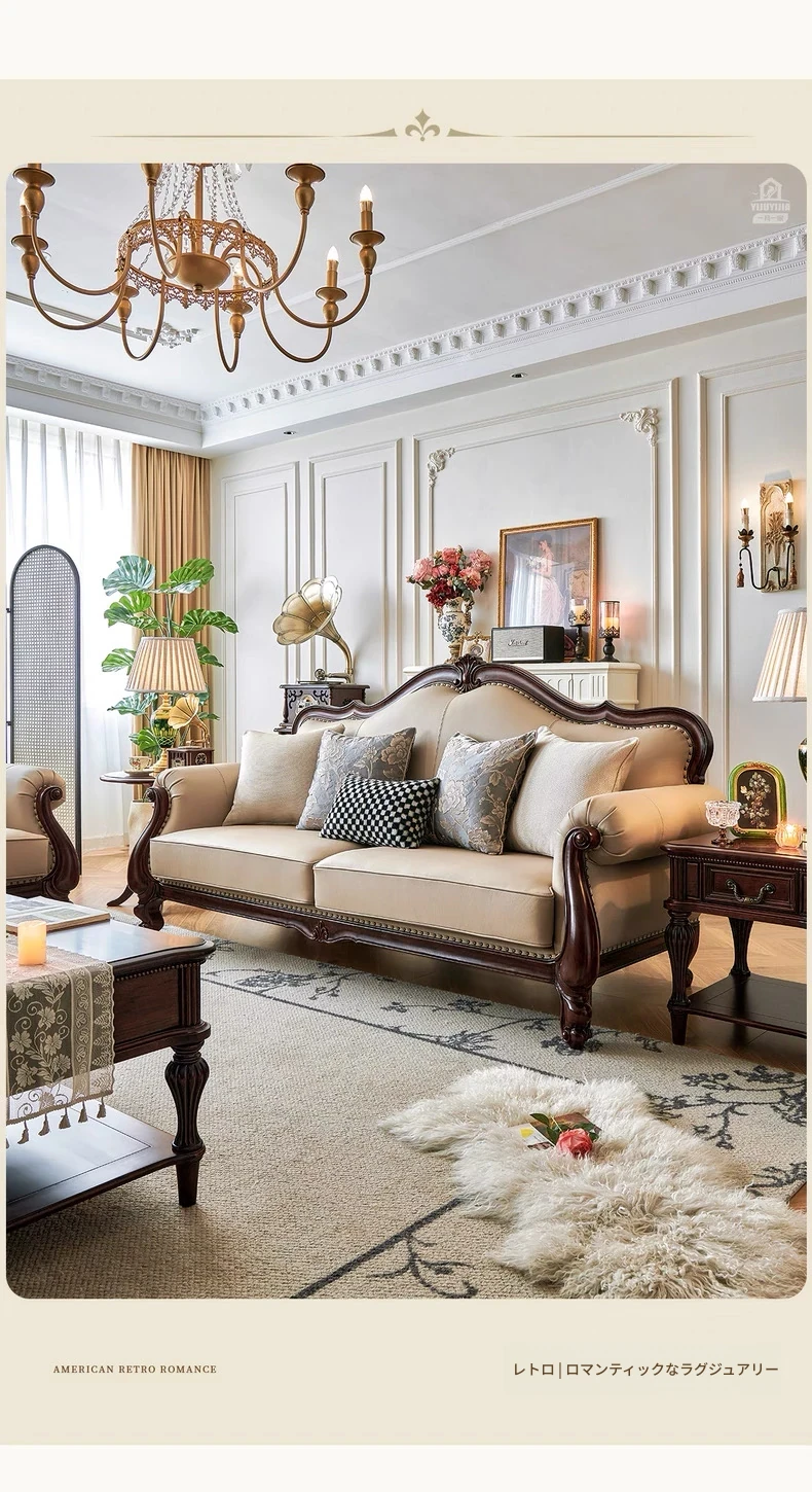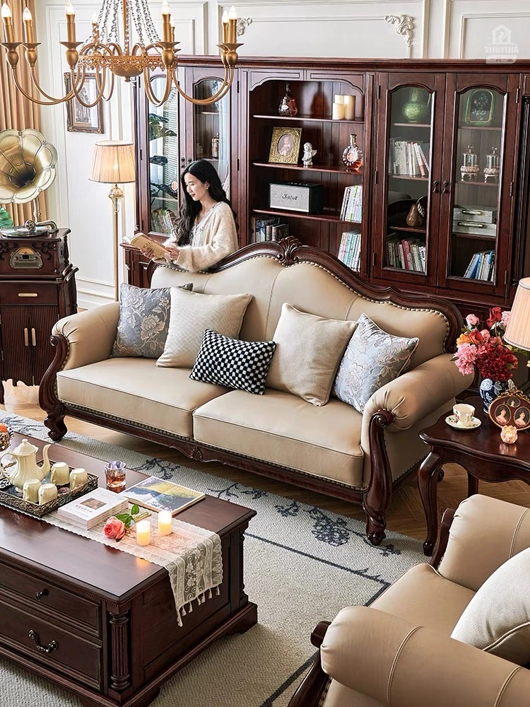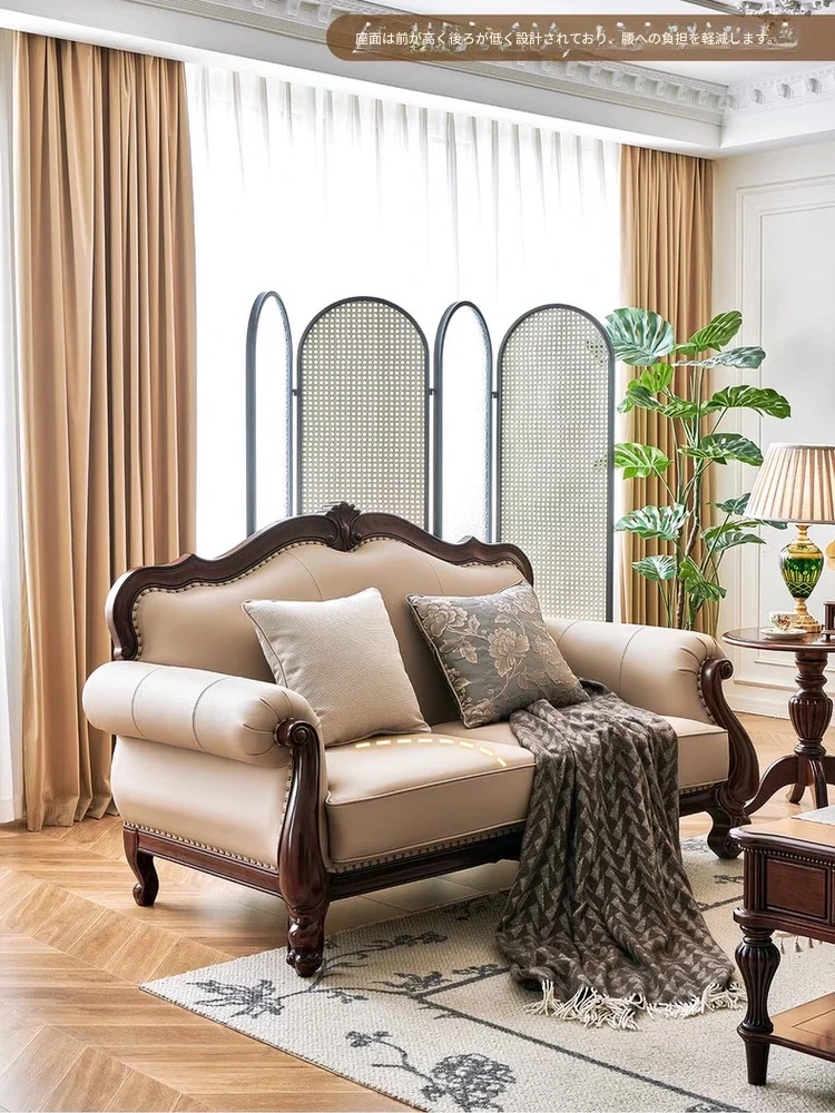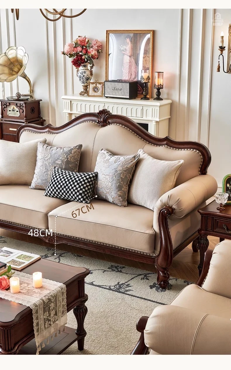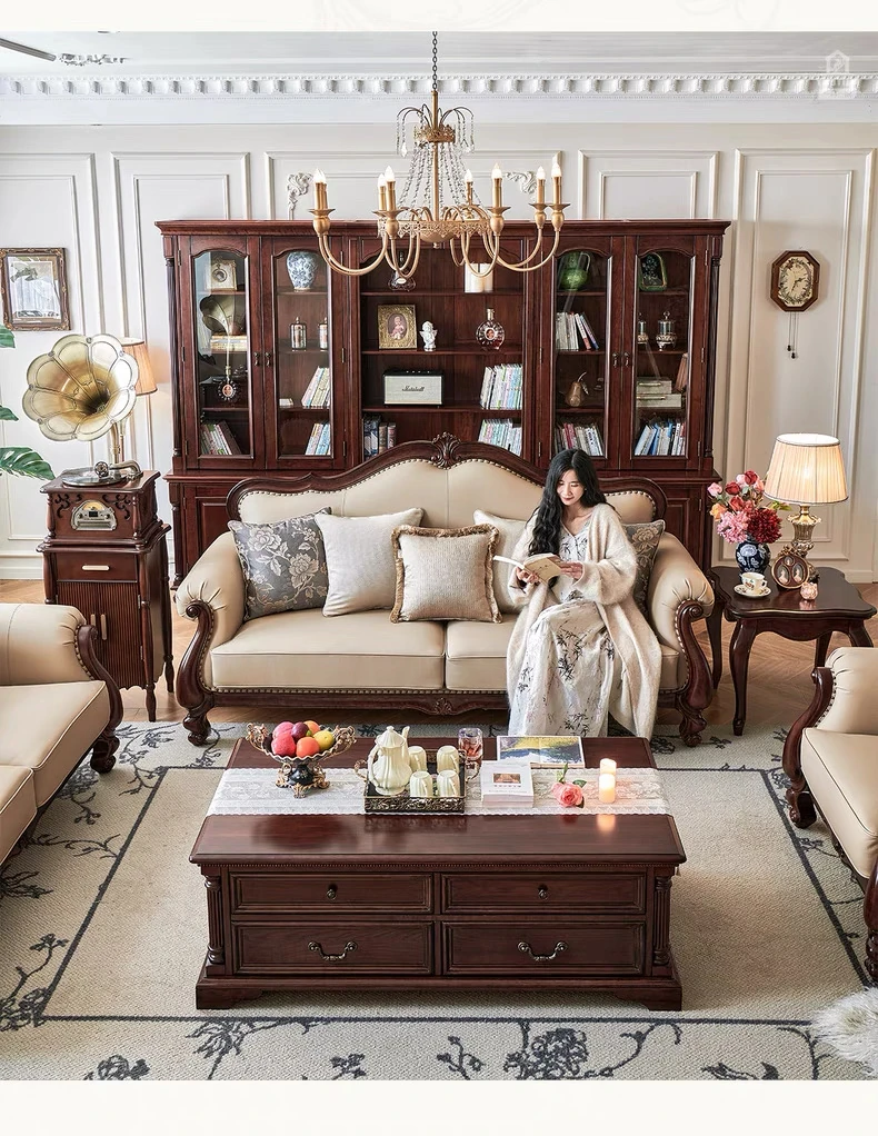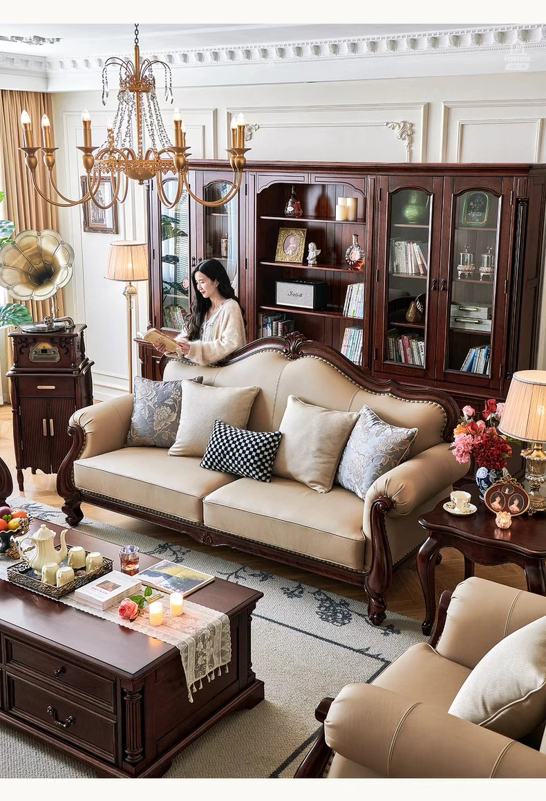 アメリカンスタイル本革ソファ|モダンなリビングに最適!シングル・ダブル・トリプルの組み合わせが可能なチェリーウッド製、ヴィラ向けの広々としたデザイン。クラシックな123コンビネーションで、洗練された空間を演出!