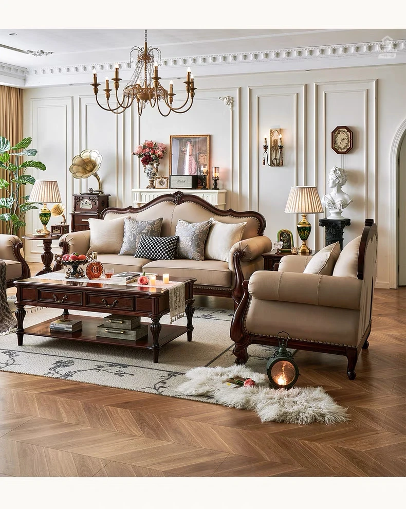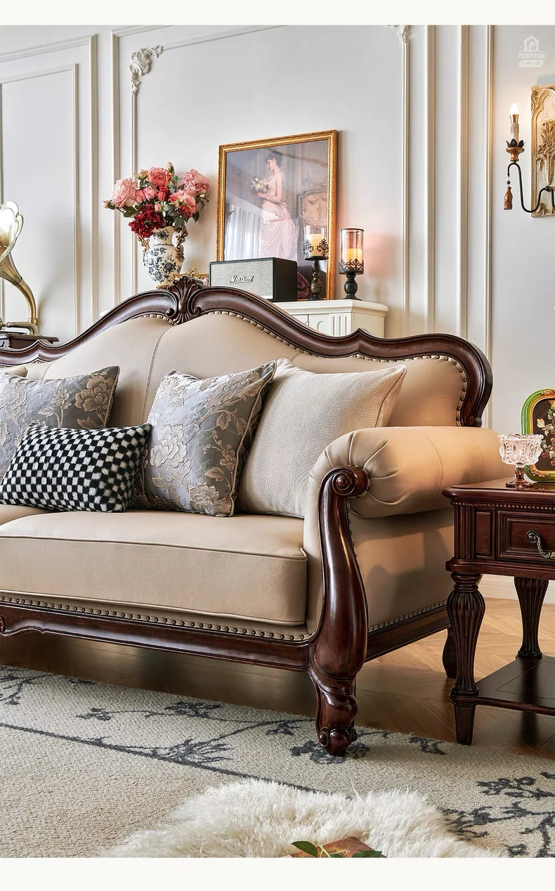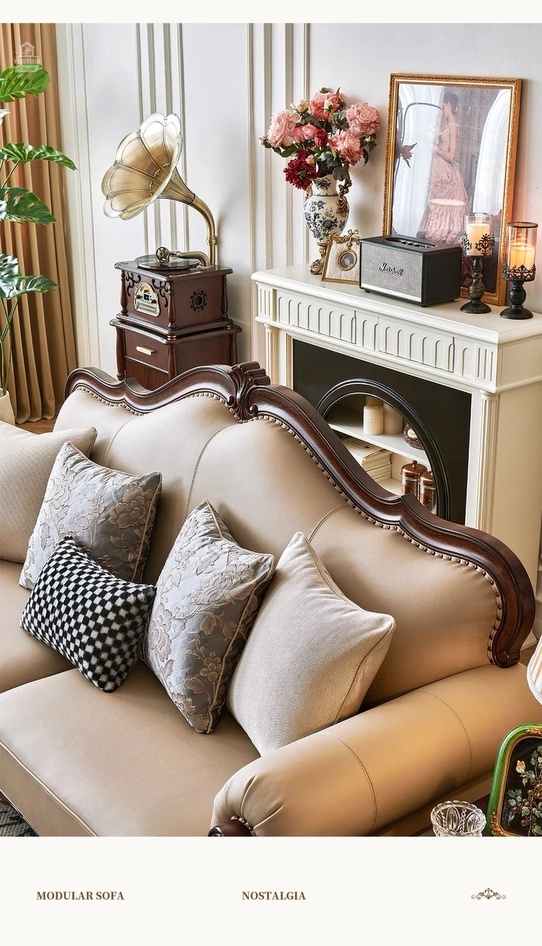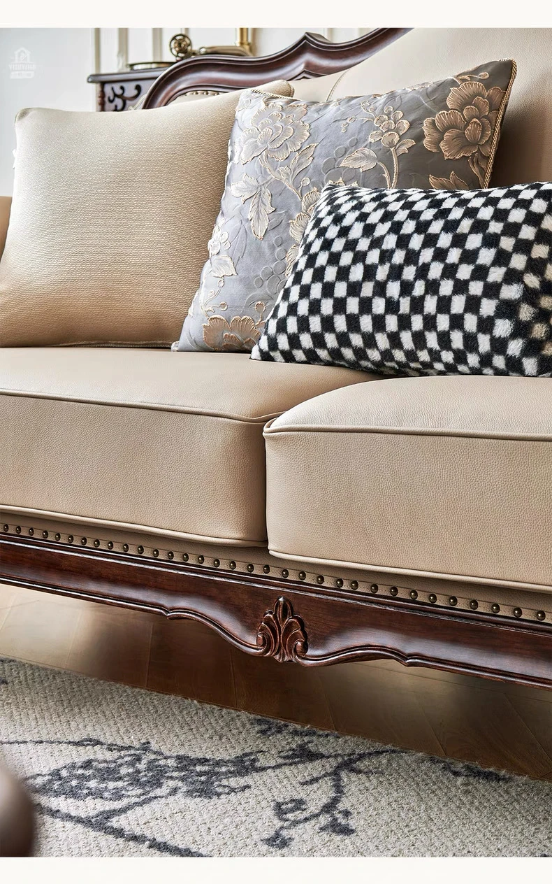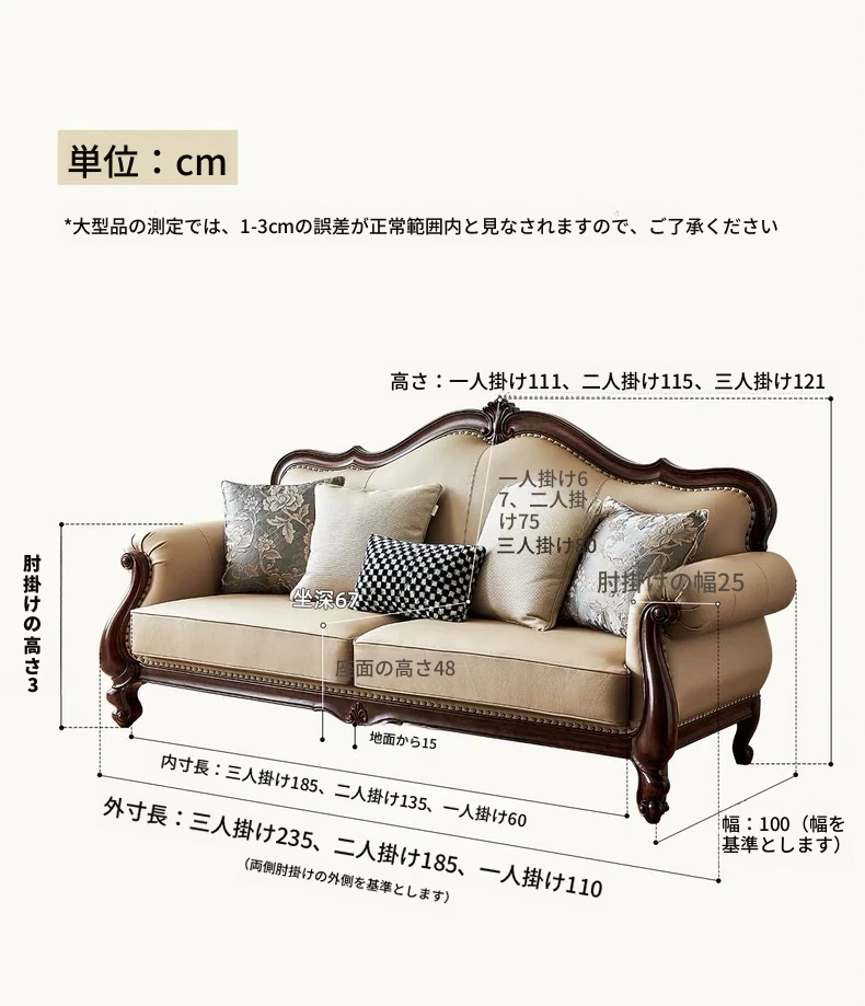 アメリカンスタイル本革ソファ|モダンなリビングに最適!シングル・ダブル・トリプルの組み合わせが可能なチェリーウッド製、ヴィラ向けの広々としたデザイン。クラシックな123コンビネーションで、洗練された空間を演出!