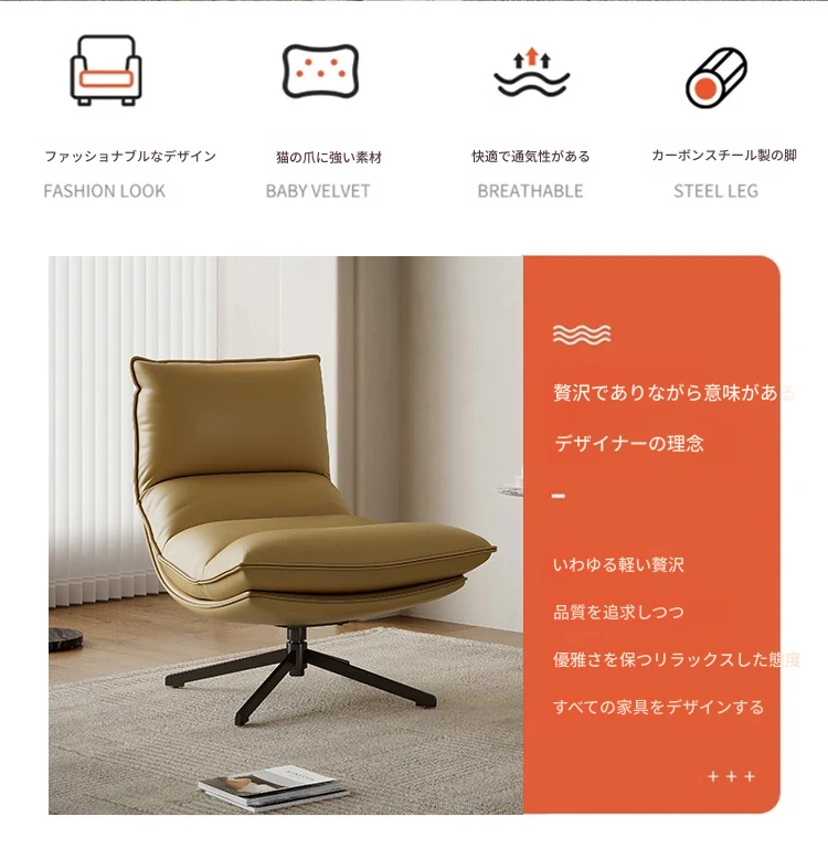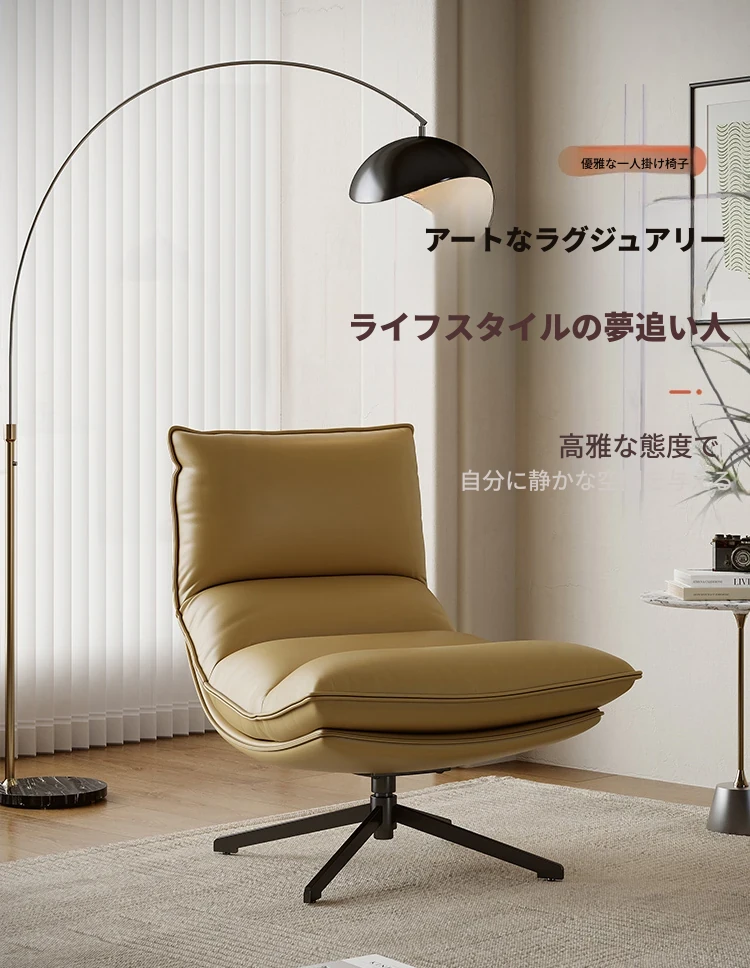 イタリアンシンプルデザインの現代的な軽奢華回転チェア - バルコニーやリビングにぴったりのリラックスソファ。デザイナーズスタイルで、くつろぎのひとときを提供します!