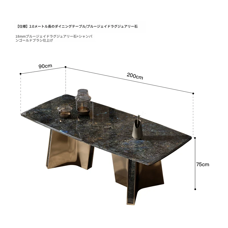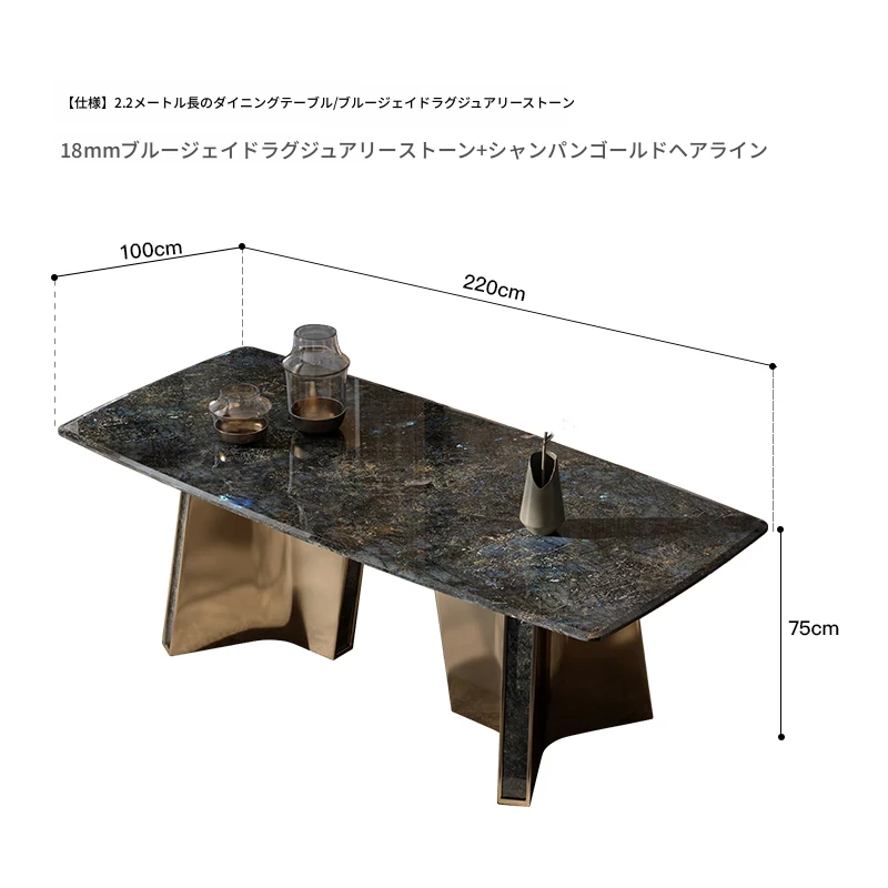 2.2メートル長のダイニングテーブル/ブルージェイド天然ラグジュアリー石