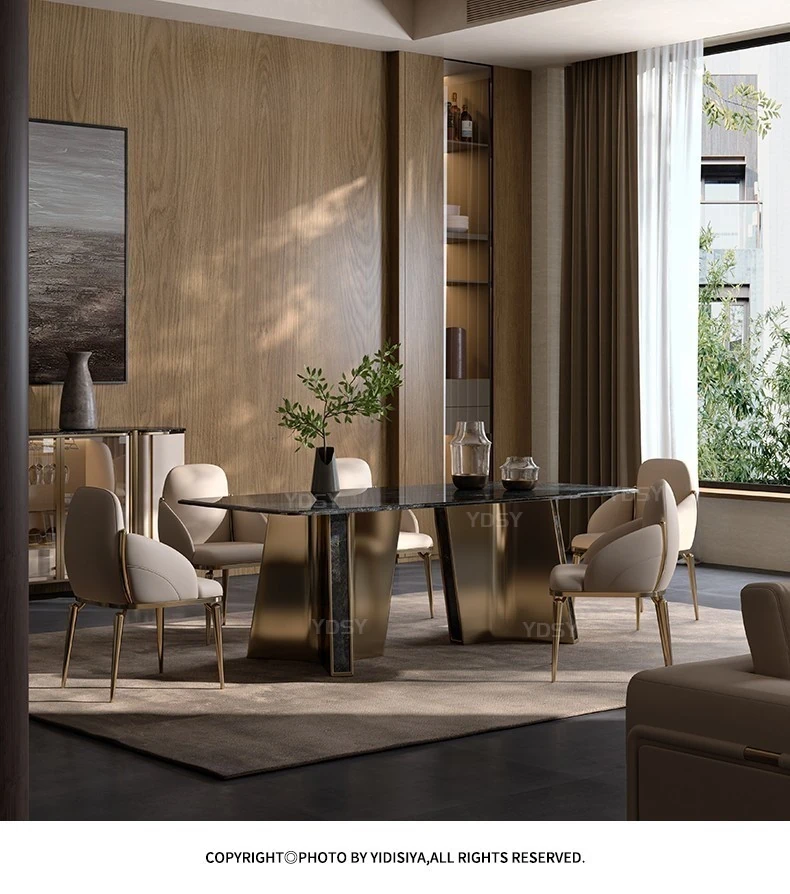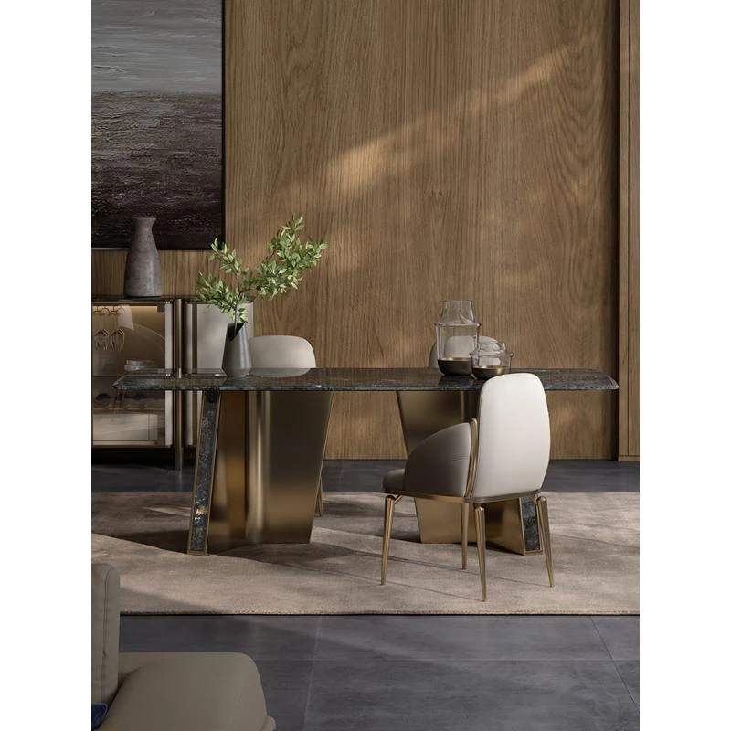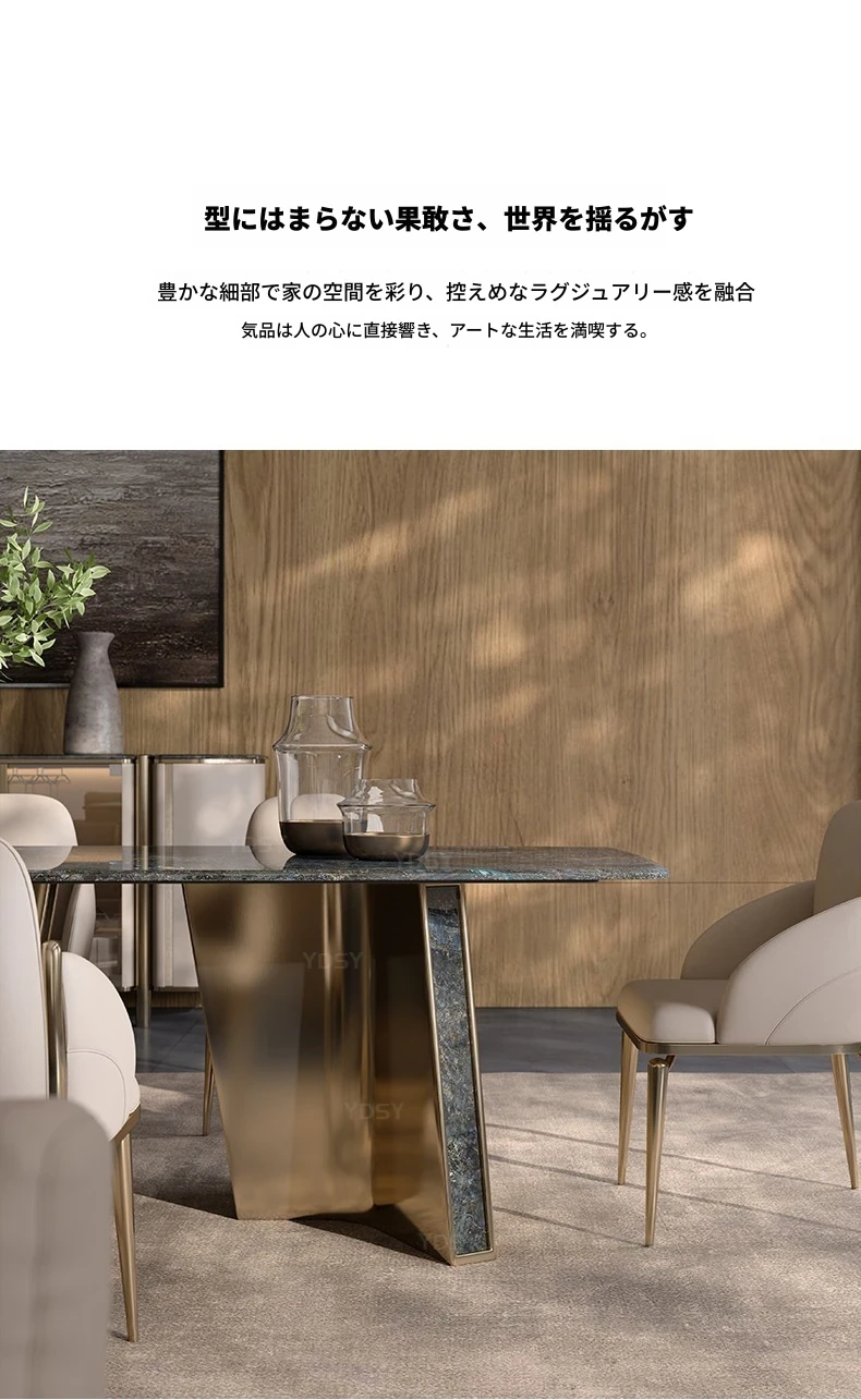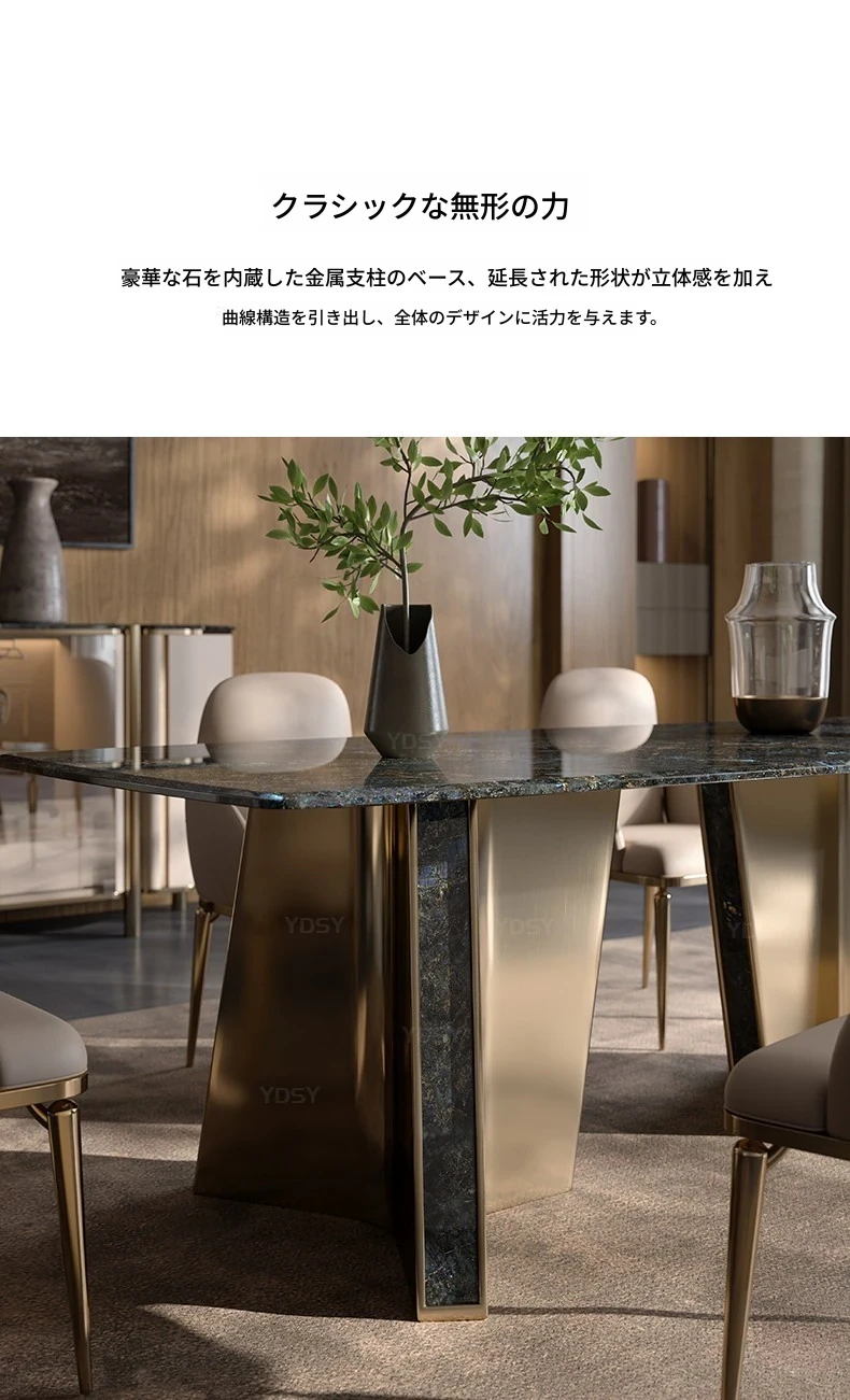 天然大理石のモダンラグジュアリーなダイニングテーブル - 高級感あふれる長方形デザイン、ホテルや商業施設にも最適!スタイリッシュな食卓で特別なひとときを演出します。