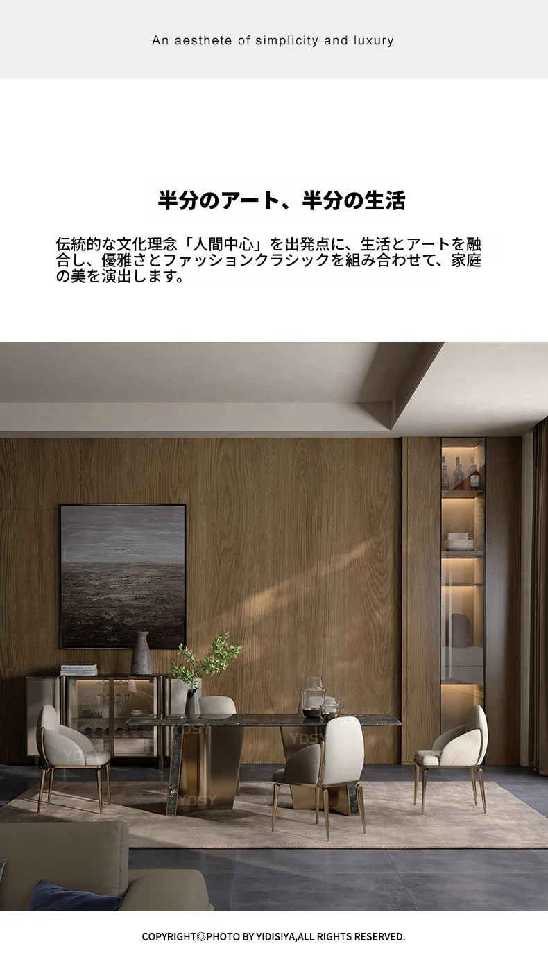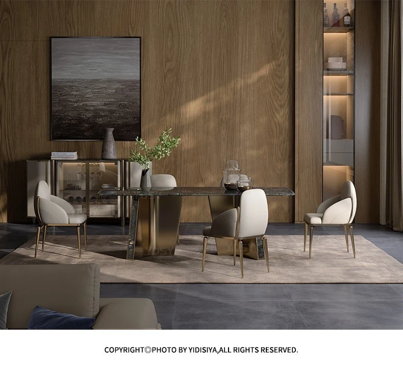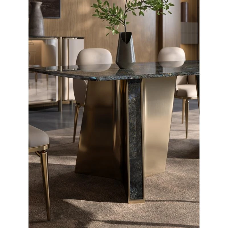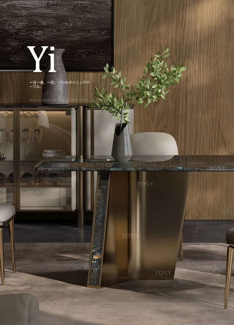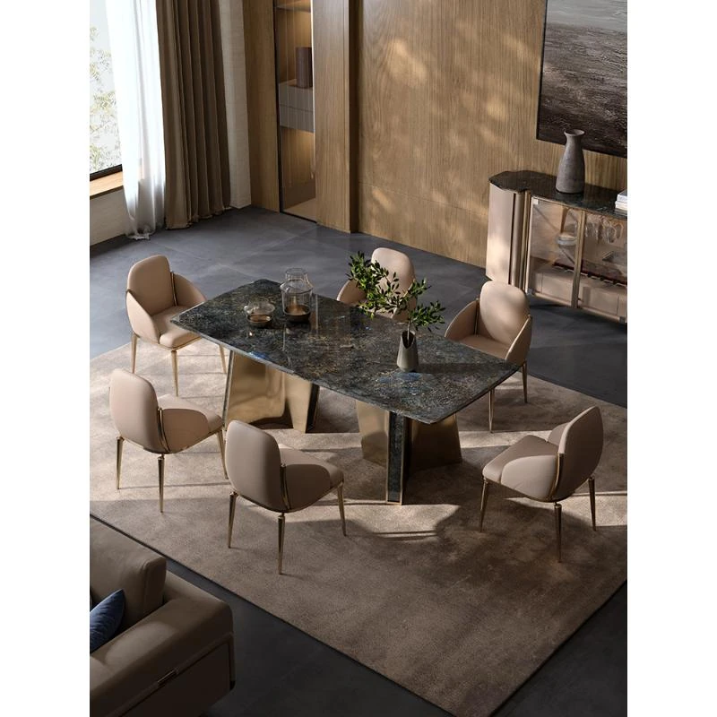 天然大理石のモダンラグジュアリーなダイニングテーブル - 高級感あふれる長方形デザイン、ホテルや商業施設にも最適!スタイリッシュな食卓で特別なひとときを演出します。