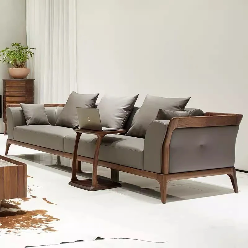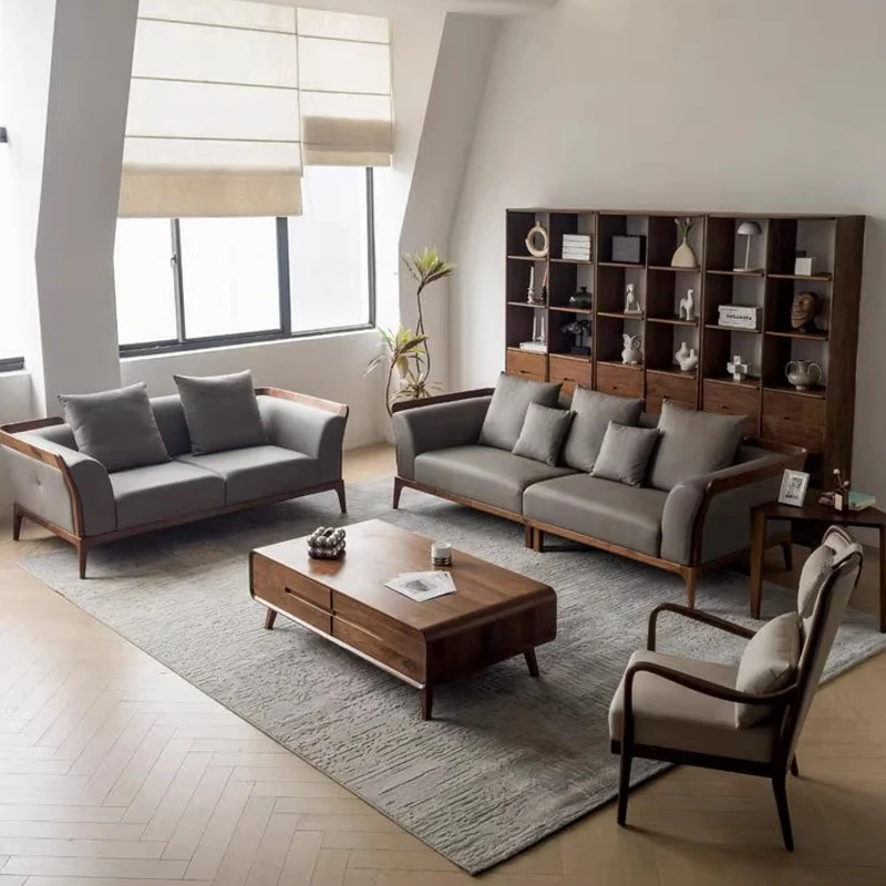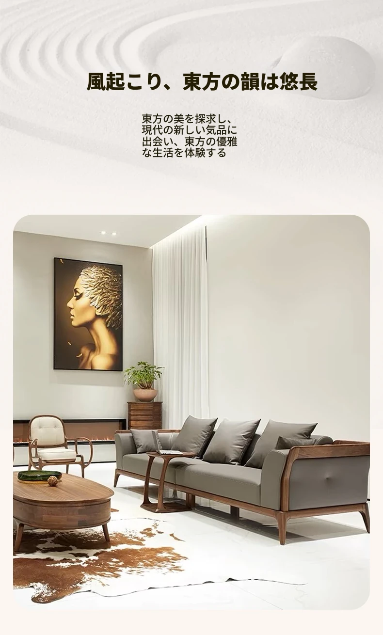 新中式のブラックウォールナットソファ - シンプルでモダンなデザイン、軽やかなラグジュアリー感。小さな部屋にもぴったりの一人掛け・二人掛けソファ。実木製で耐久性抜群、居心地の良いリビングを演出します!
