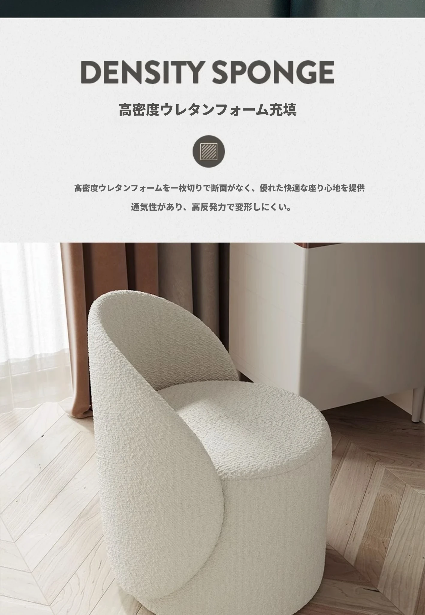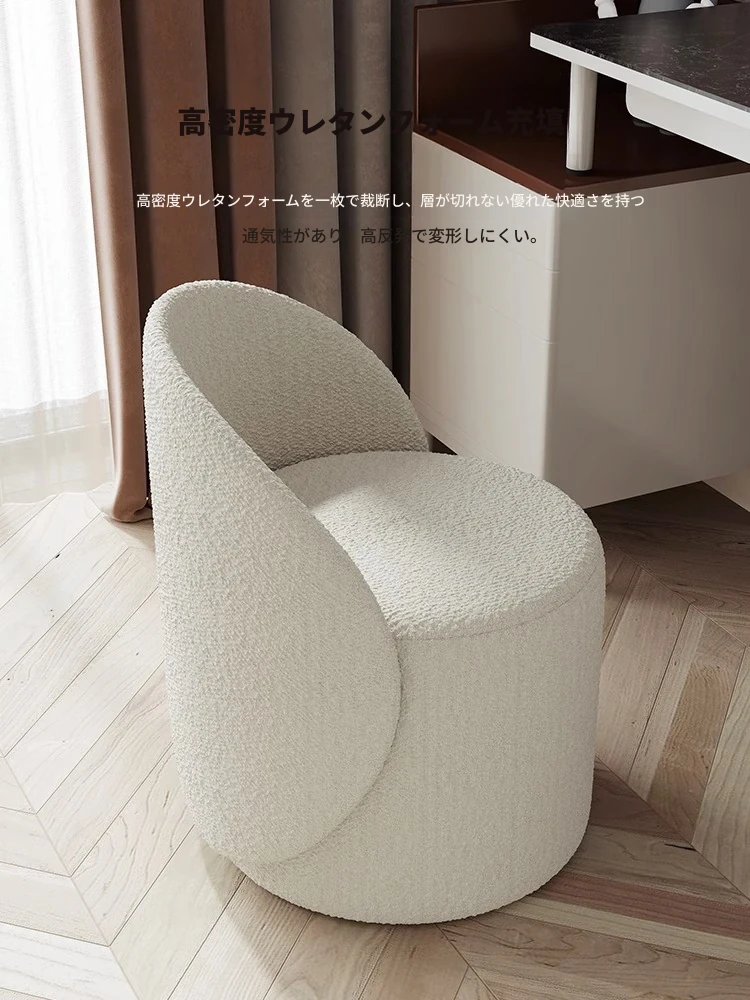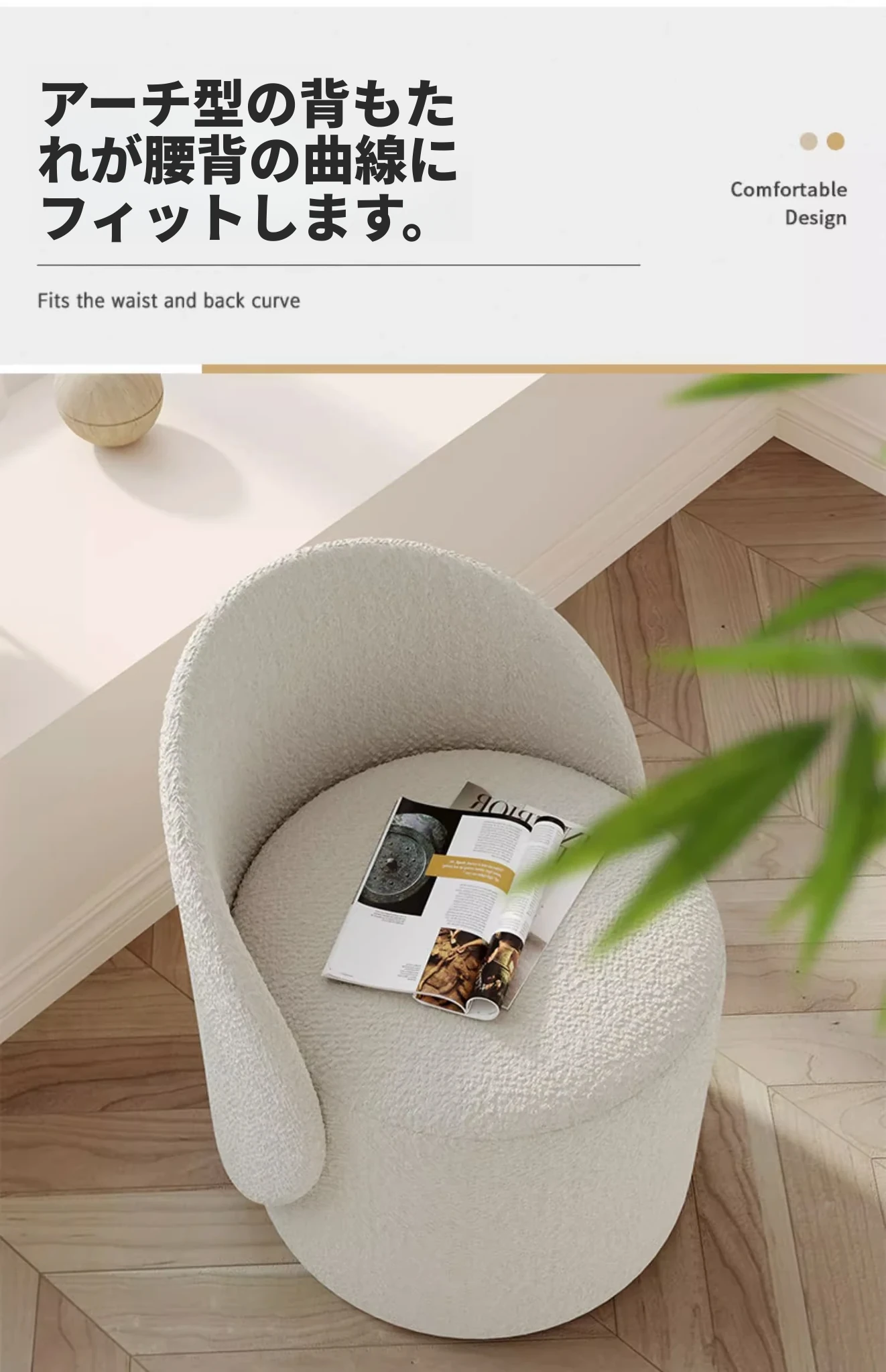シンプルでモダンな化粧椅子|背もたれ付きのラグジュアリーなデザイン|おしゃれな寝室やメイクスペースに最適|ネイルアートにも使えるエレガントな丸椅子
