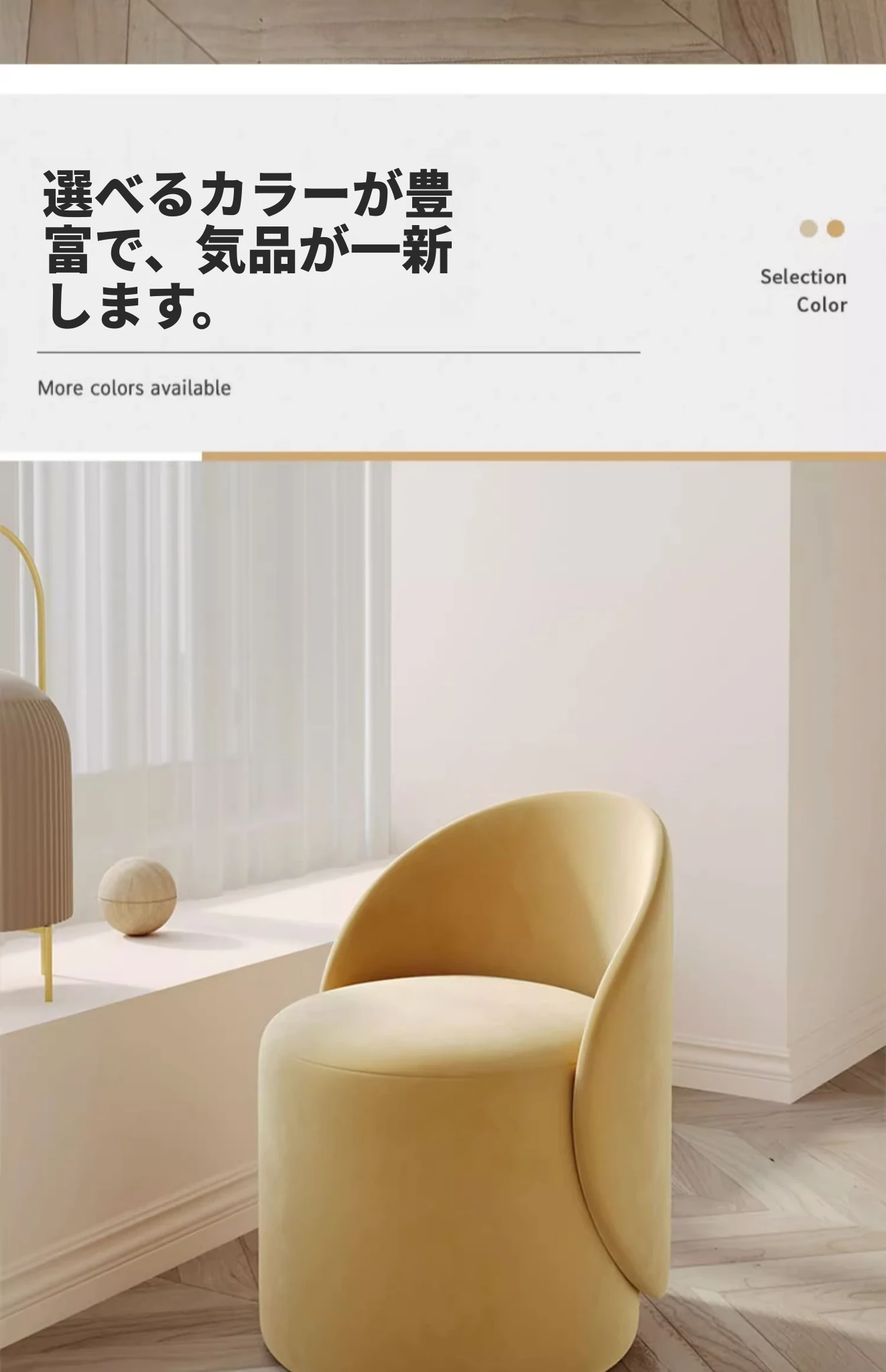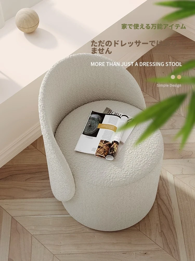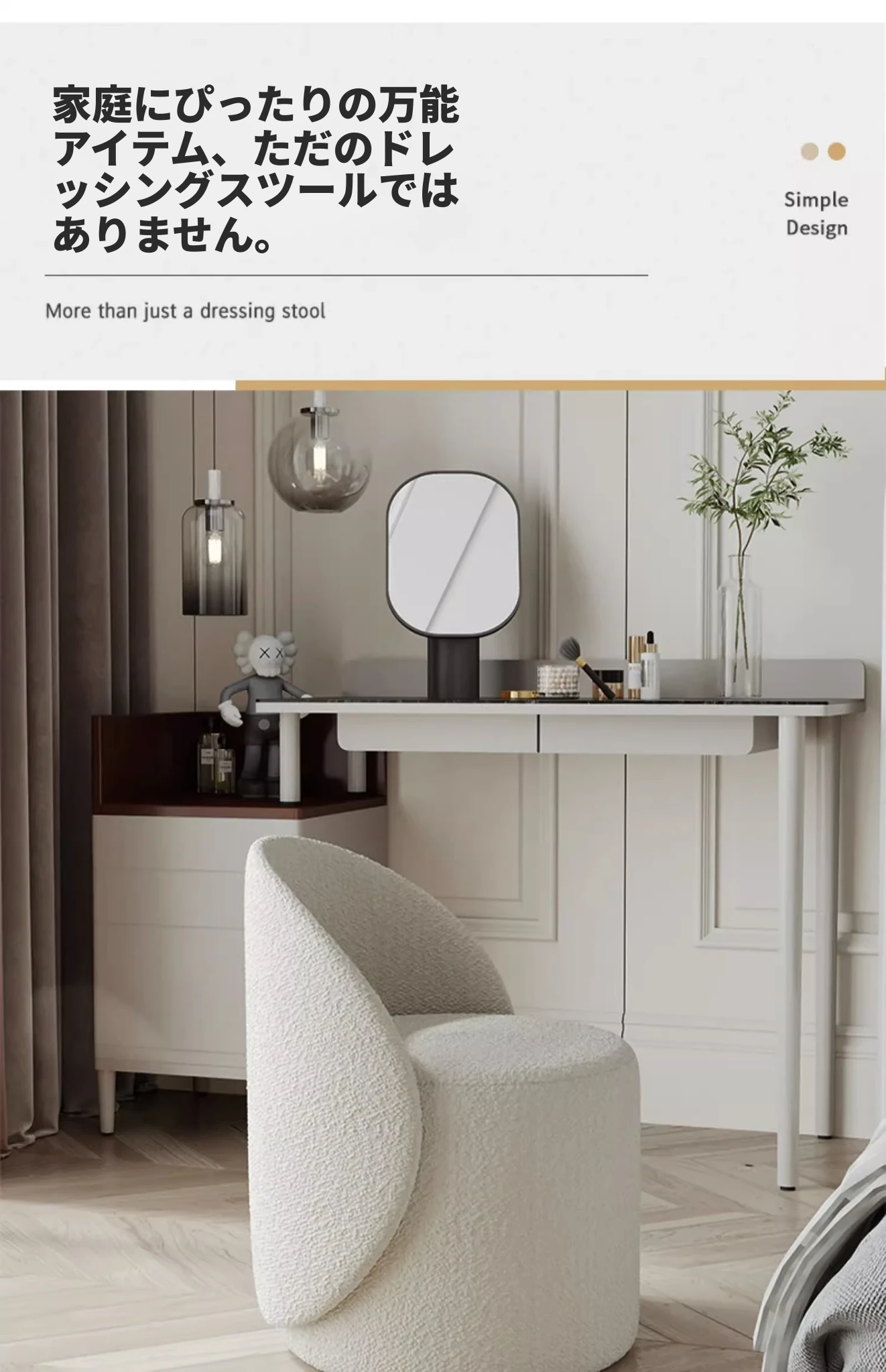 シンプルでモダンな化粧椅子|背もたれ付きのラグジュアリーなデザイン|おしゃれな寝室やメイクスペースに最適|ネイルアートにも使えるエレガントな丸椅子