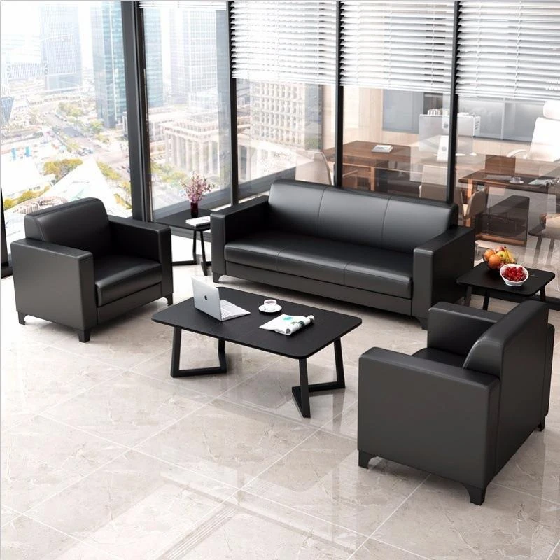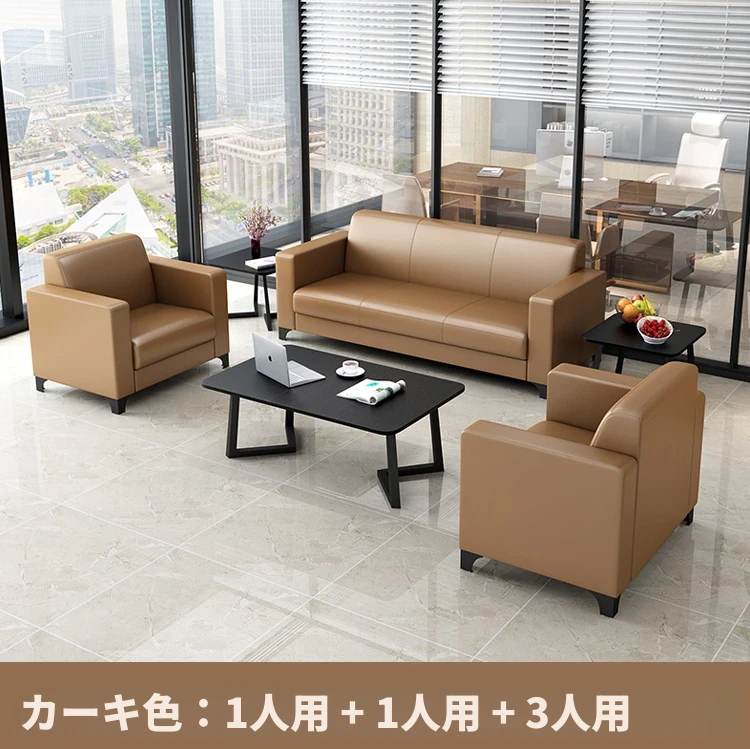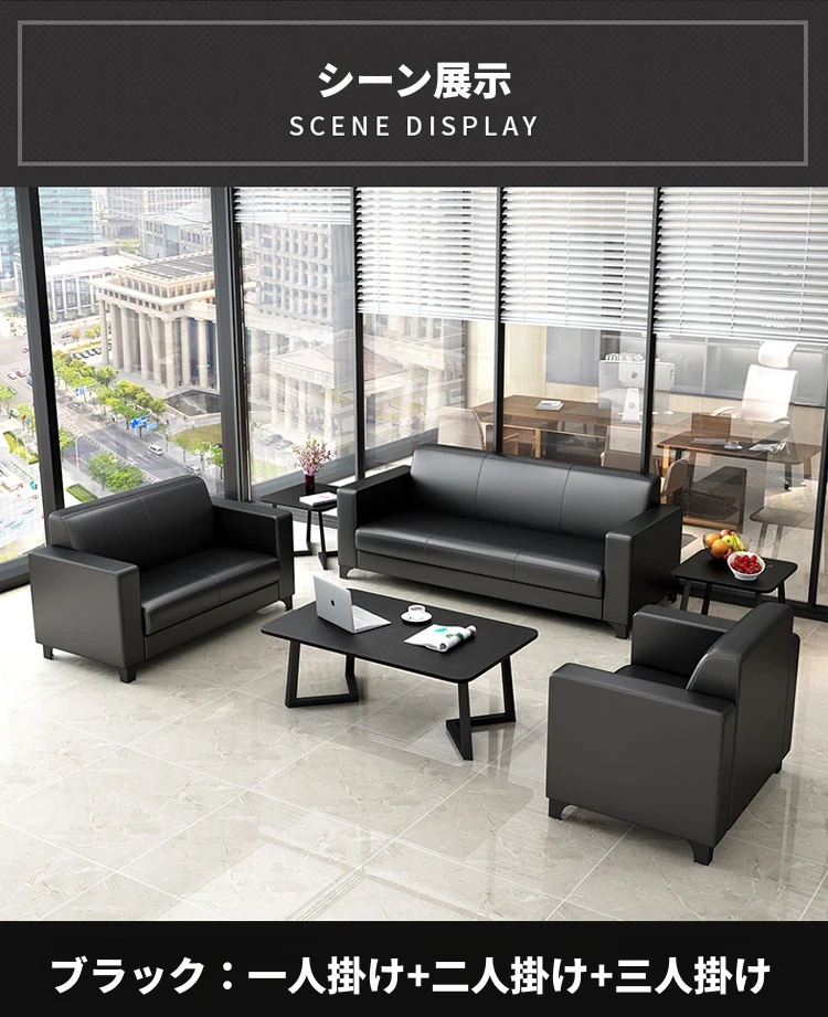 現代的なビジネス向けオフィスソファ&テーブルセット - シンプルで洗練されたデザイン、3人掛けで小型オフィスにも最適!快適な接客空間を演出し、商談や打ち合わせにも最適です。