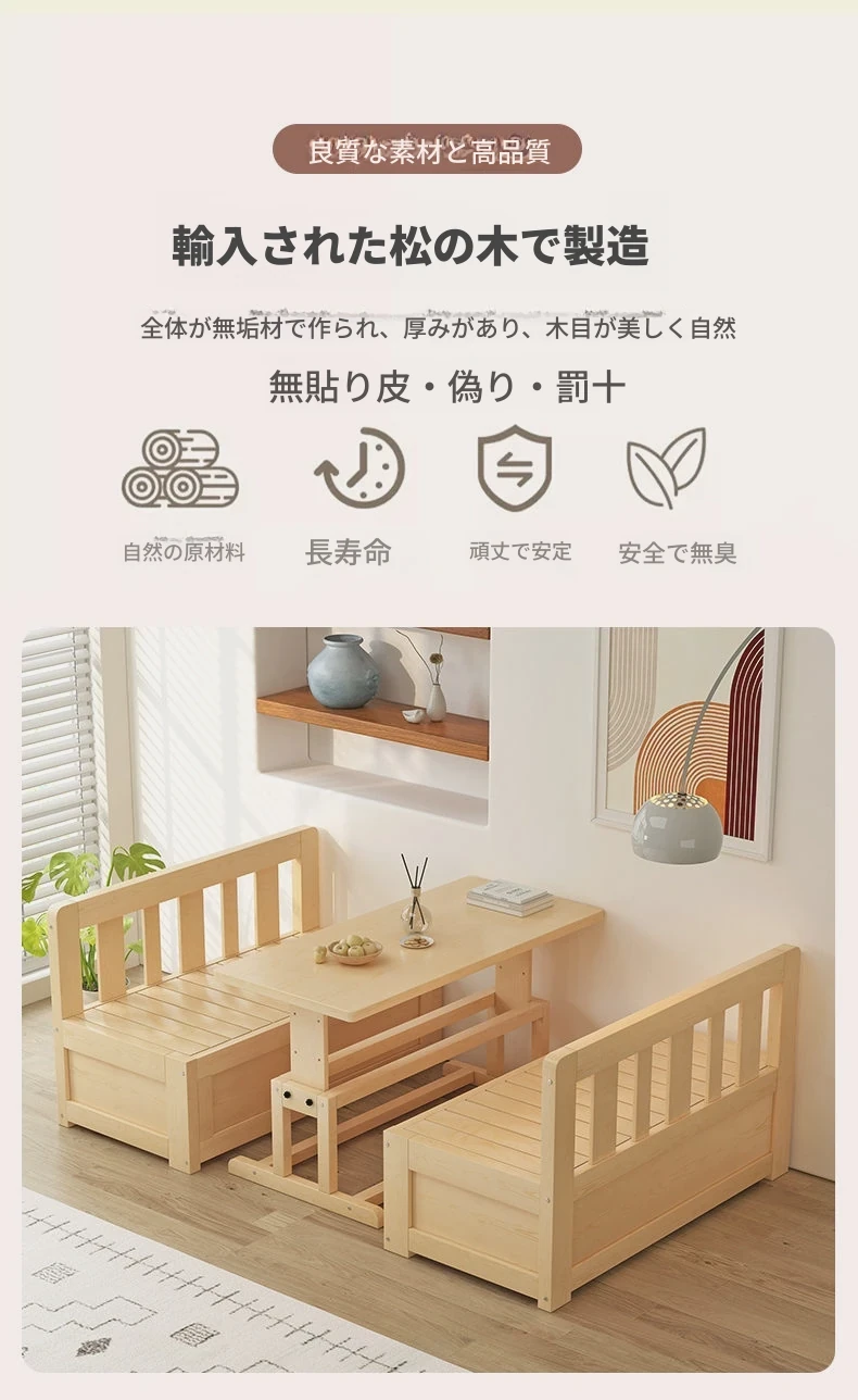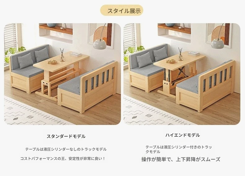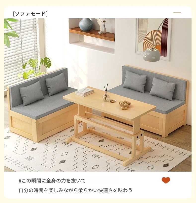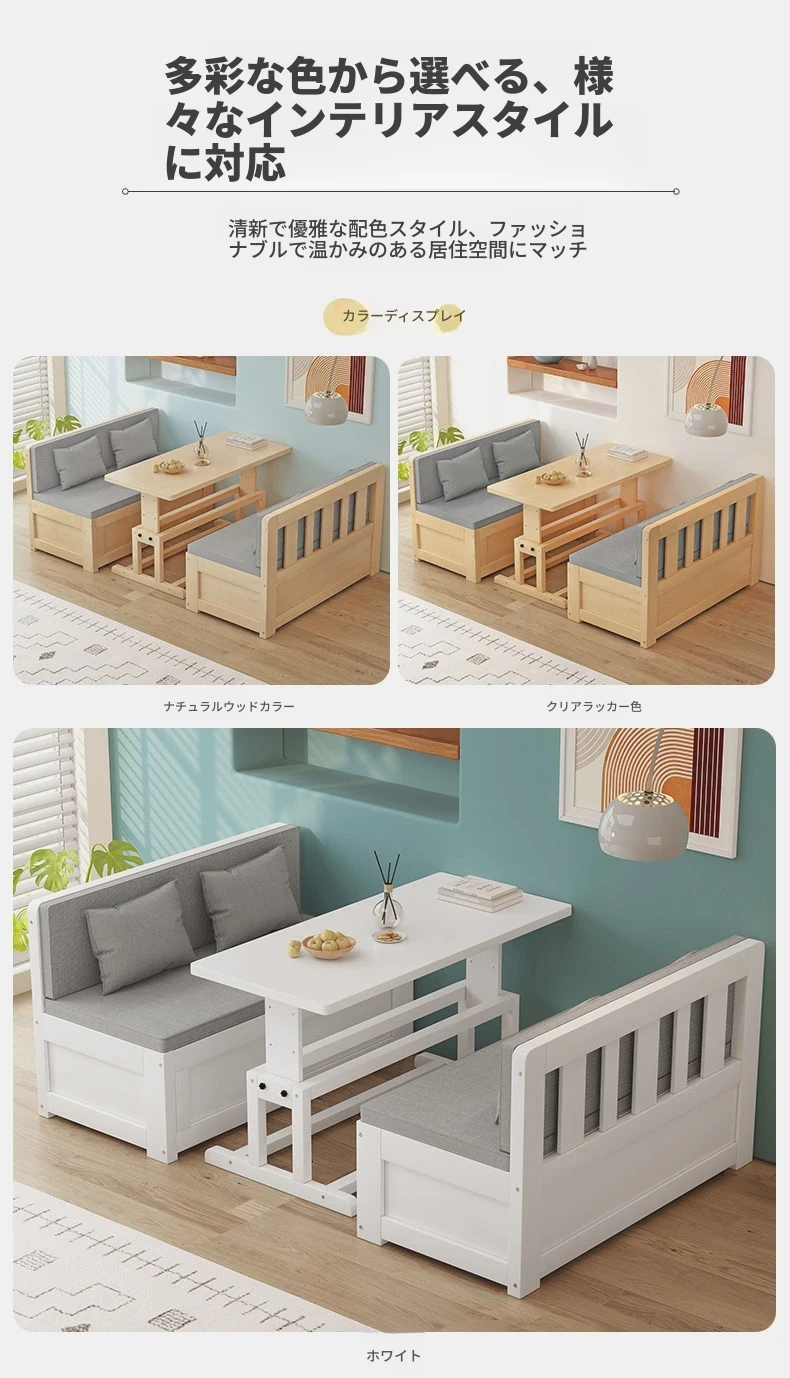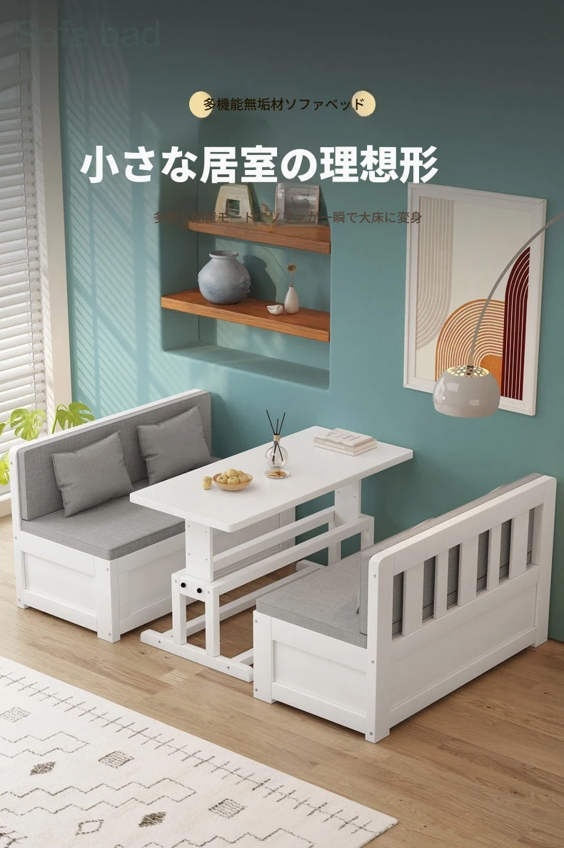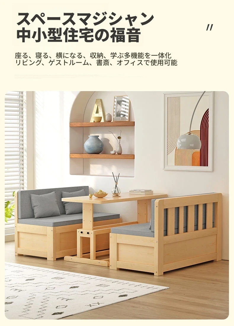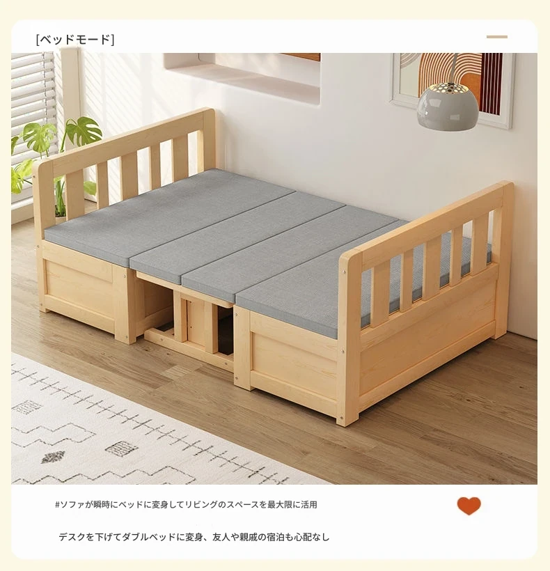折りたたみ可能な実木製ソファベッド - 現代的でシンプルなデザイン、書 desk 付き!小さなスペースでも活躍する多機能ストレージベッドで、快適なリビングルームを演出します。