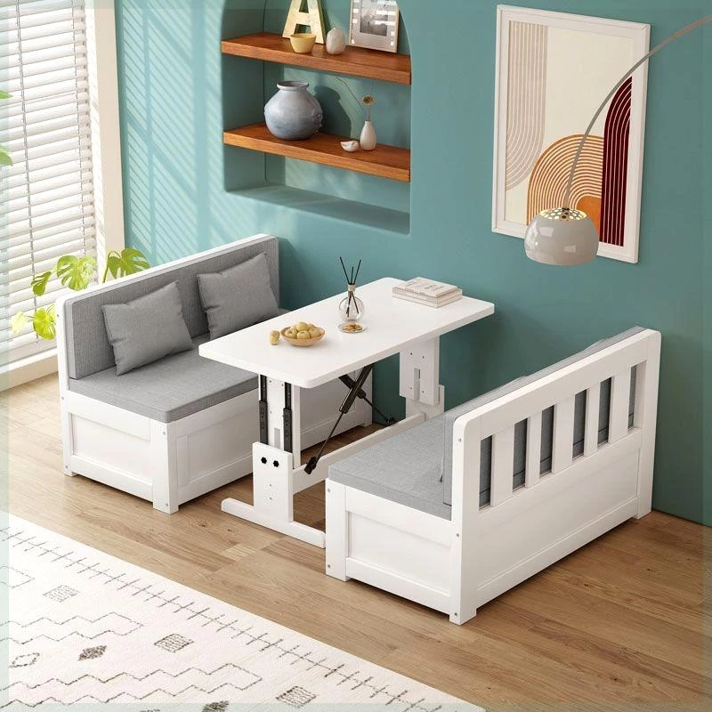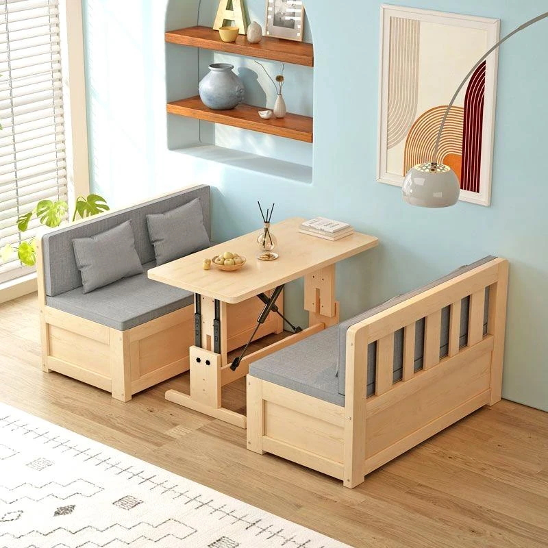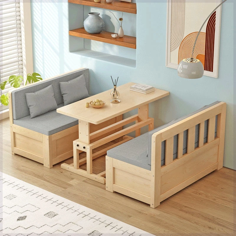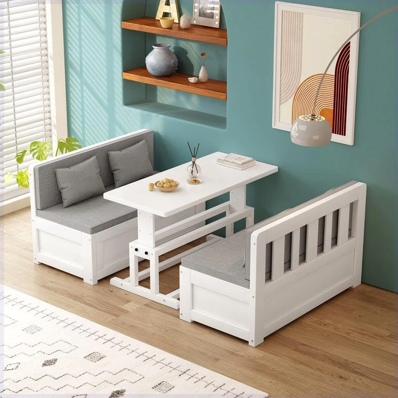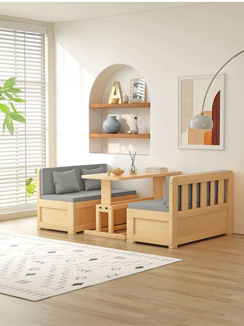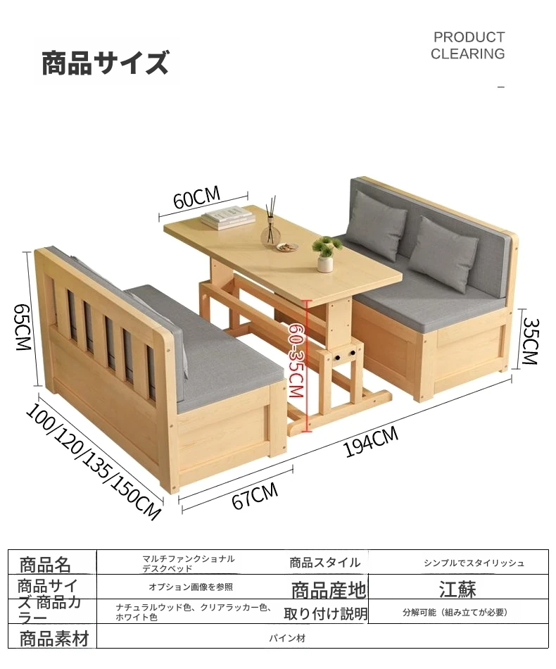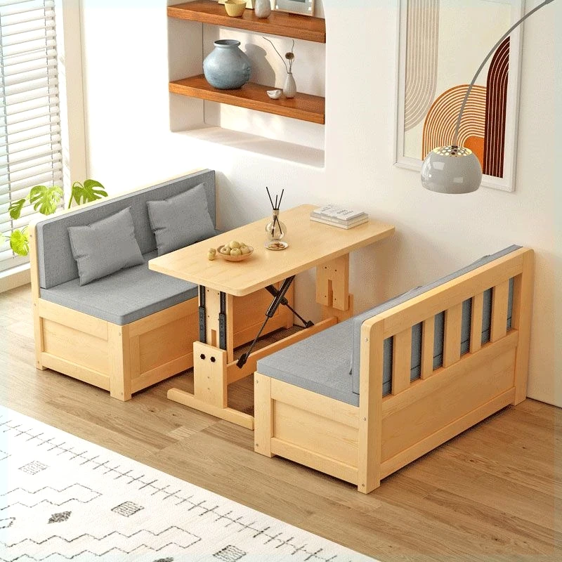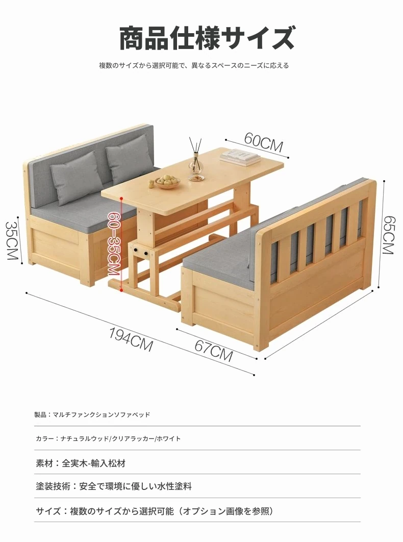 折りたたみ可能な実木製ソファベッド - 現代的でシンプルなデザイン、書 desk 付き!小さなスペースでも活躍する多機能ストレージベッドで、快適なリビングルームを演出します。