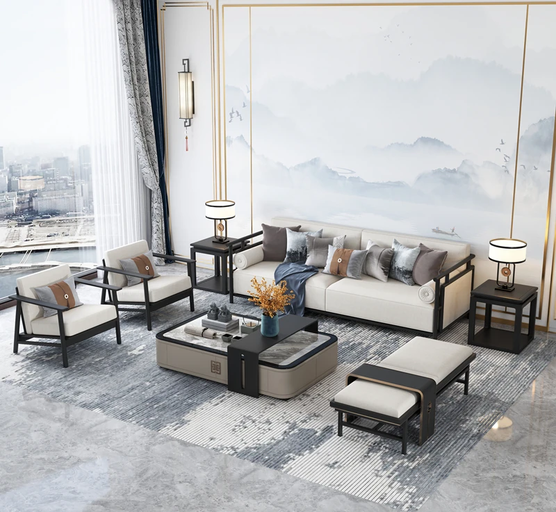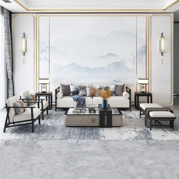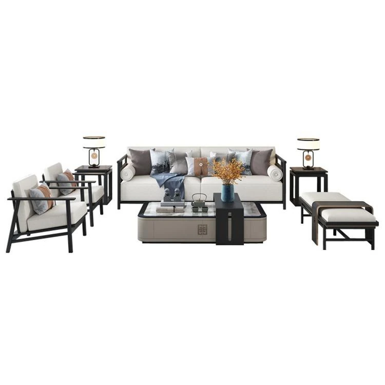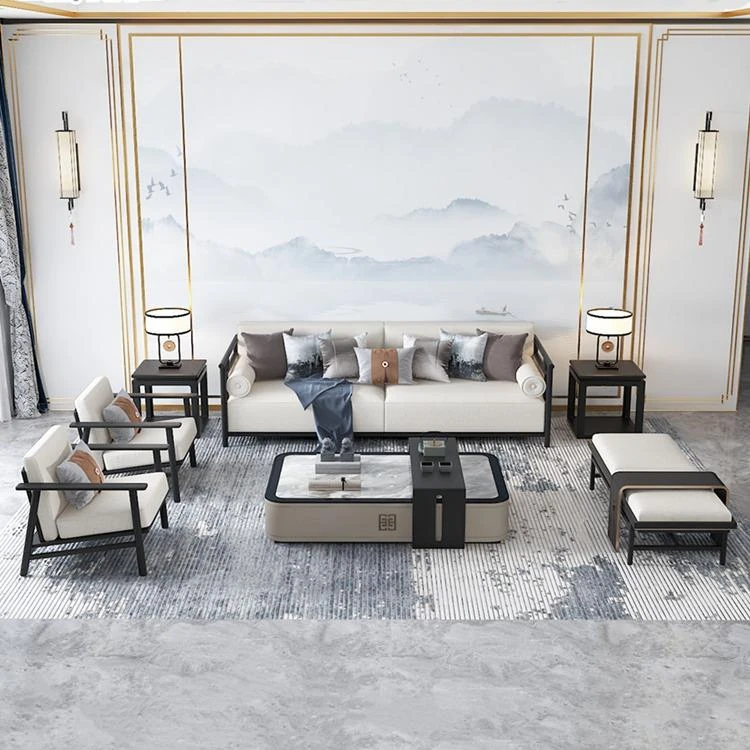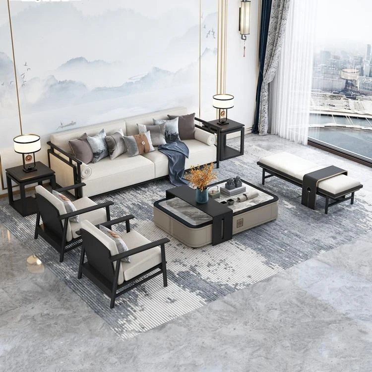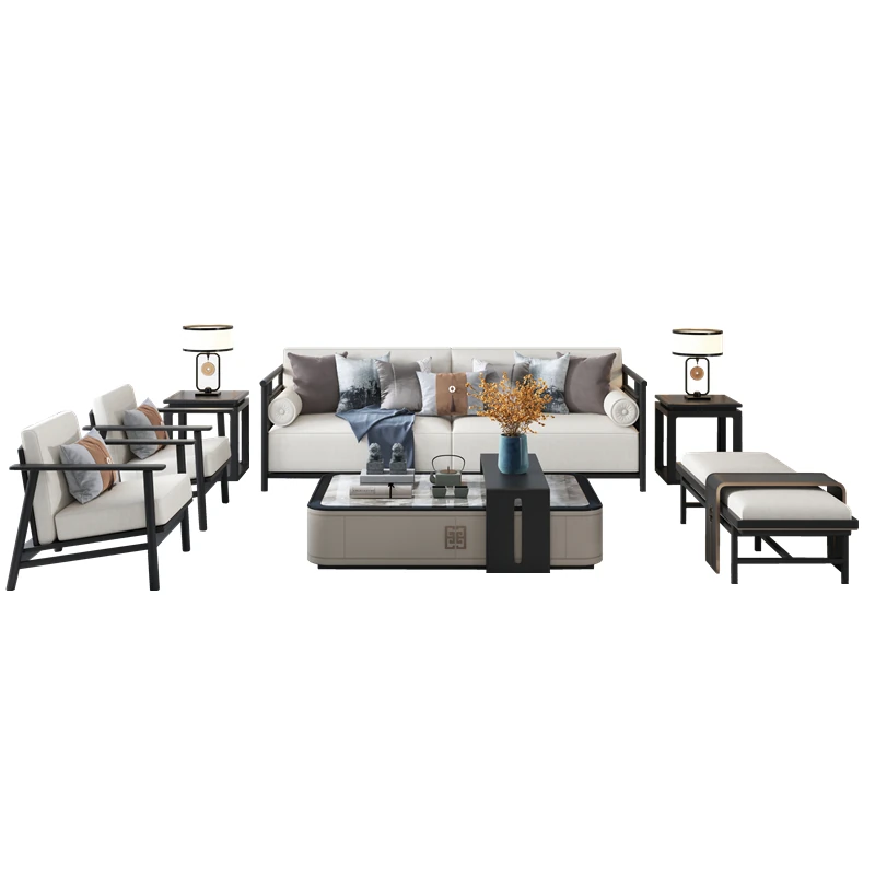 新中式デザインの無垢材ソファセット - モダンでラグジュアリーなミニマリズム、接客リビングやモデルルームに最適なコンパクト家具が即納!