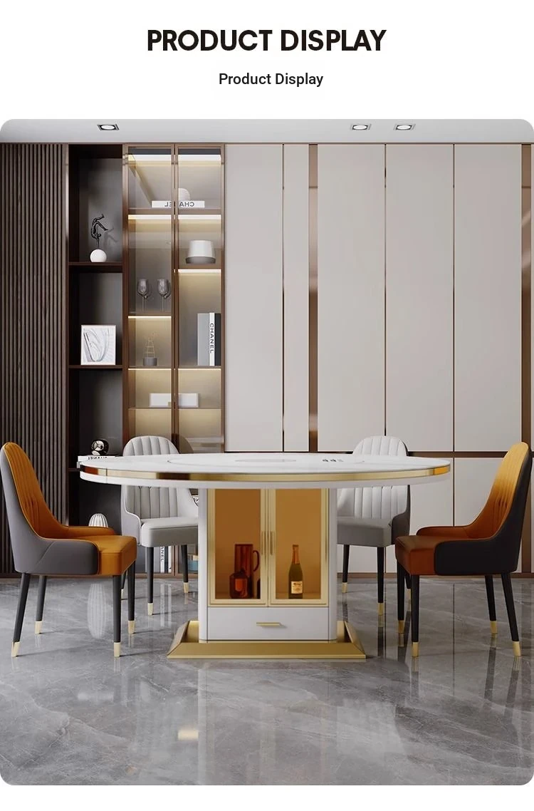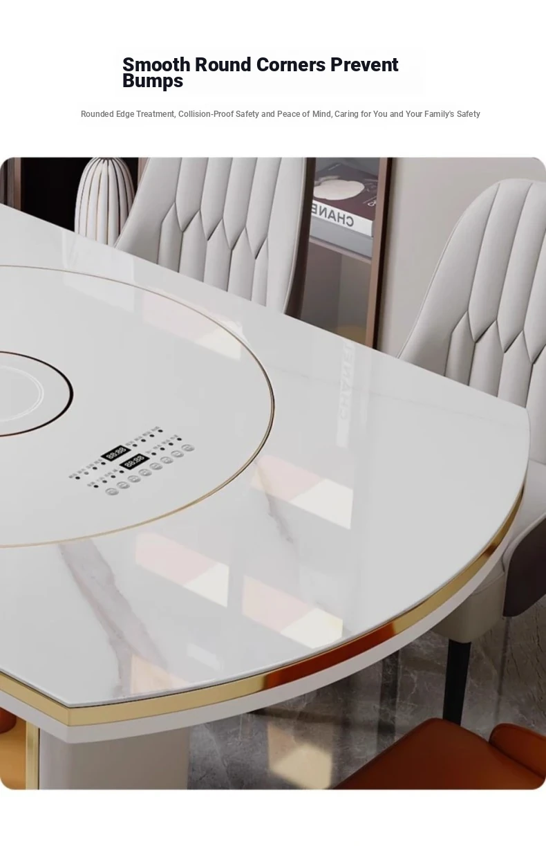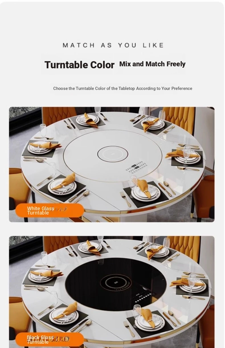 A [A thickened White Cabinet] Rock Plate Ordinary Turntable with Induction cooker/Hot Selling * Lausebana * Solid Quality 59.06 in Dining Table (with 10 Chairs)