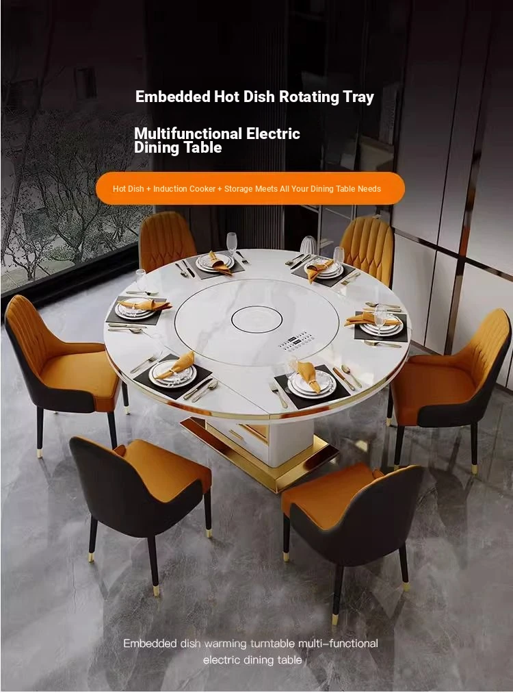 A [A thickened White Cabinet] Rock Plate Ordinary Turntable with Induction cooker/Hot Selling * Roussebana * Solid Quality 59.06 in Dining Table (with 6 Chairs)
