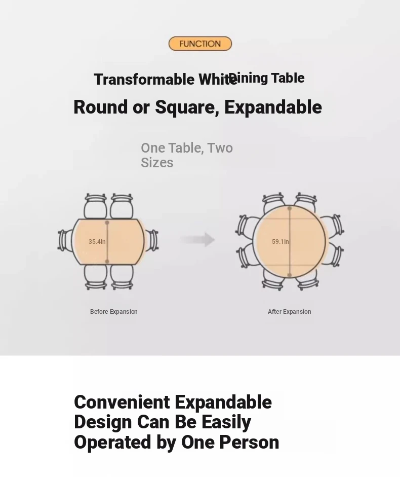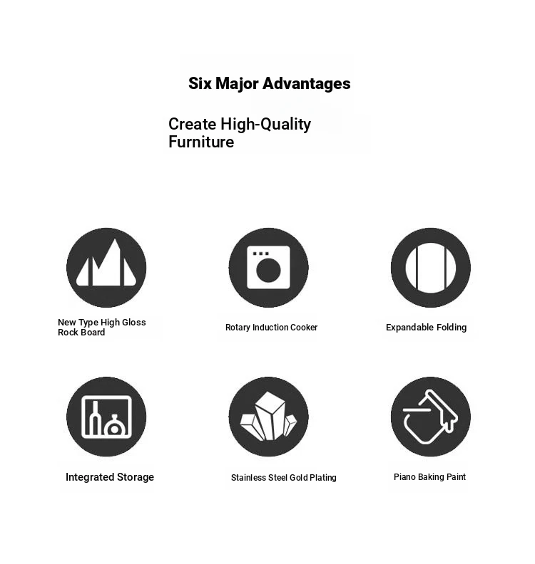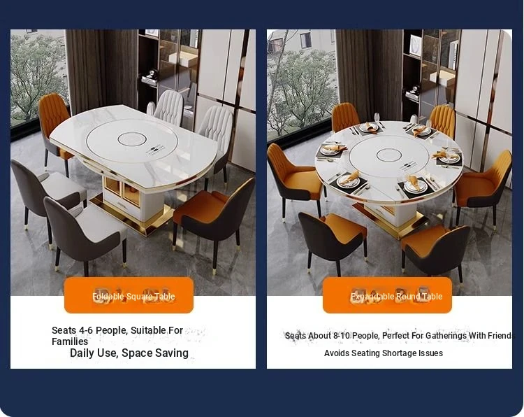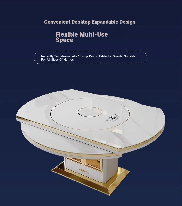 Modern Multifunctional Rock Plate Dining Table with Rotating Tray - Space-Saving, Expandable, and Foldable Design with Induction Cooktop for Small Homes