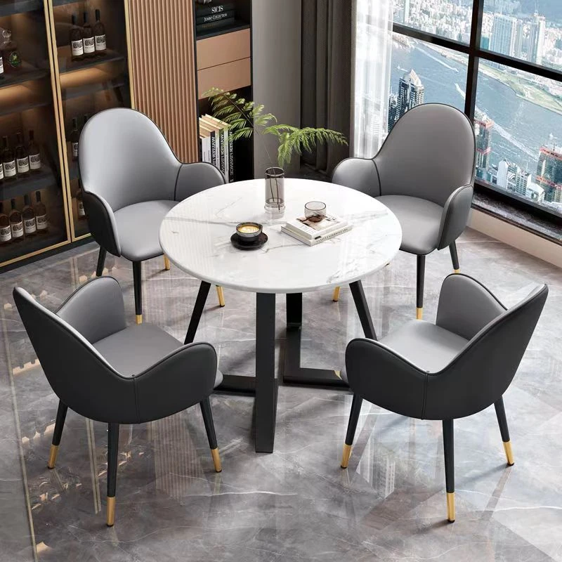 70岩板一卓四椅/黒金V架/【ミルクコーヒー×灰】耐磨猫爪皮