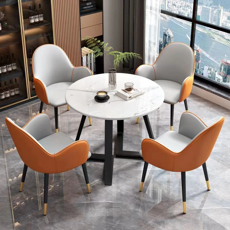 70岩板一卓四椅/黒金V架/【オレンジ×灰】耐磨猫爪皮