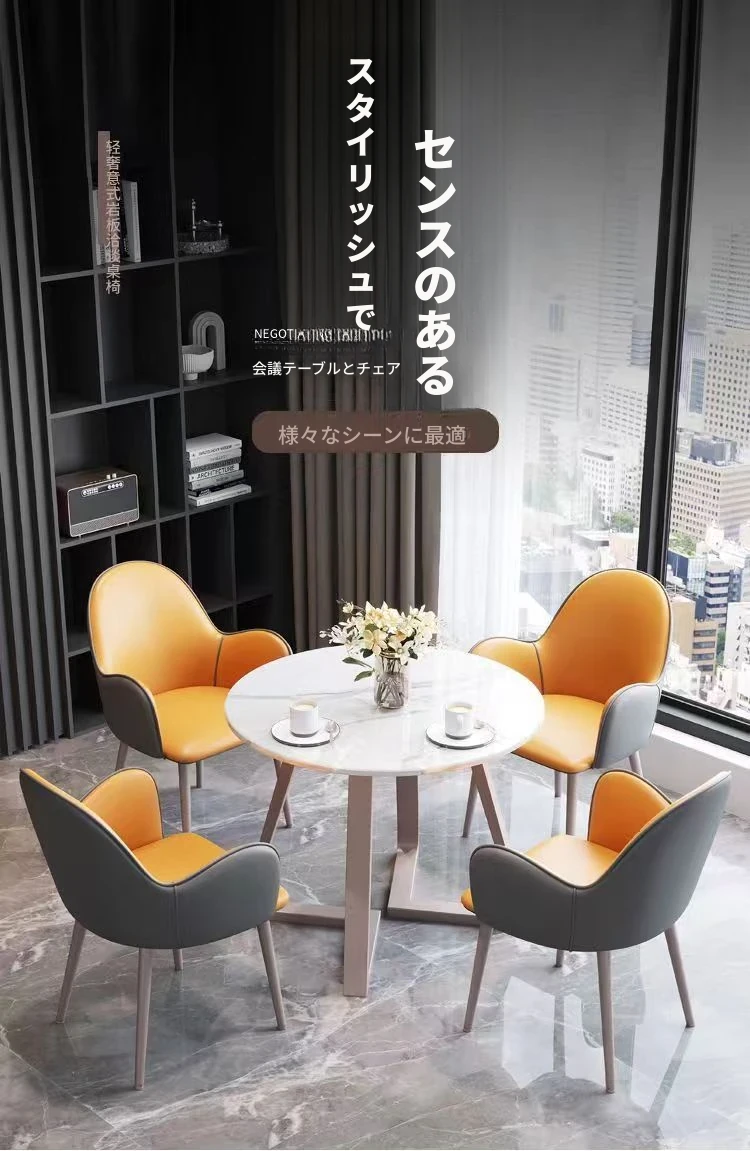 80岩板一卓三椅/黒金V架/【オレンジ×灰】耐磨猫爪皮