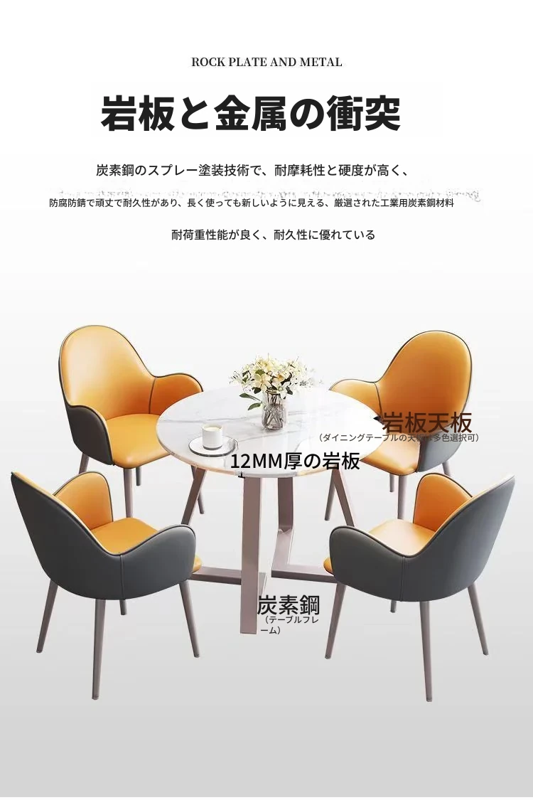 80岩板一卓四椅/黒金V架/【オレンジ×灰】耐磨猫爪皮