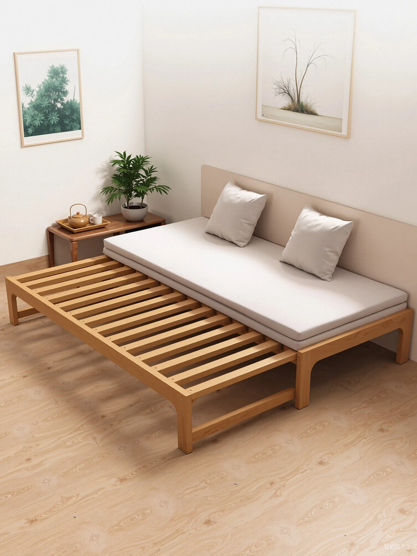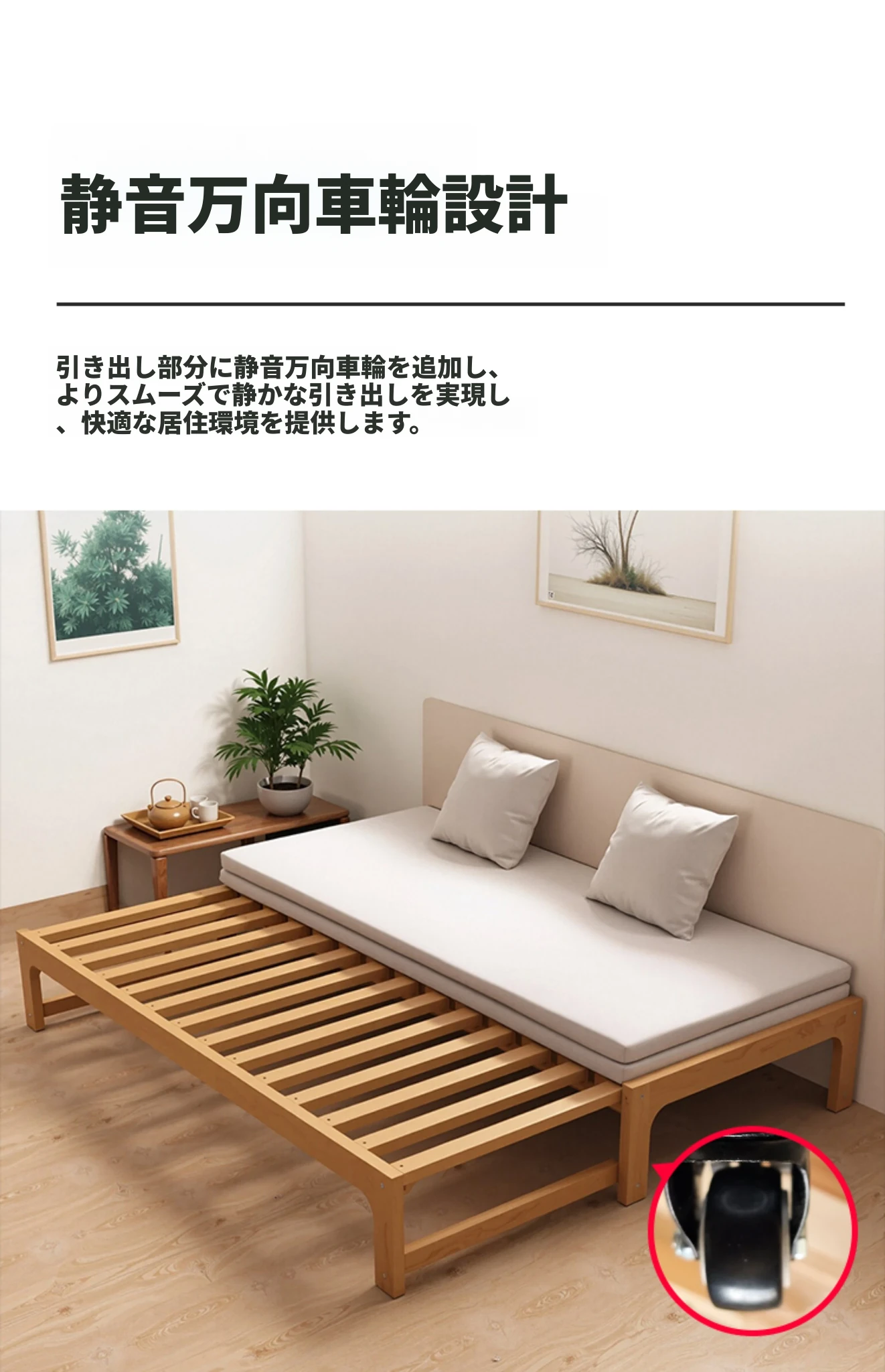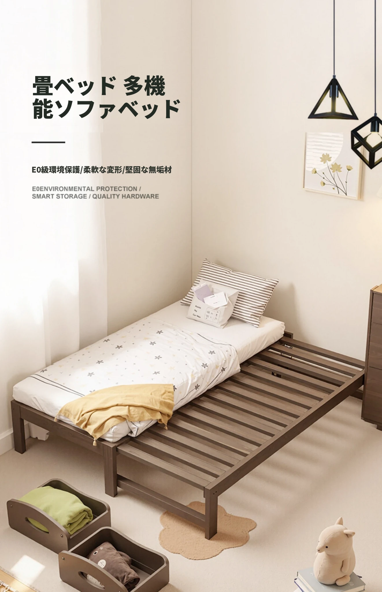 全実木製の伸縮式ベッド!小型住宅に最適なリビングや寝室用のサイドプルソファベッド、畳スタイルの折りたたみベッド。スペースを有効活用し、快適な睡眠空間を実現します!