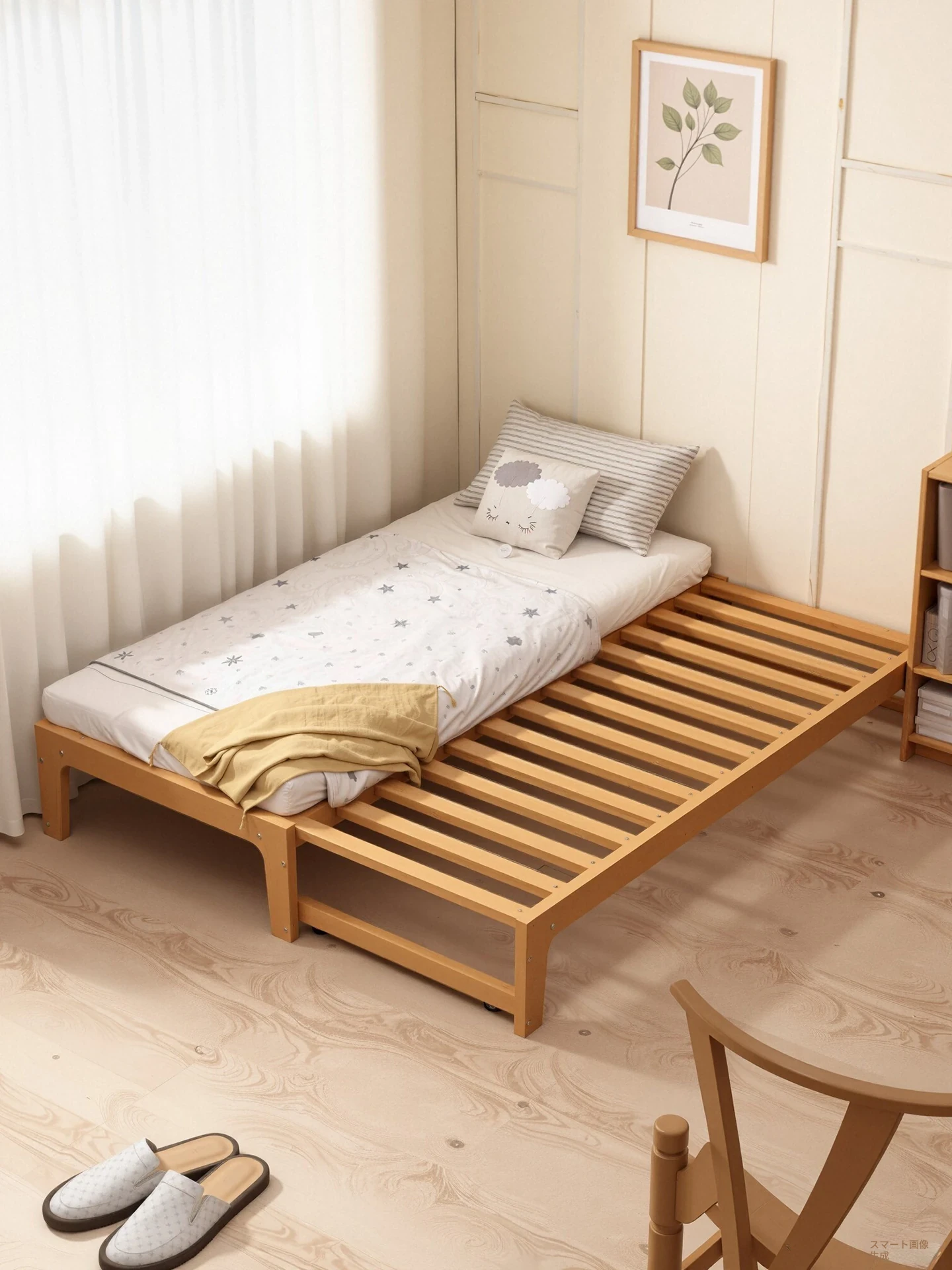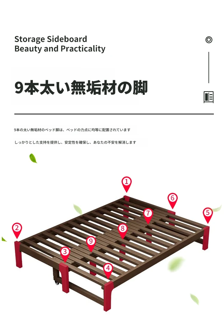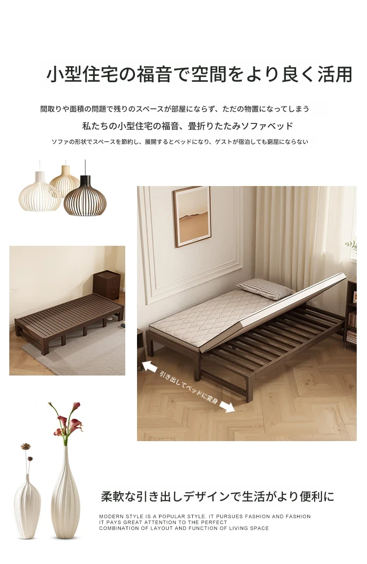 全実木製の伸縮式ベッド!小型住宅に最適なリビングや寝室用のサイドプルソファベッド、畳スタイルの折りたたみベッド。スペースを有効活用し、快適な睡眠空間を実現します!