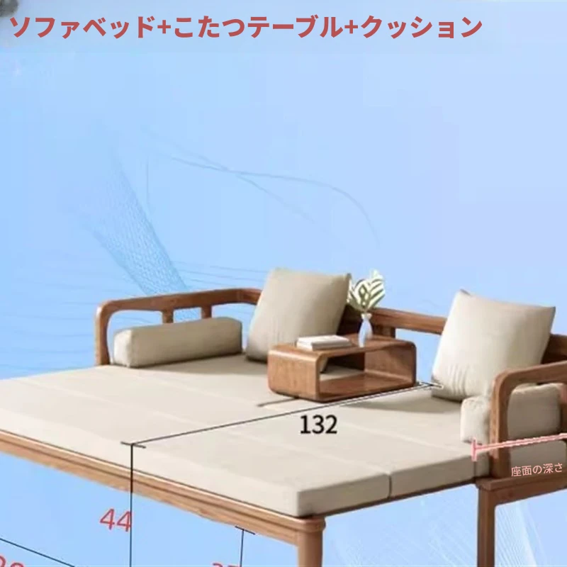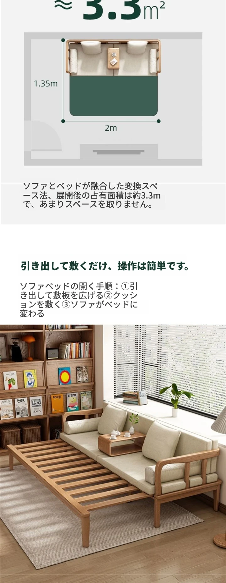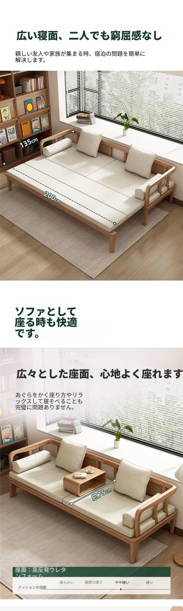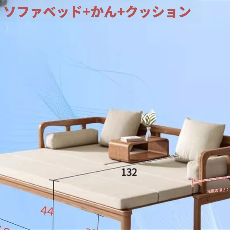 冬夏兼用の超深75CM無垢材ソファ!スライド式のソファベッドで、リビングや寝室、小さな部屋にも最適。快適な座り心地とスタイリッシュなデザインで、あなたの空間を素敵に演出します!