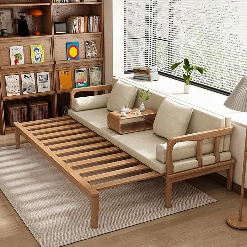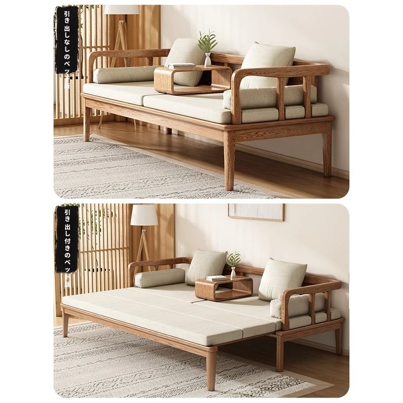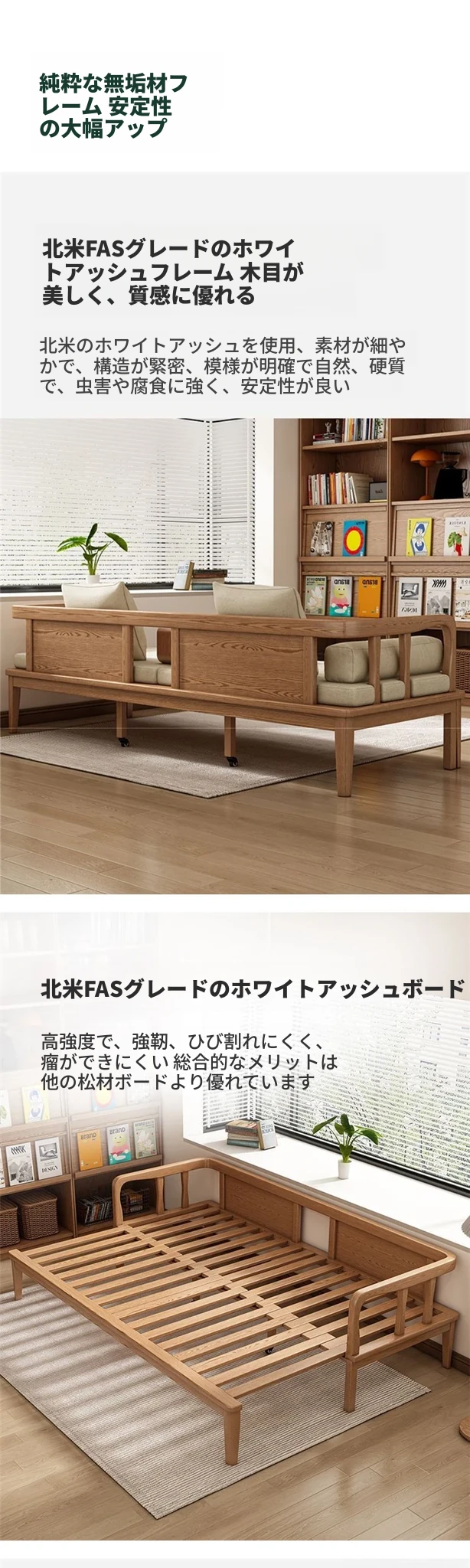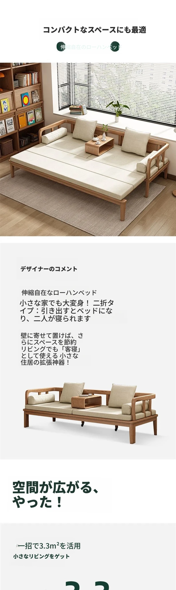 冬夏兼用の超深75CM無垢材ソファ!スライド式のソファベッドで、リビングや寝室、小さな部屋にも最適。快適な座り心地とスタイリッシュなデザインで、あなたの空間を素敵に演出します!