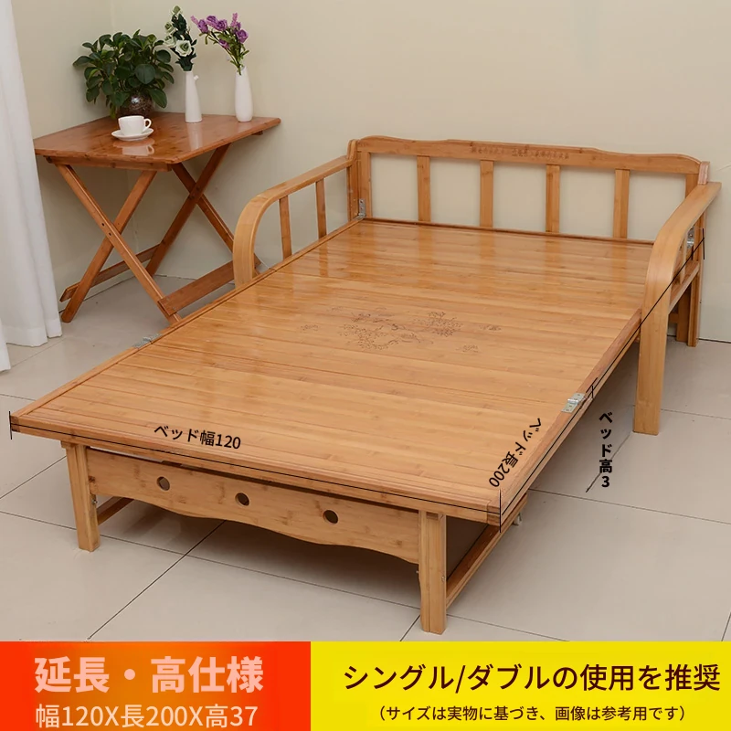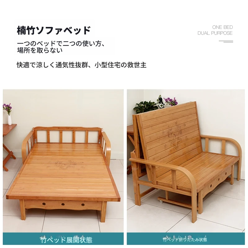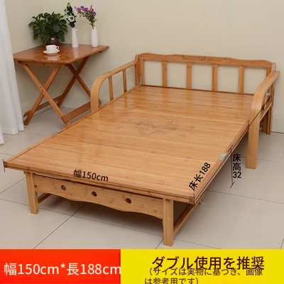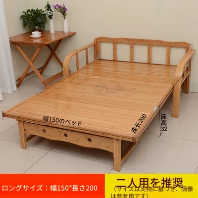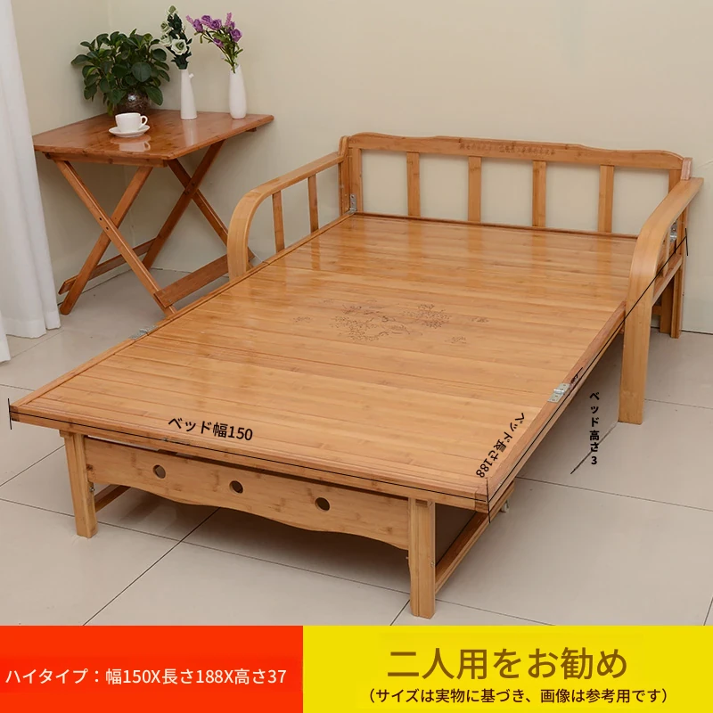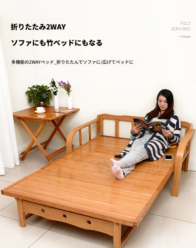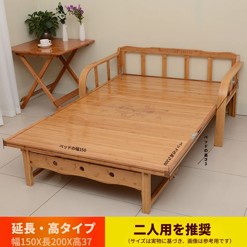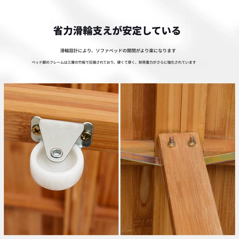 折りたたみソファベッド - 2wayデザイン!1.5mの実木&竹素材使用、リビングや狭い部屋に最適な多機能ダブル/シングルベッド。快適な眠りとスタイリッシュな空間を実現!
