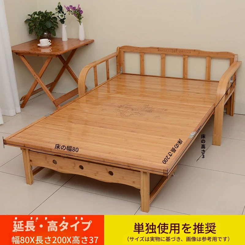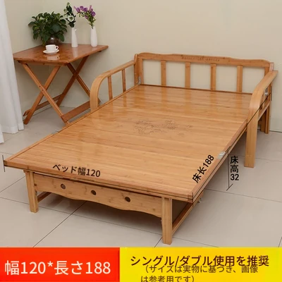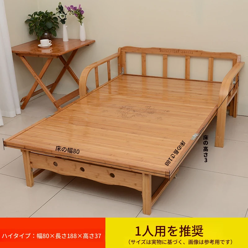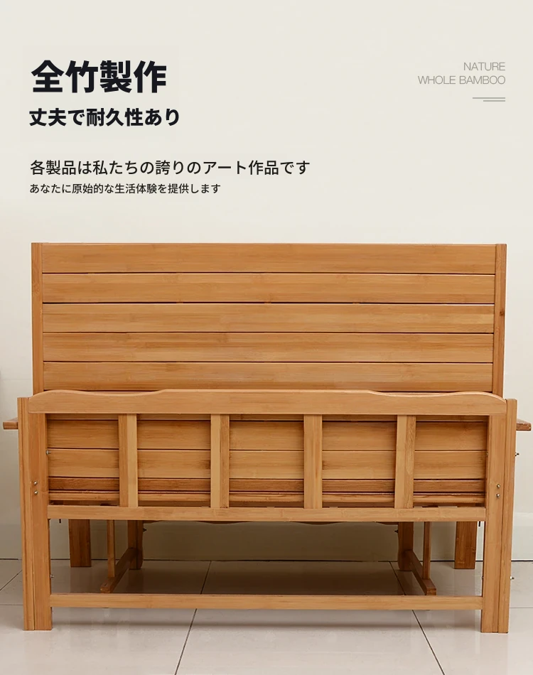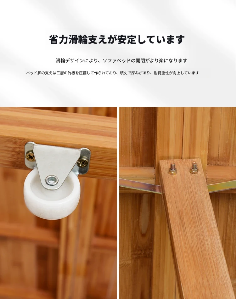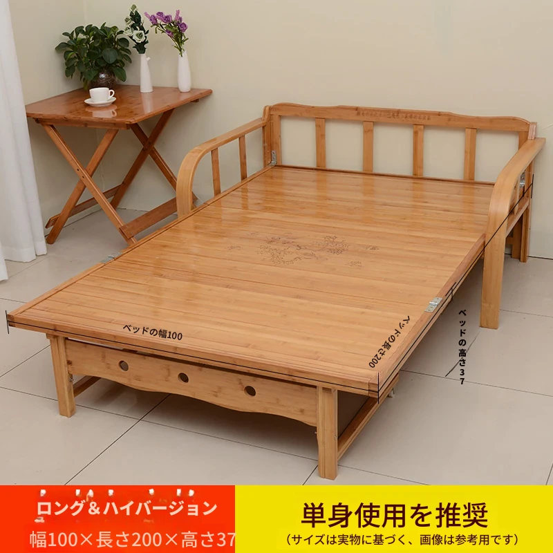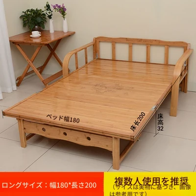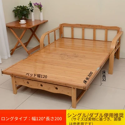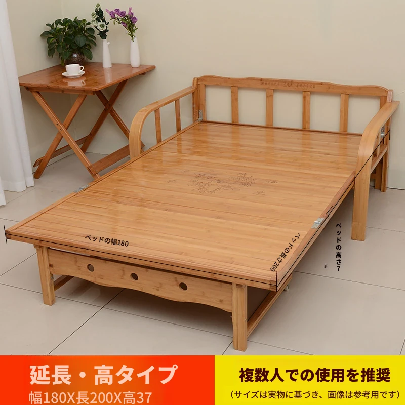折りたたみソファベッド - 2wayデザイン!1.5mの実木&竹素材使用、リビングや狭い部屋に最適な多機能ダブル/シングルベッド。快適な眠りとスタイリッシュな空間を実現!