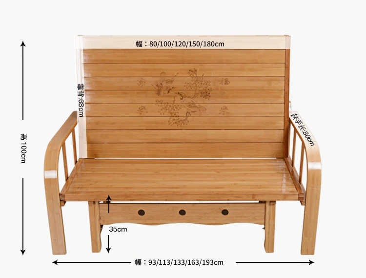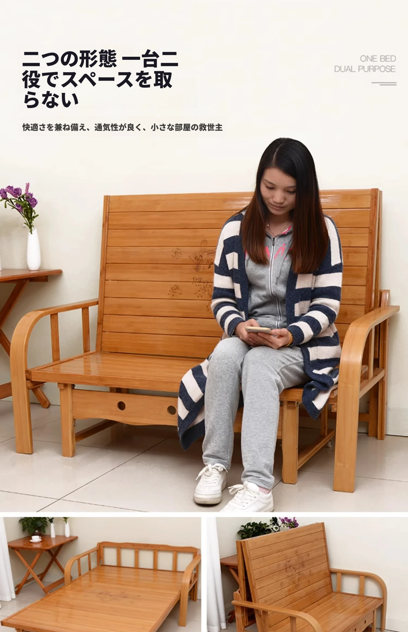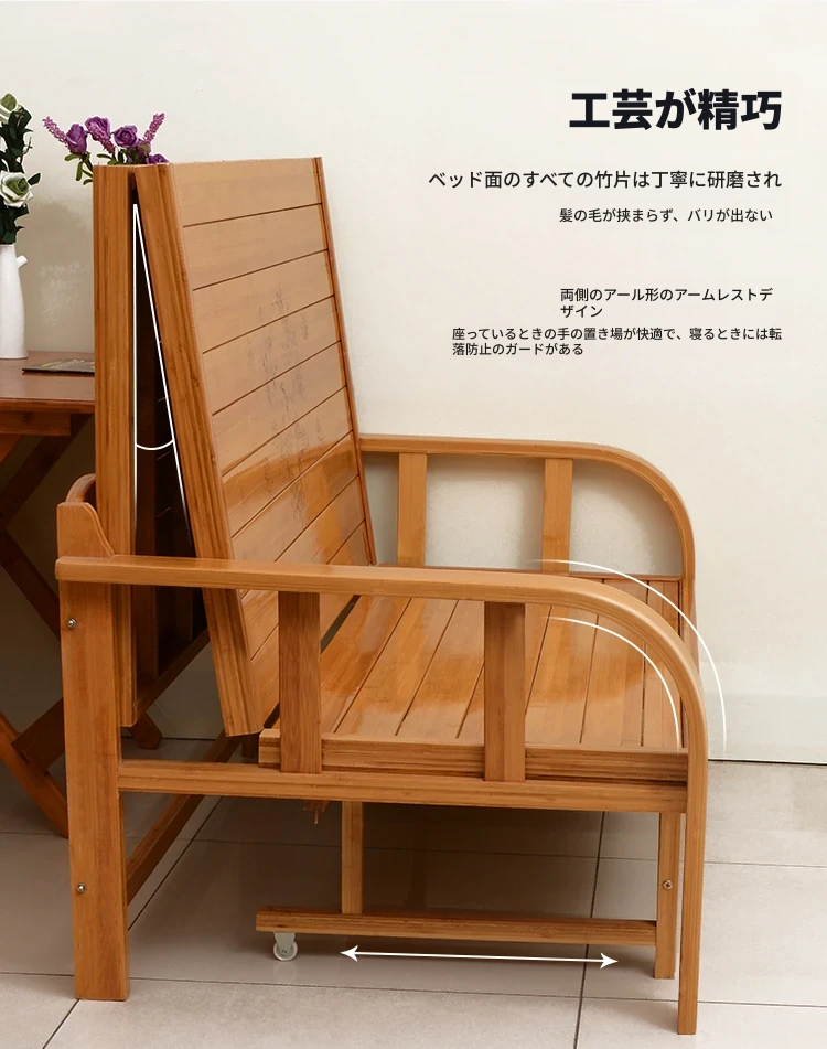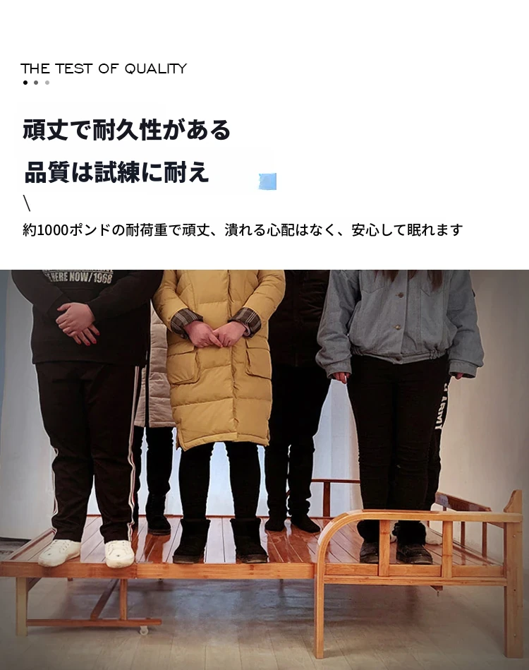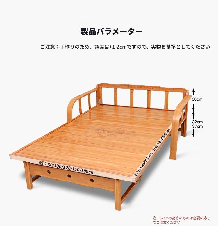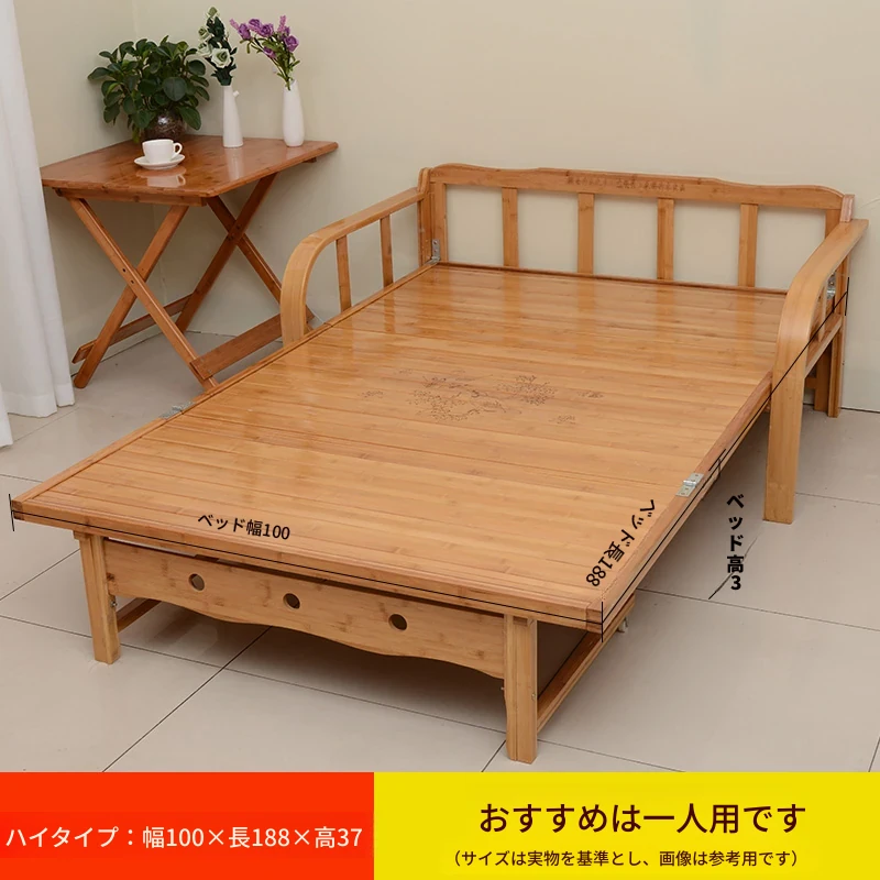 折りたたみソファベッド - 2wayデザイン!1.5mの実木&竹素材使用、リビングや狭い部屋に最適な多機能ダブル/シングルベッド。快適な眠りとスタイリッシュな空間を実現!