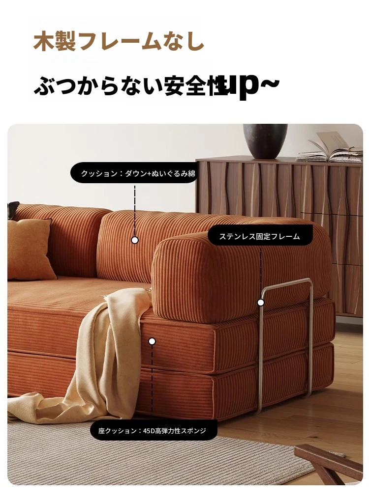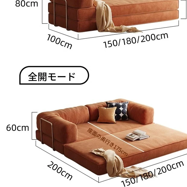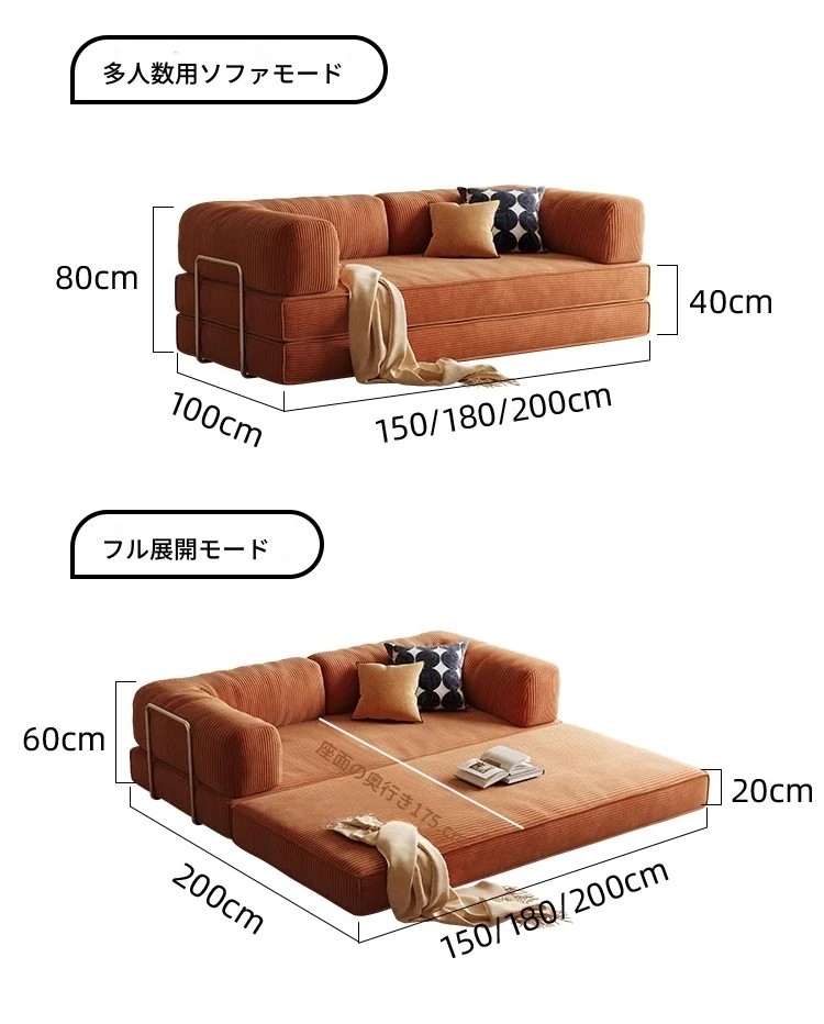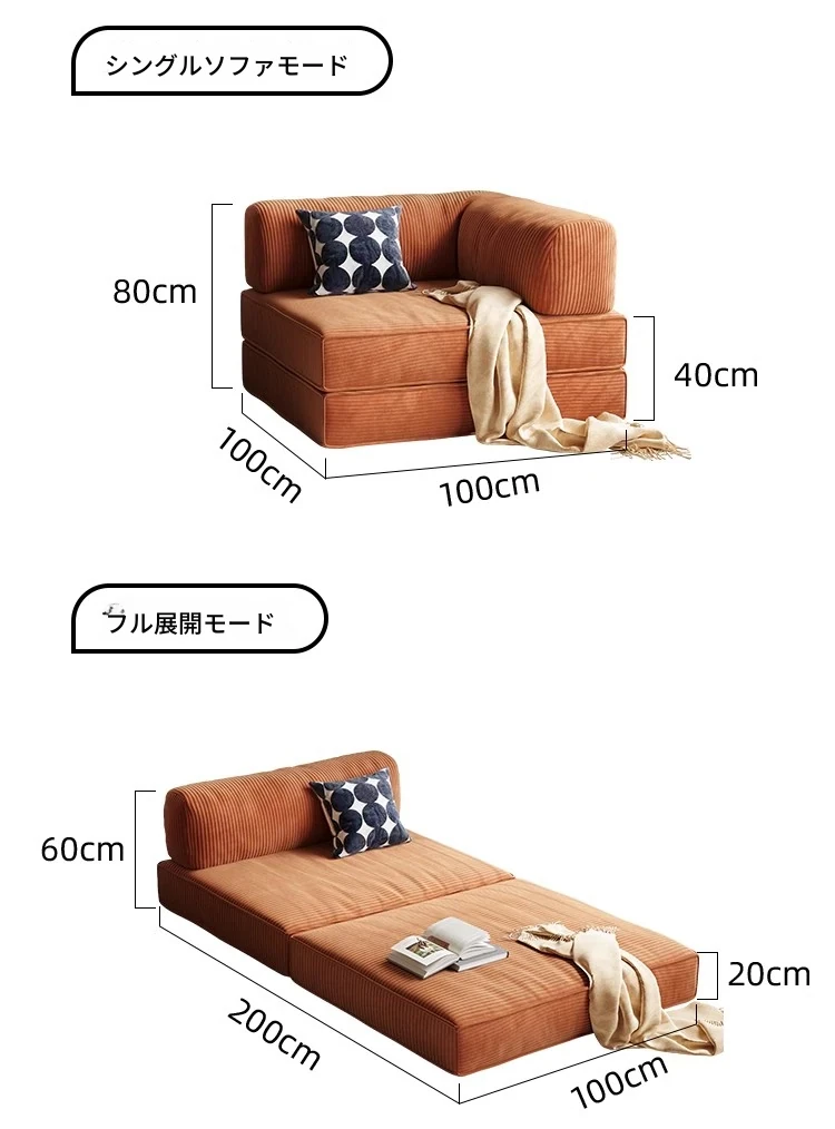 折りたたみソファベッド|リビングや書斎に最適なコンパクトデザイン|モジュラーファブリックでスタイリッシュなLazy Sofa Bed|小型住宅にぴったり!