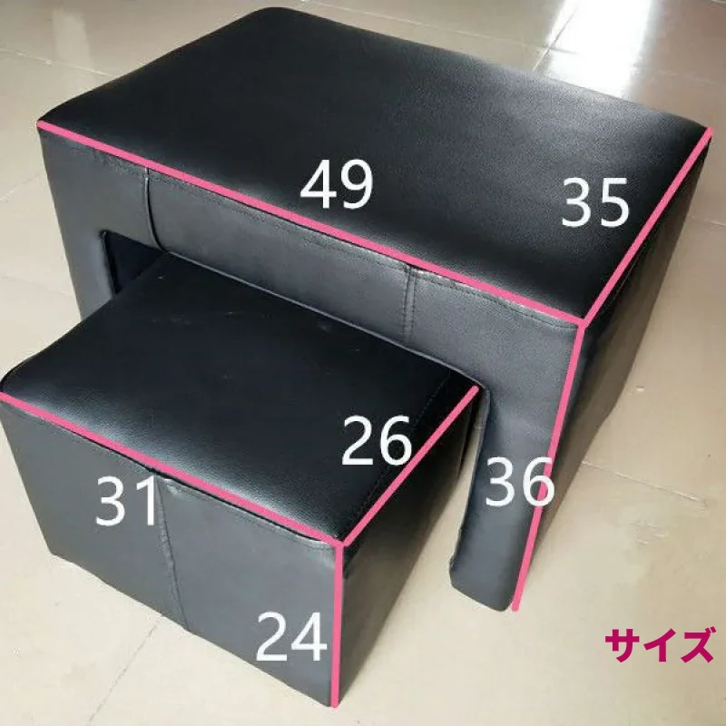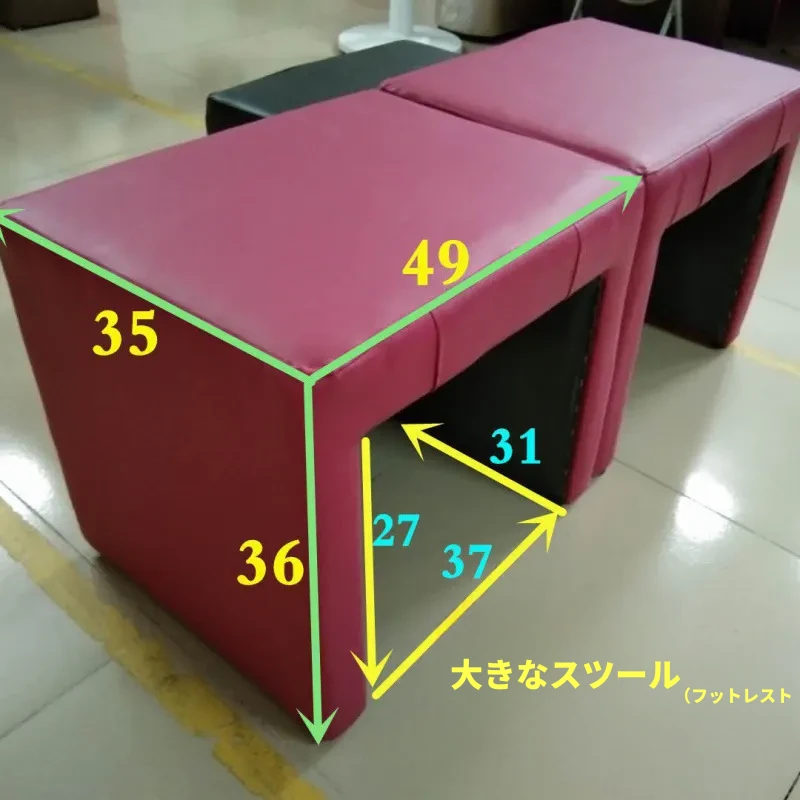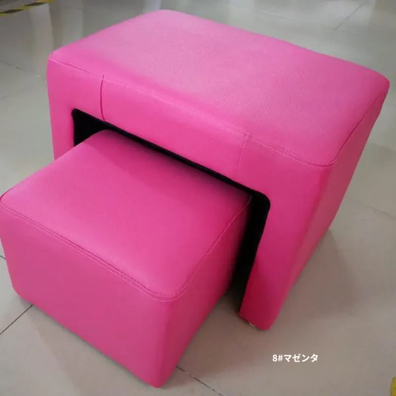 ネイルサロン用ソファオットマンセット!快適なフットバスやフットケアに最適な、親子サイズのフットスツール。足を伸ばしてリラックスできる足置きマット付き。送料無料でお届け!