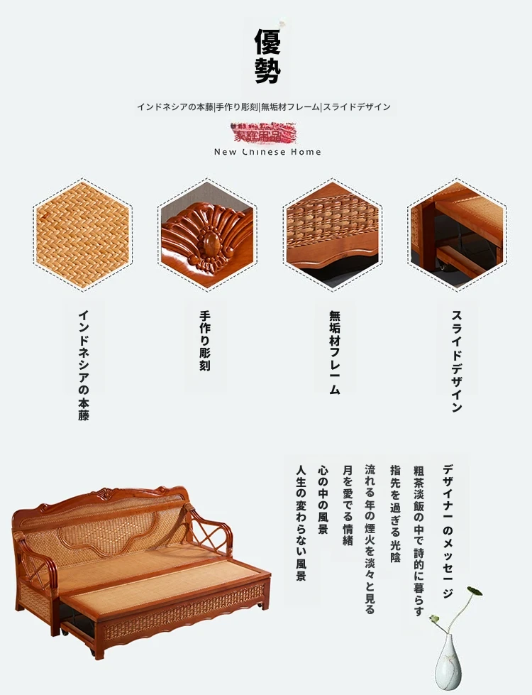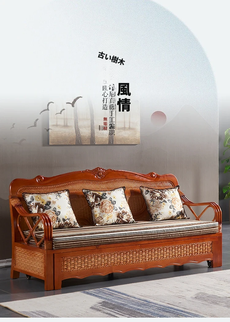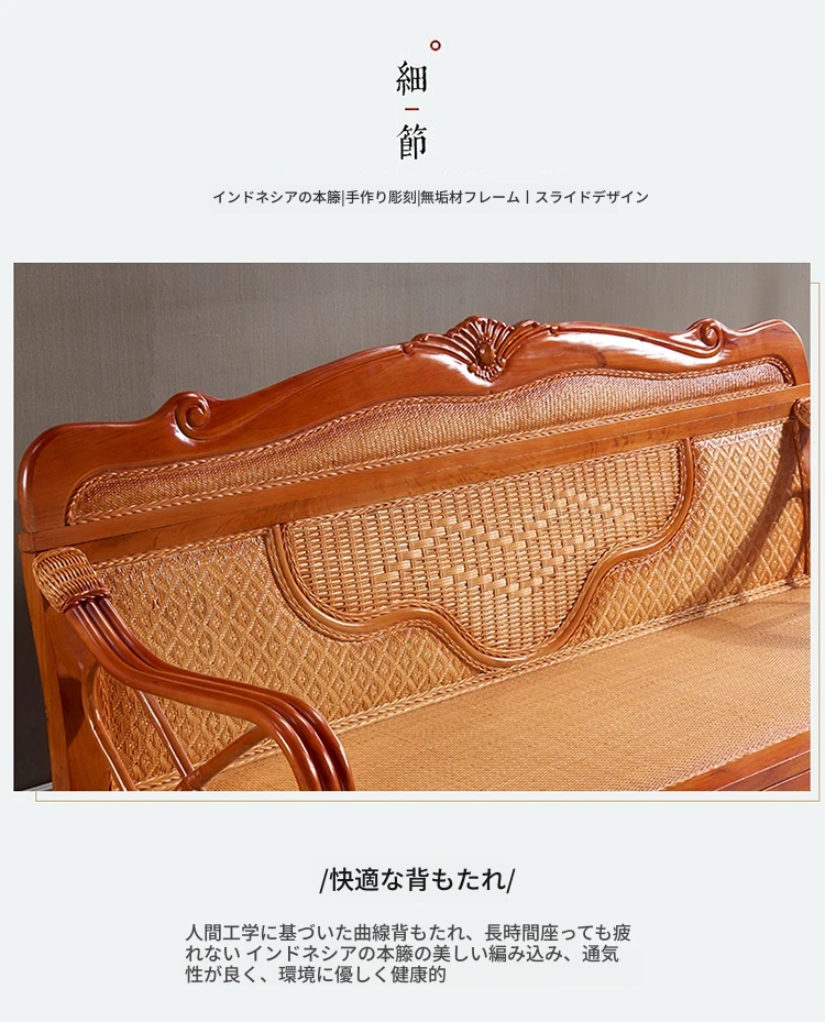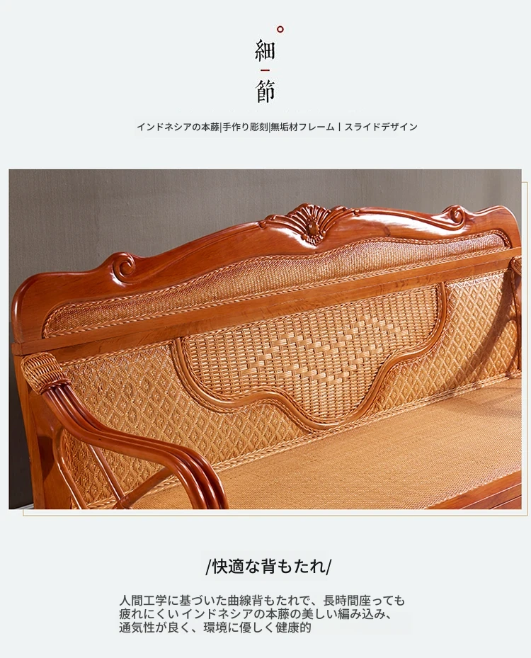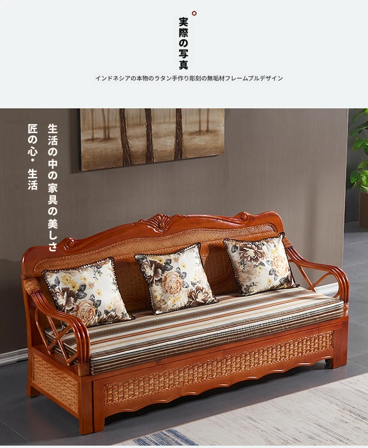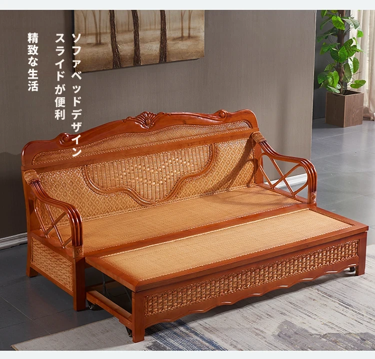 本物の籐製ソファベッド!天然木と籐の組み合わせで、折りたたみ可能な多機能ソファ。3人掛けの快適なデザインで、リビングルームやゲストルームに最適。おしゃれで実用的な家具をお探しの方にぴったりです!