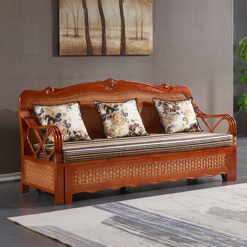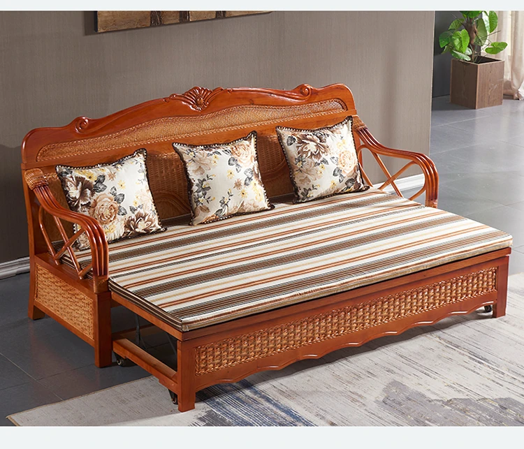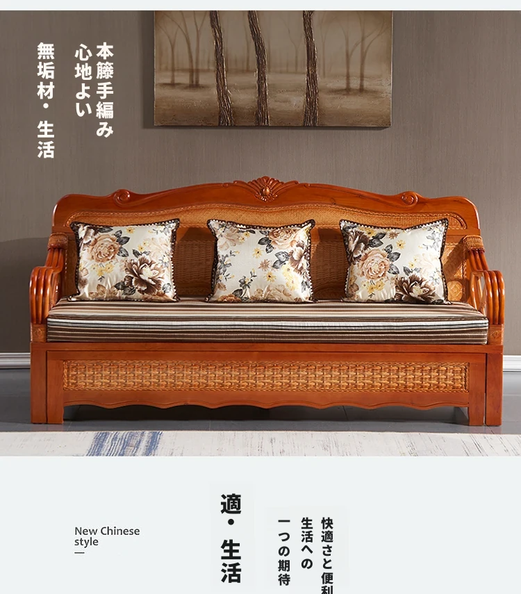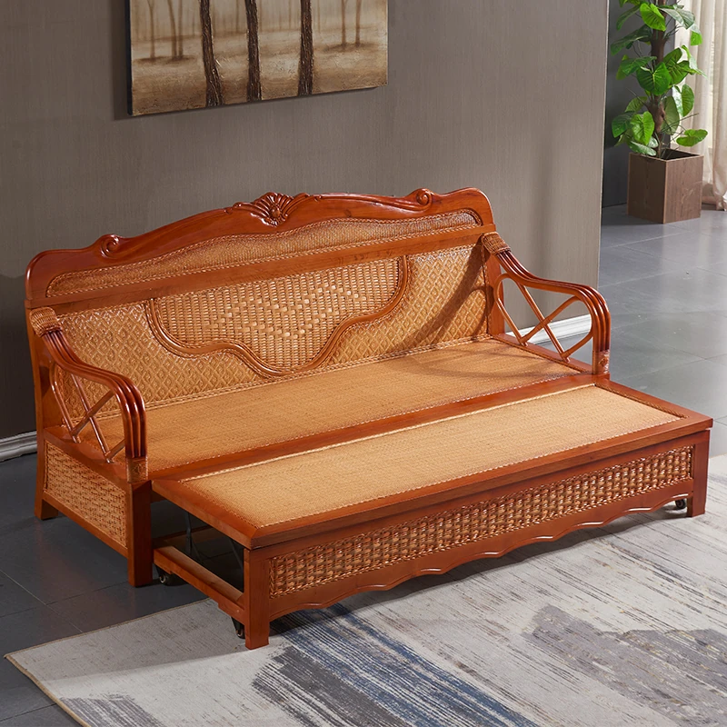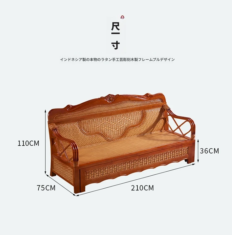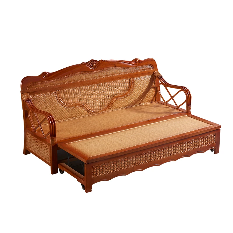 本物の籐製ソファベッド!天然木と籐の組み合わせで、折りたたみ可能な多機能ソファ。3人掛けの快適なデザインで、リビングルームやゲストルームに最適。おしゃれで実用的な家具をお探しの方にぴったりです!