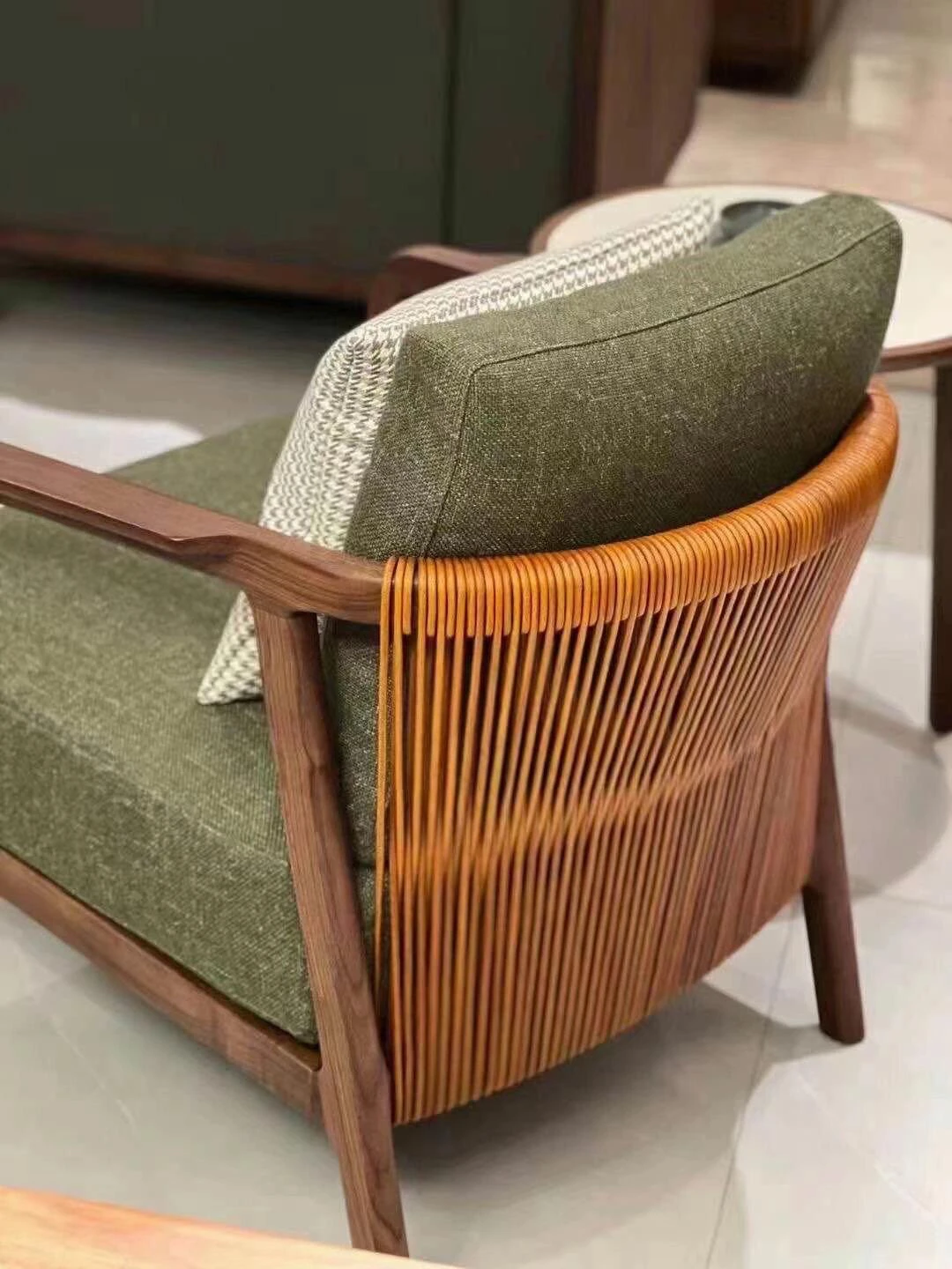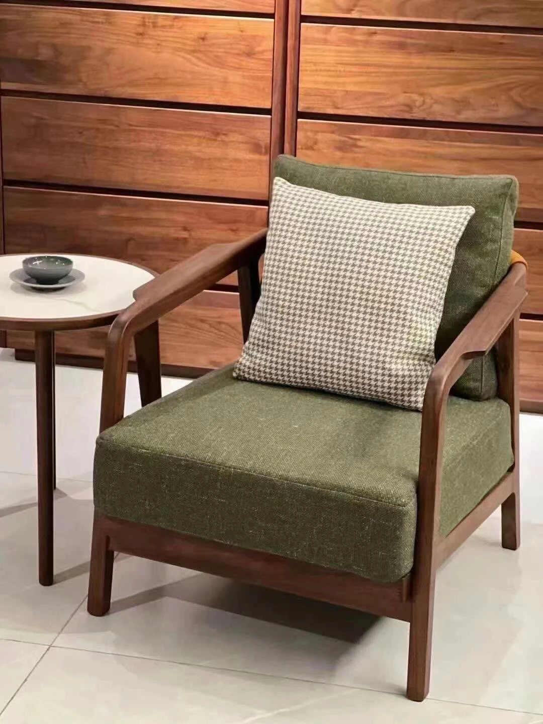 新中式デザインの北米ブラックウォールナット製リクライニングチェア - シンプルでスタイリッシュな一人掛けソファ、別荘や茶室に最適、優雅なひとときを演出します。