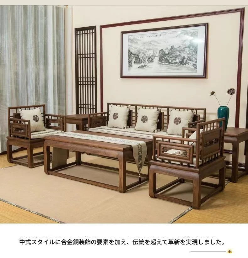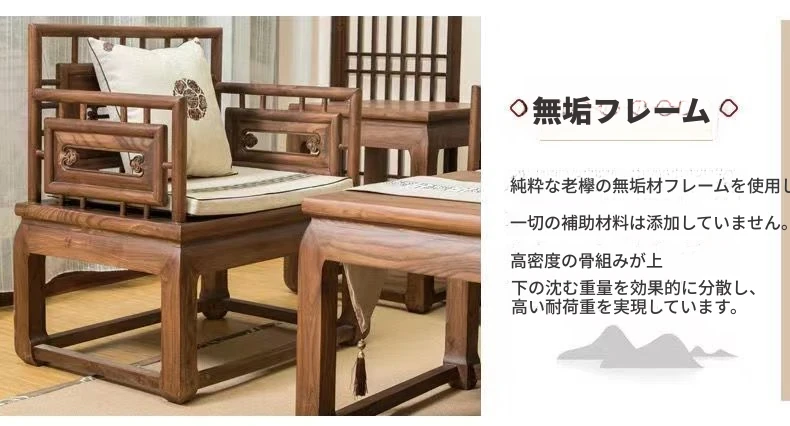 新作!I新L205貴妃ソファ - 北001デザイン、老榆木の純実木製、シンプルでスタイリッシュな中式スタイル。小型住宅に最適!快適な居住空間を演出します。