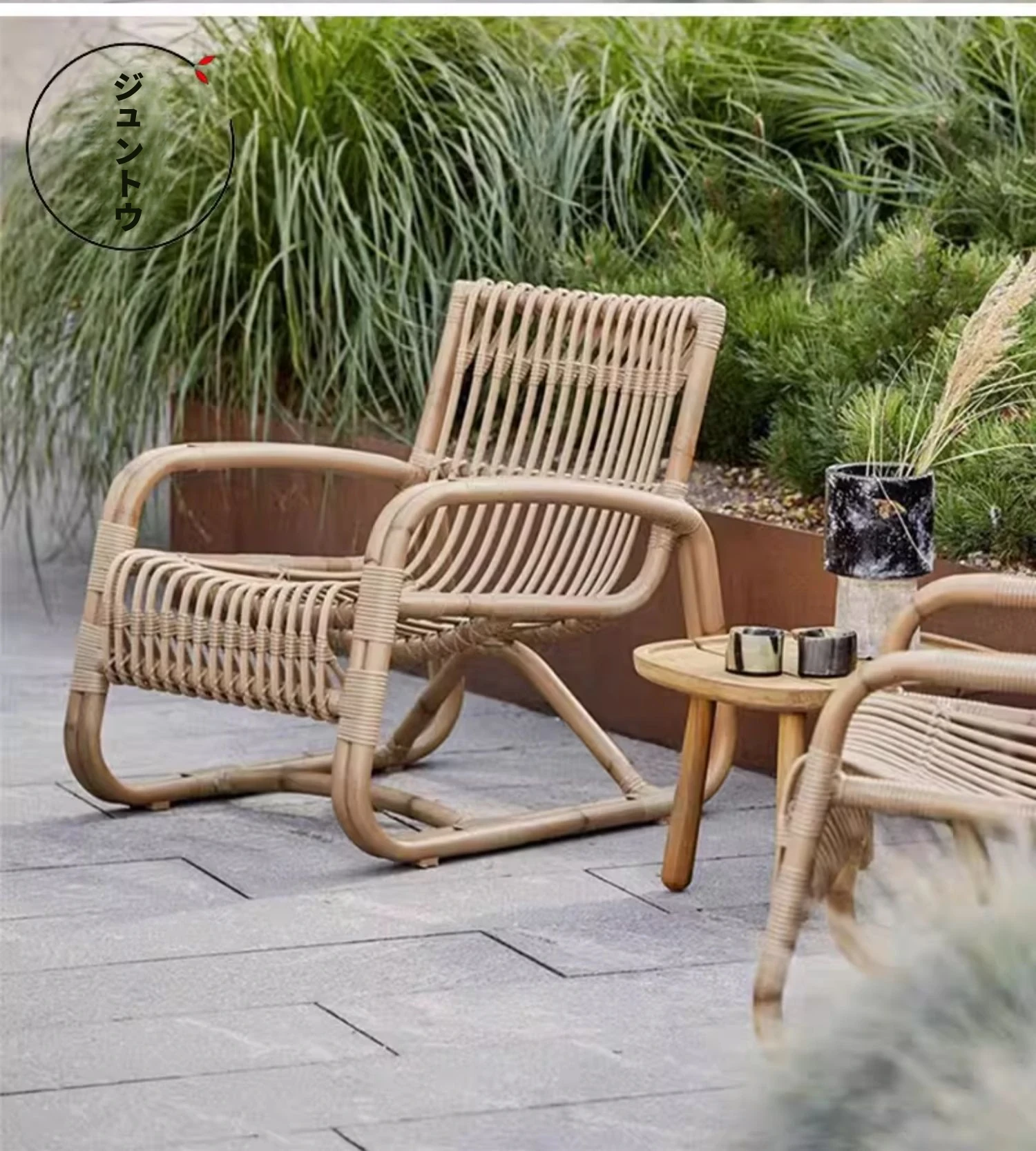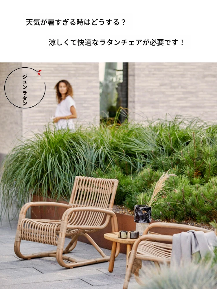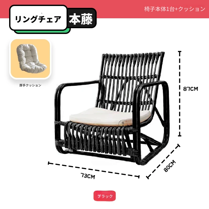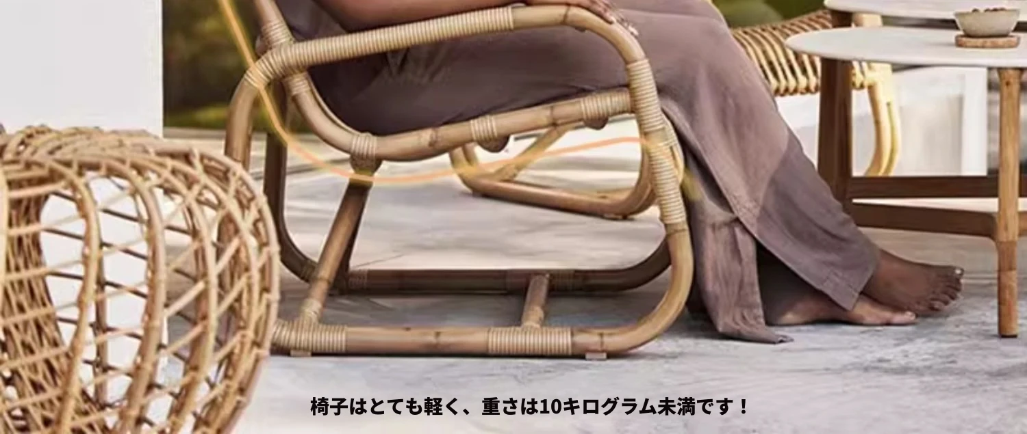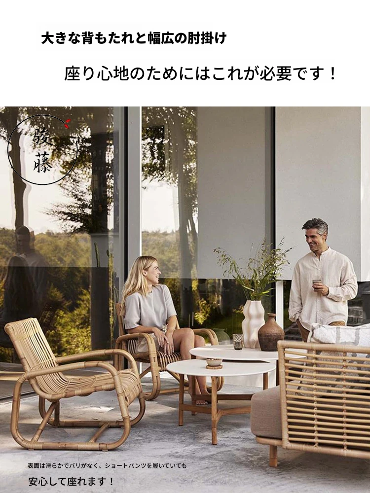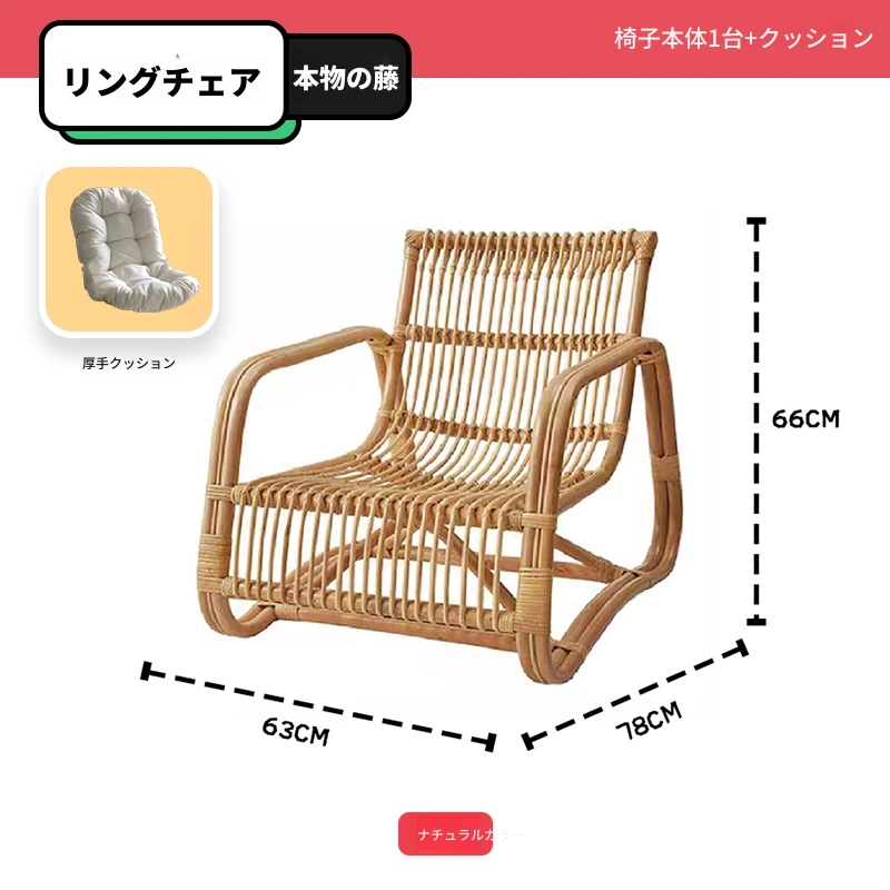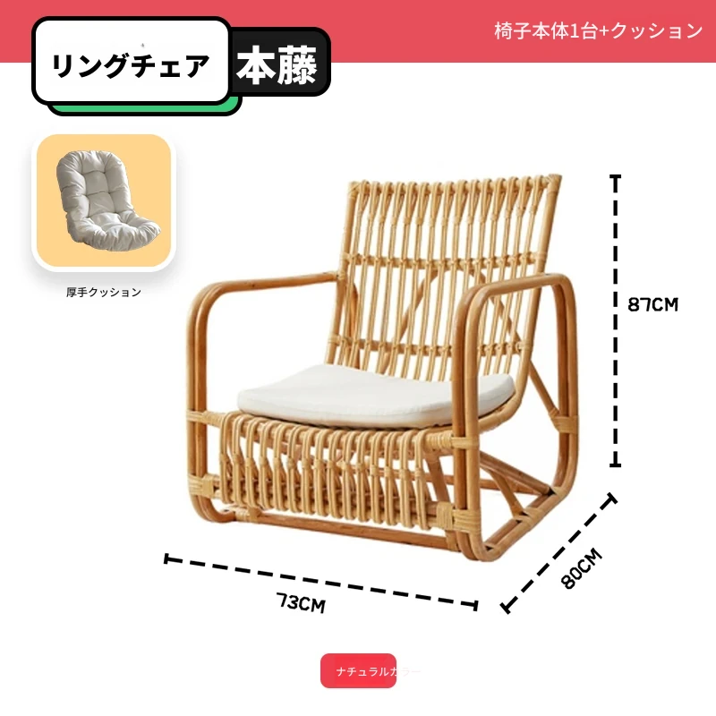 北欧スタイルの防水・UVカット機能付きアウトドアラタンソファ - 自然素材の本物のラタン製、バルコニーや庭にぴったりなシングルチェア!快適なリラックス空間を提供します。