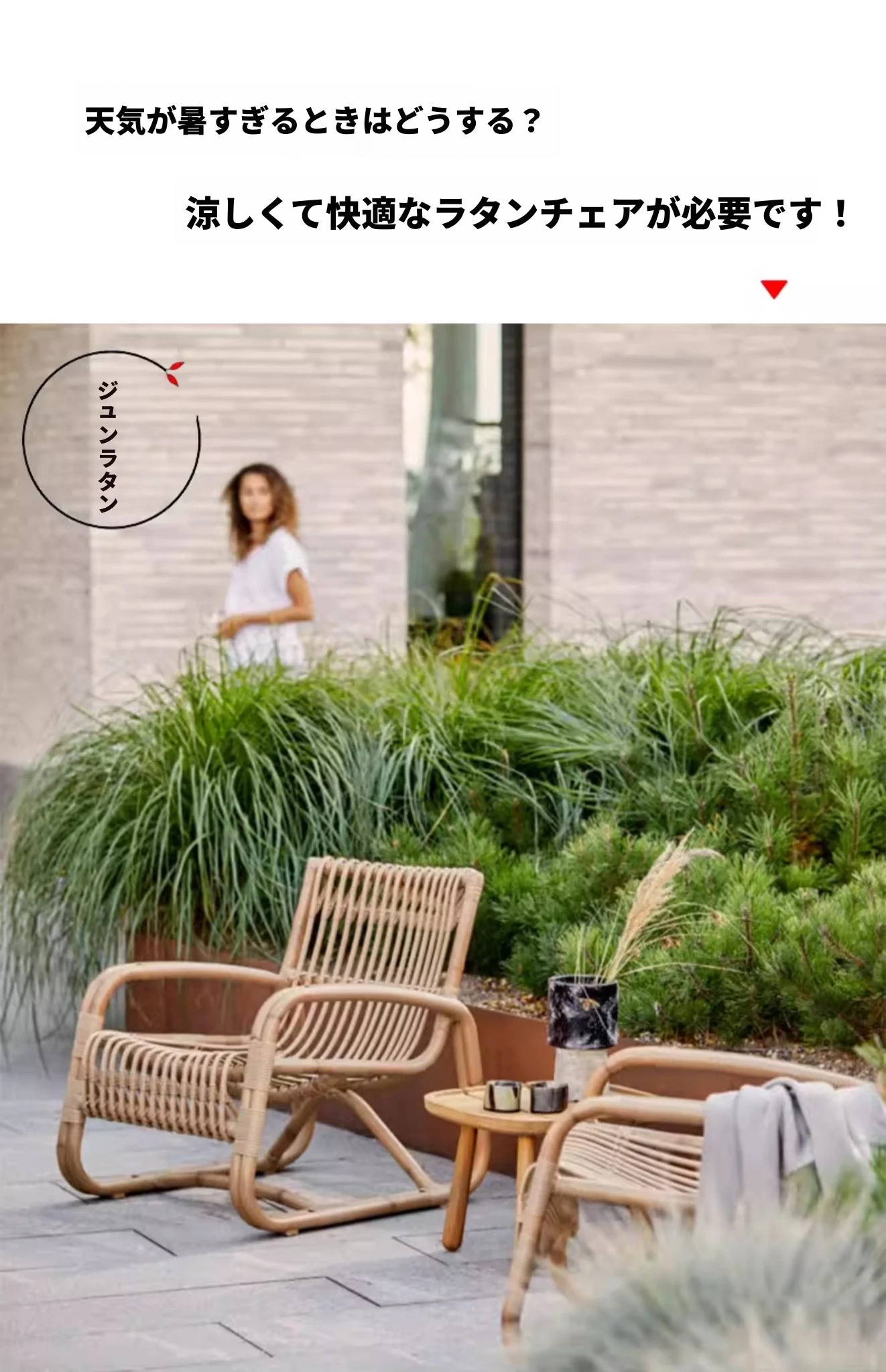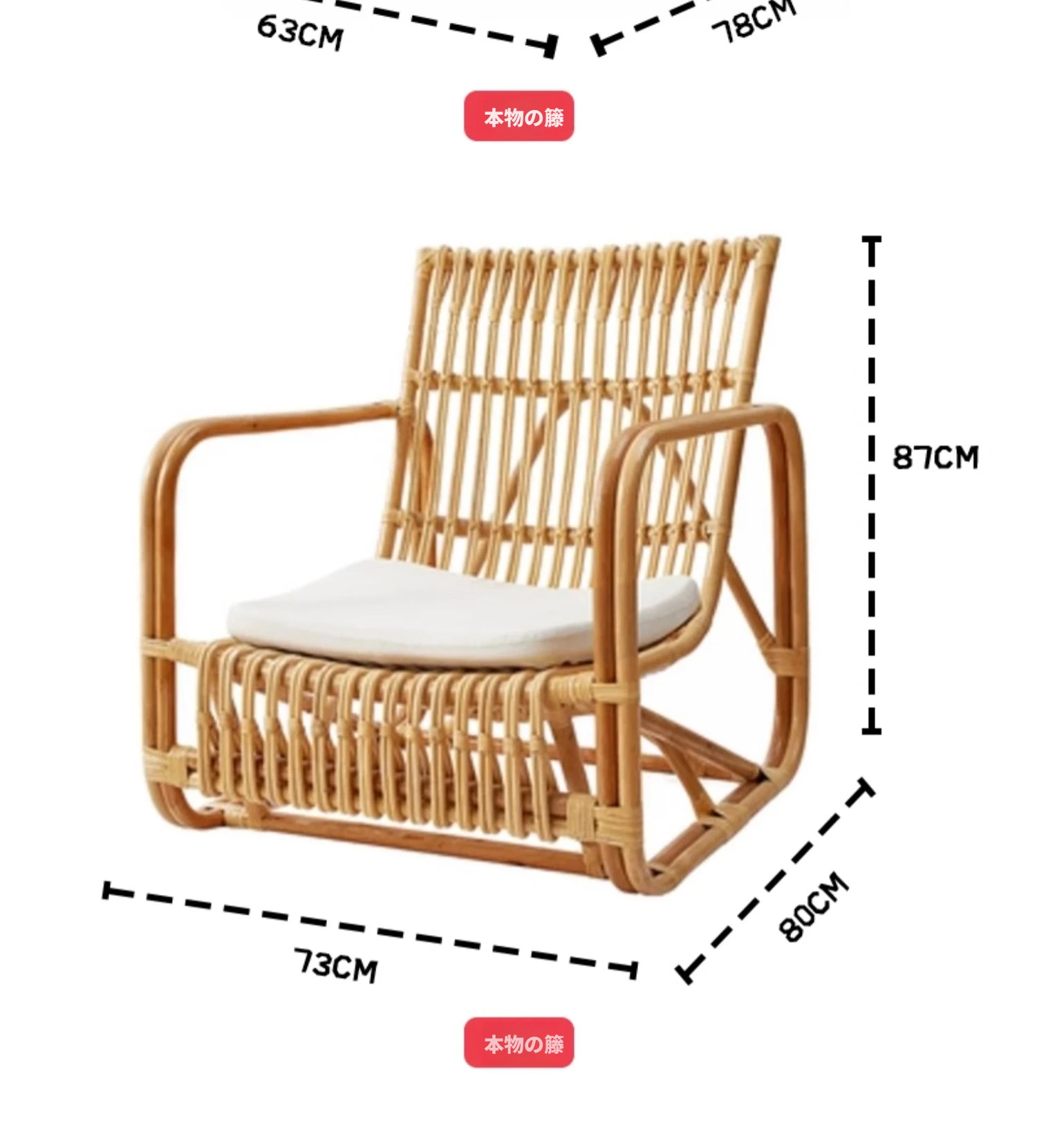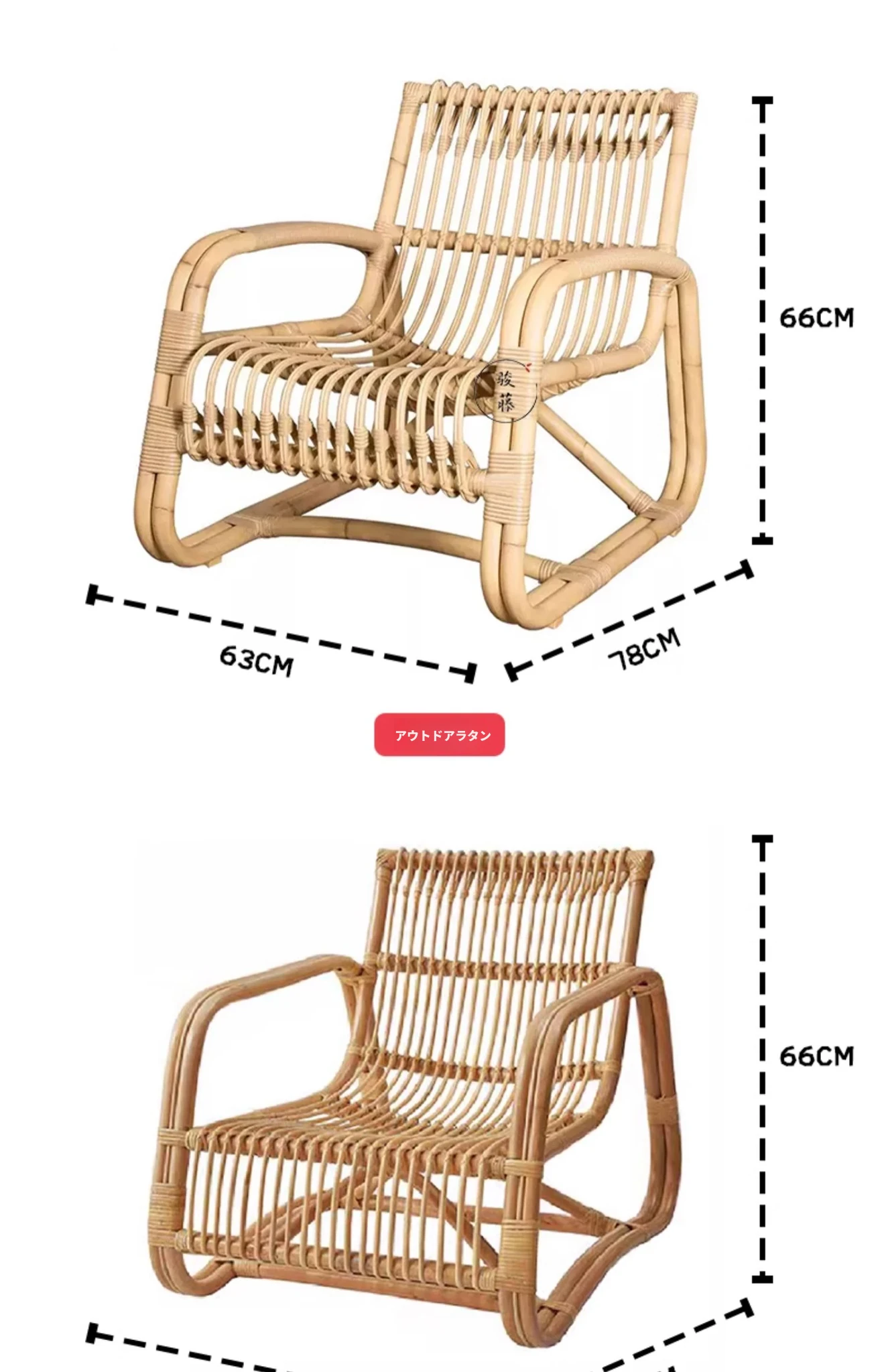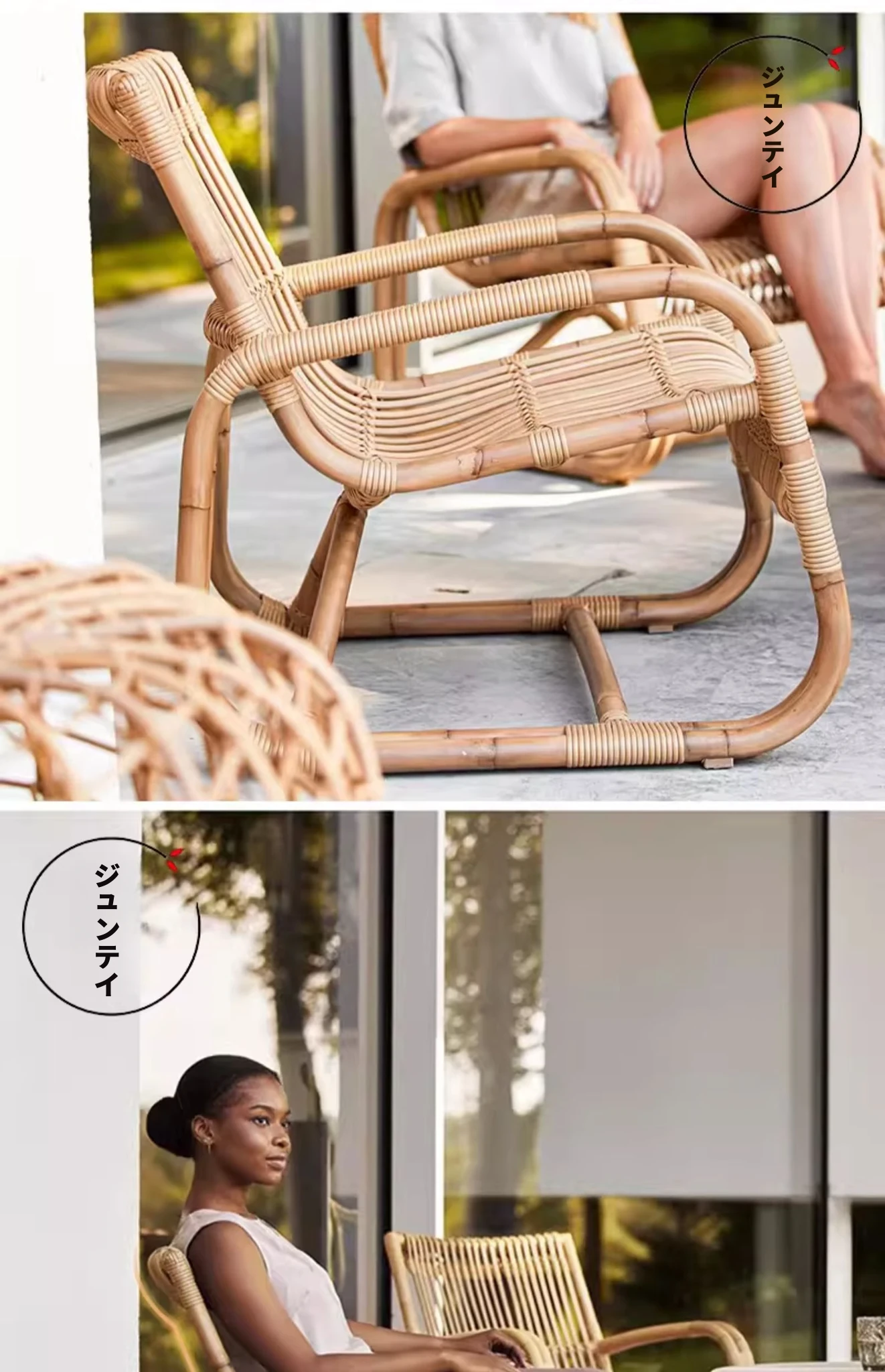 北欧スタイルの防水・UVカット機能付きアウトドアラタンソファ - 自然素材の本物のラタン製、バルコニーや庭にぴったりなシングルチェア!快適なリラックス空間を提供します。