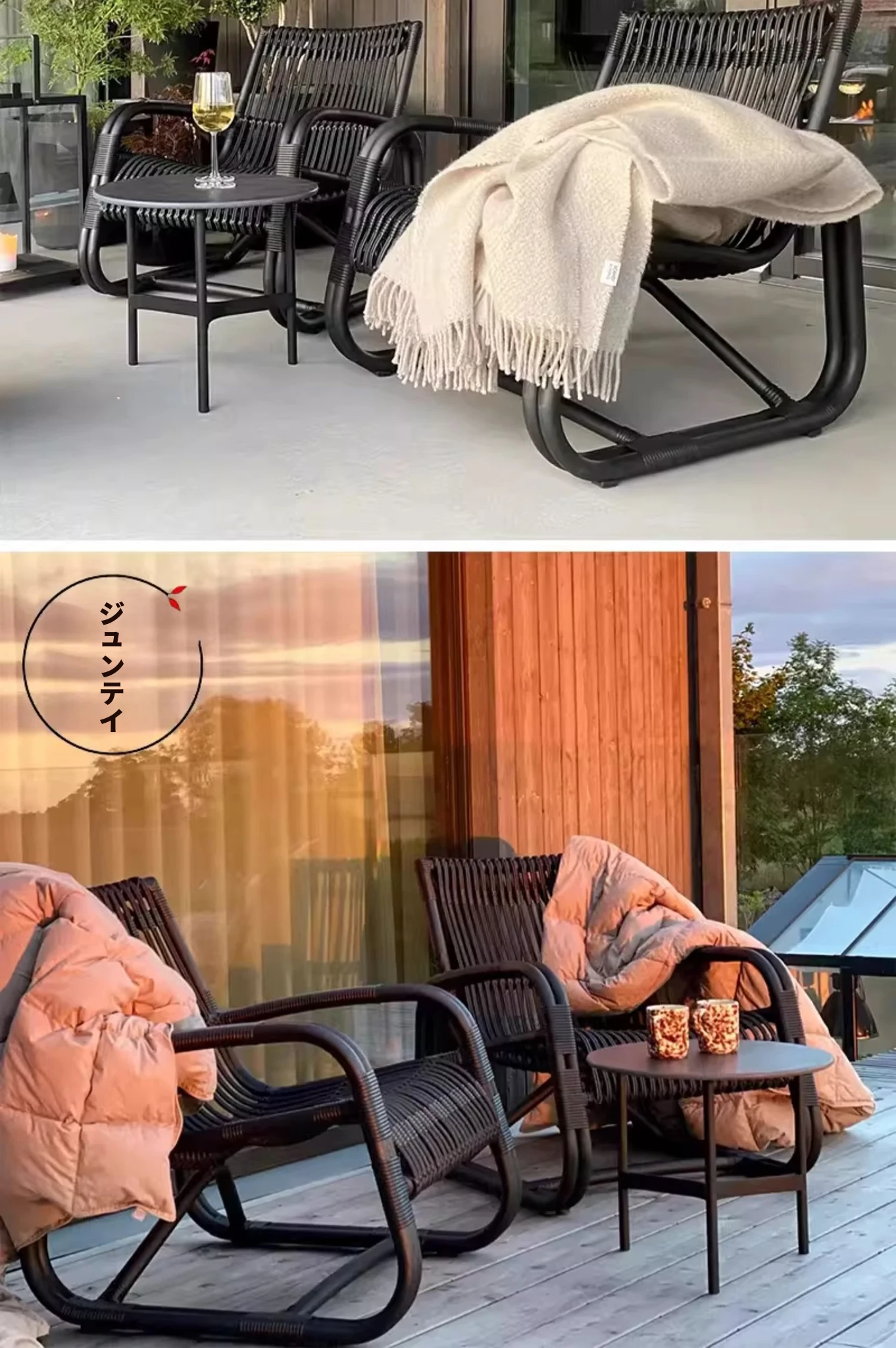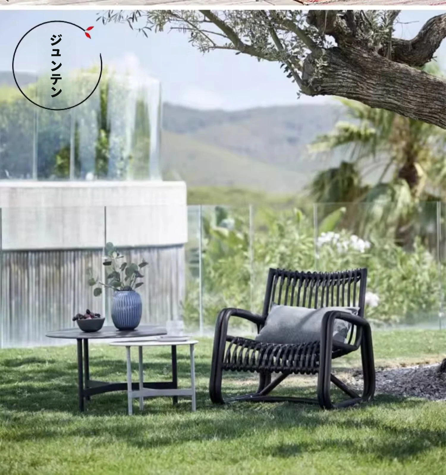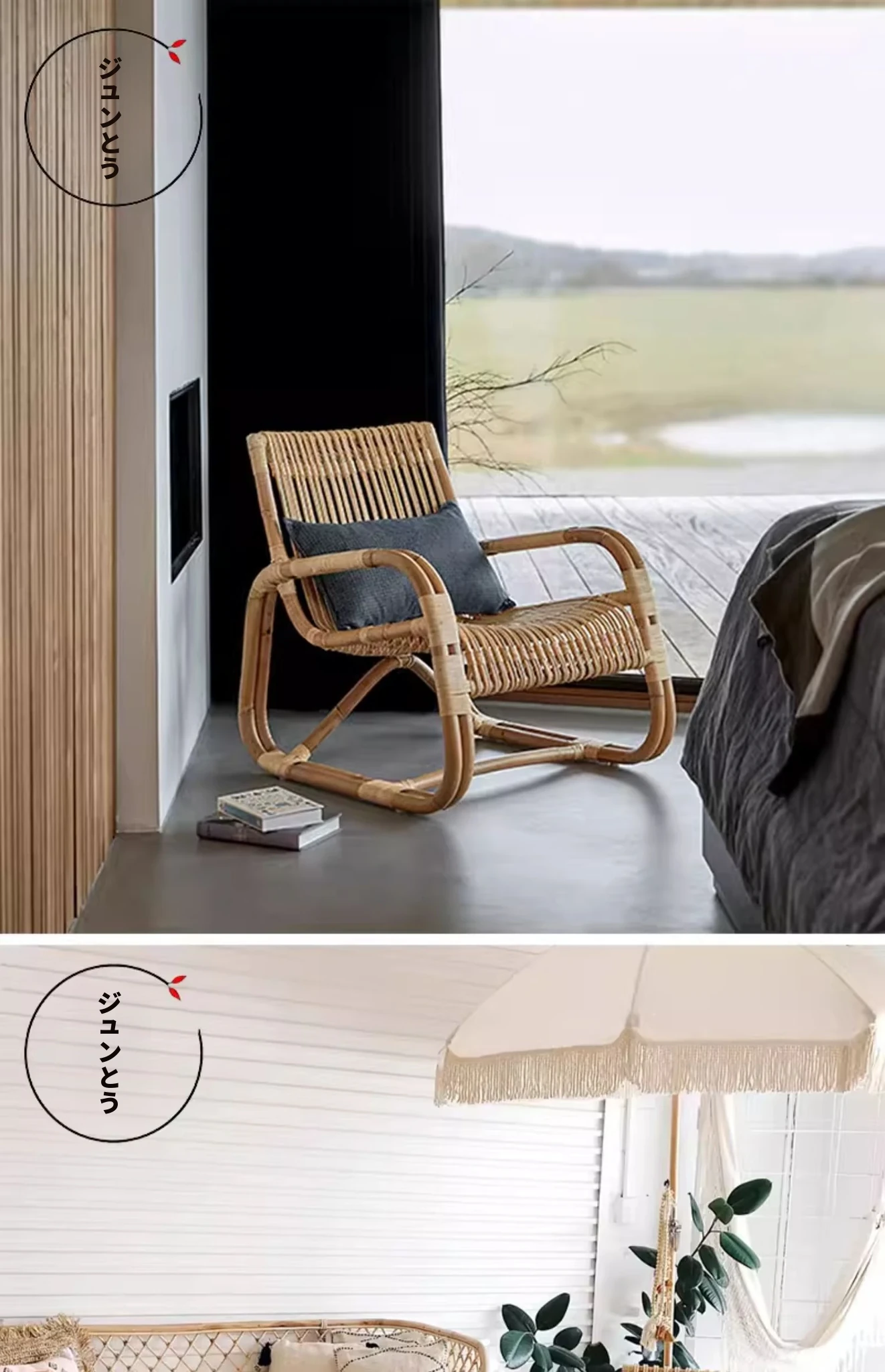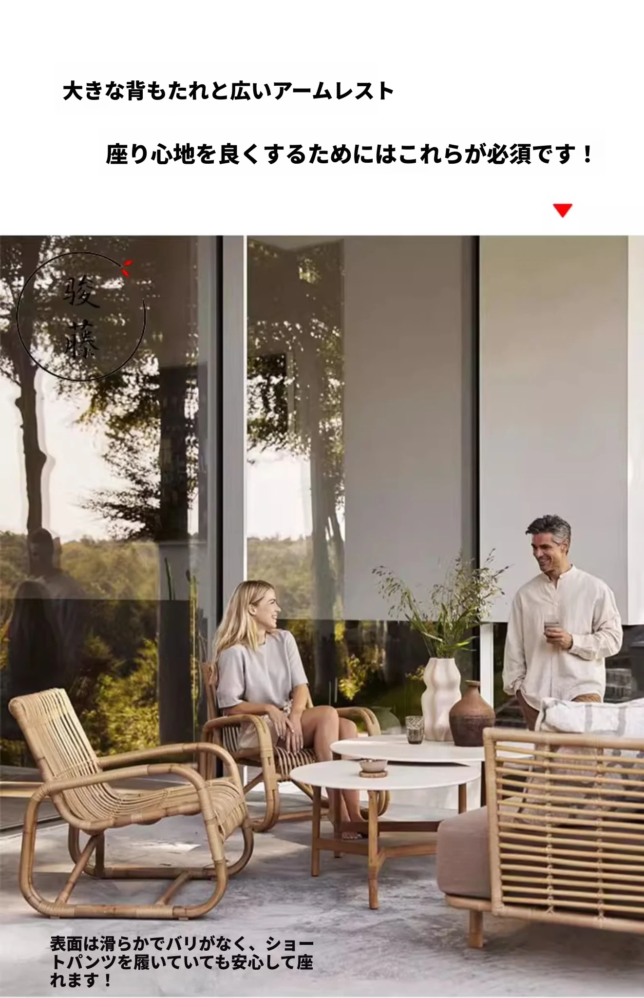 北欧スタイルの防水・UVカット機能付きアウトドアラタンソファ - 自然素材の本物のラタン製、バルコニーや庭にぴったりなシングルチェア!快適なリラックス空間を提供します。