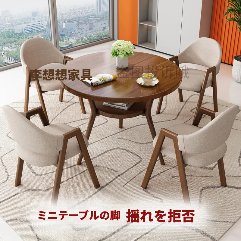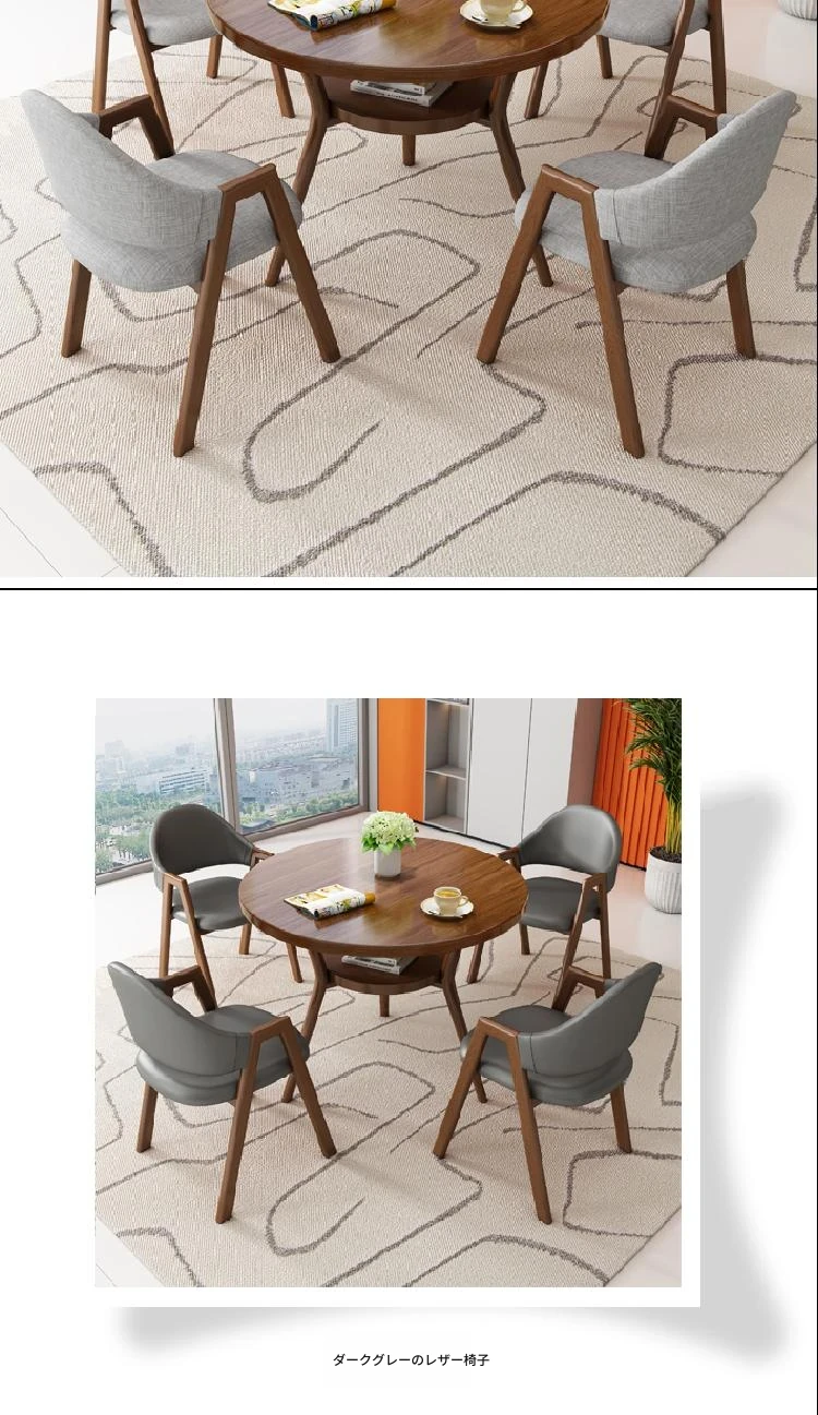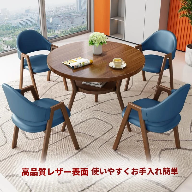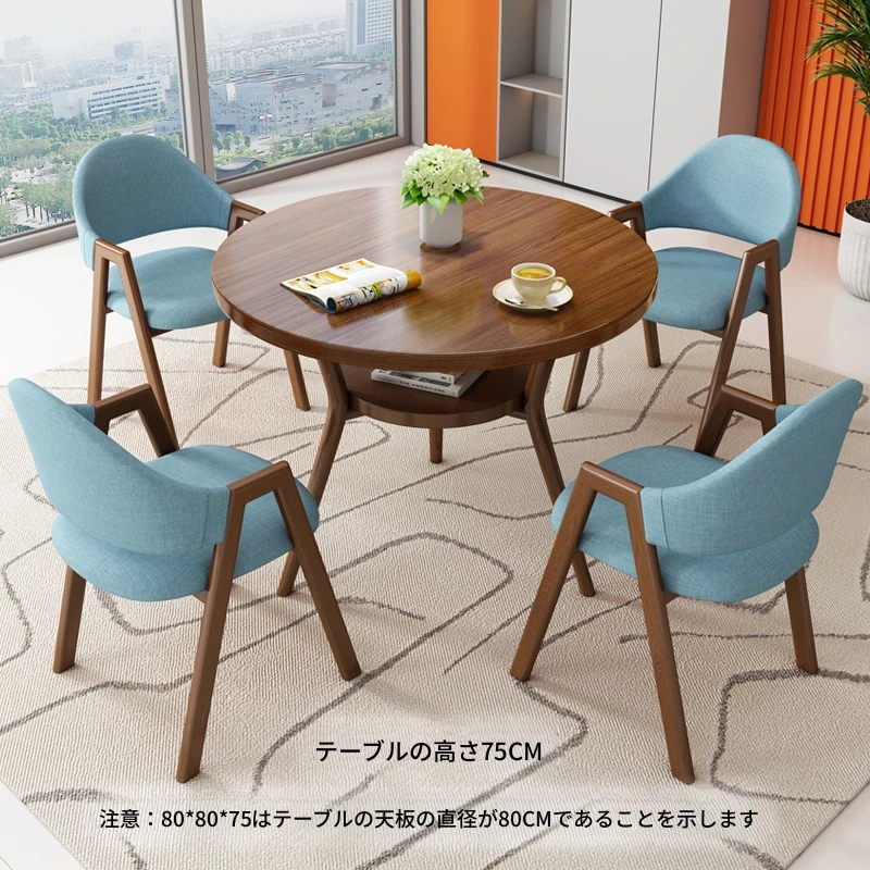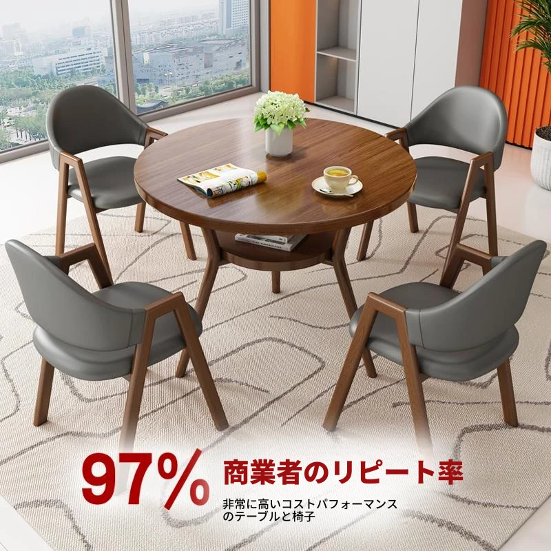 オフィス用の休憩スペースに最適!4脚の椅子付き円形談話テーブルセット - ビジネスミーティングやお客様との打ち合わせに最適なコンパクトデザイン。快適さと機能性を兼ね備えた会話空間を実現します。