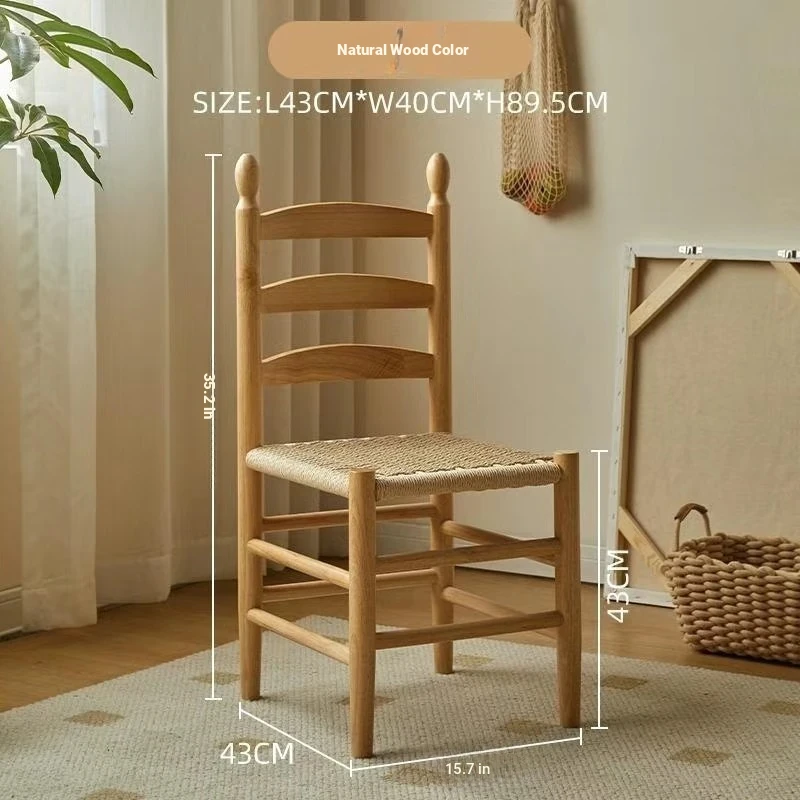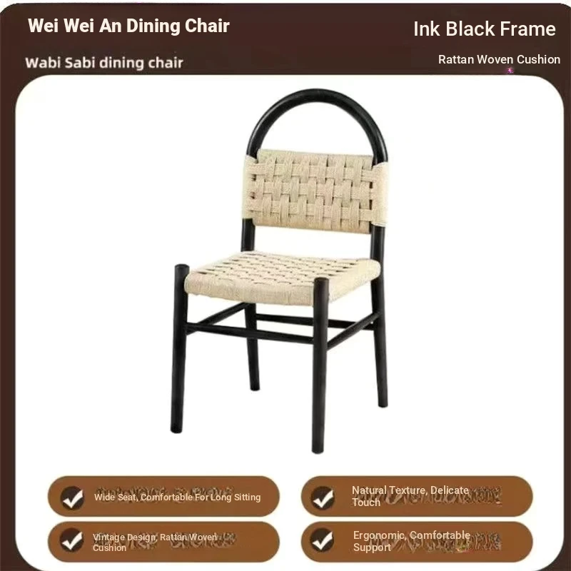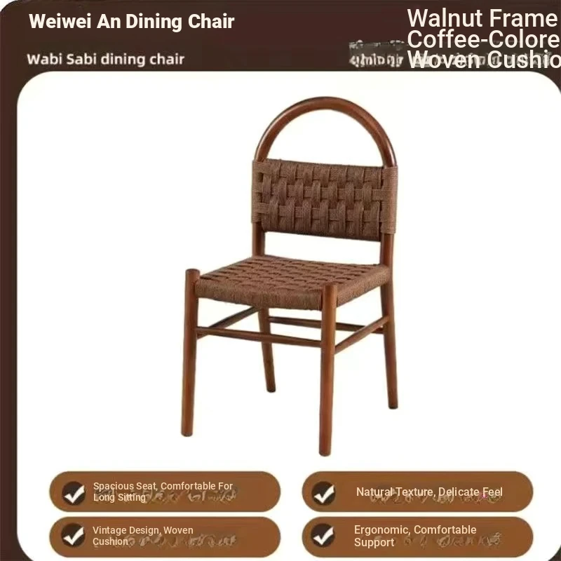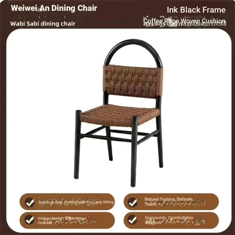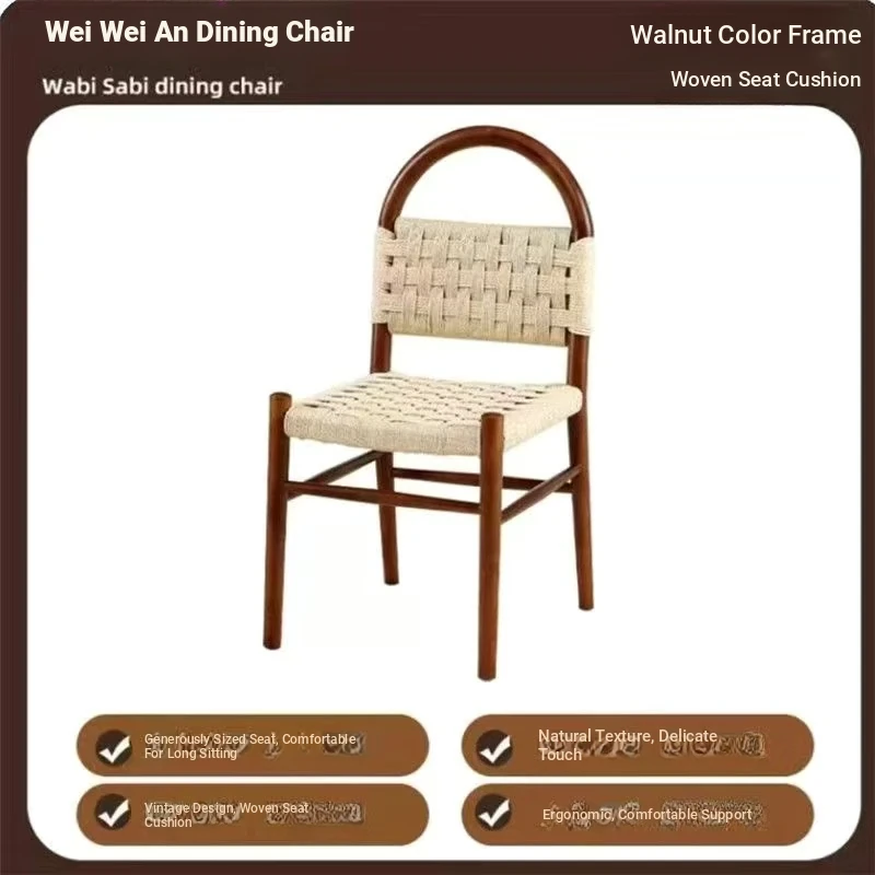OMEAN Nordic Solid Wood Wabi-Sabi Style Dining Chair - Designer Rope-Woven Accent Chair for Restaurant, Study, and Balcony - Perfect for Cozy Cafes and Elegant Spaces